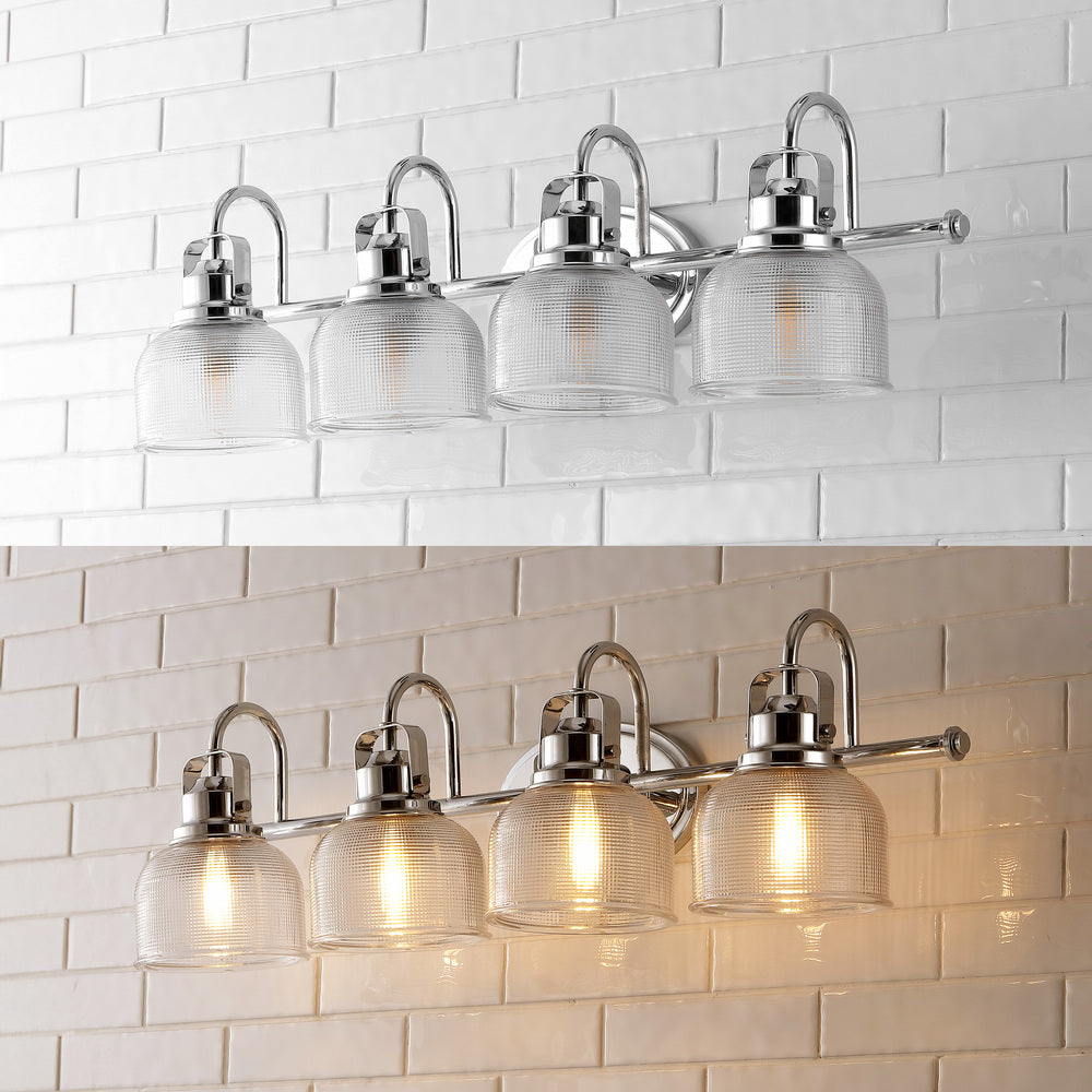 With a hint of texture on the glass shade to blur the glare of the bulb, this elegant sconce is perfect for a bathroom or vanity setting that calls for bright, but not harsh, light. On either side of a mirror, you'll find this stylish piece the perfect addition to your morning makeup routine, as it is compatible with a variety of bulbs. Also versatile within any style of decor, we particularly love seeing these in bathrooms and kitchens, where the arch of the light's arm is reminiscent of the curve of a beautiful faucet.