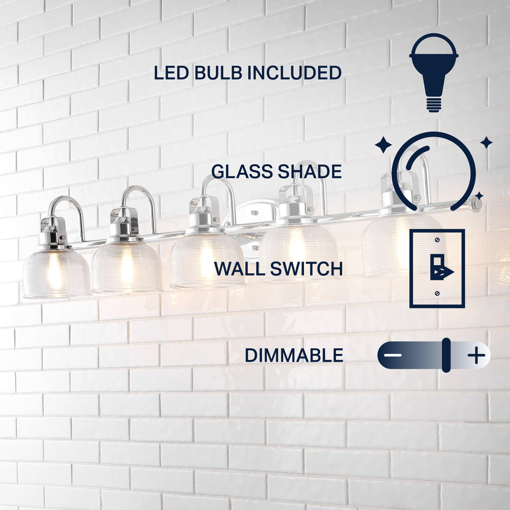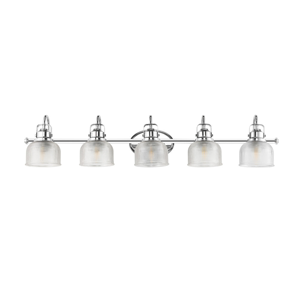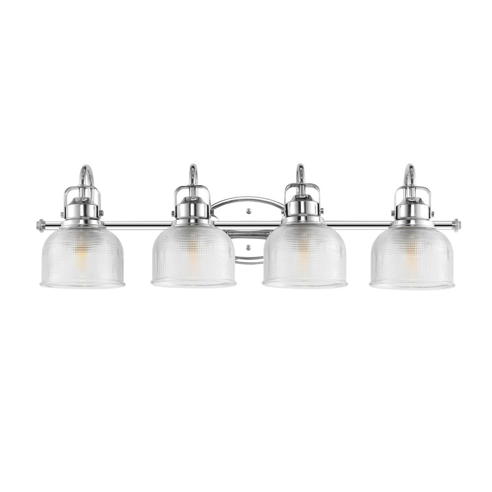 - Textured glass and polished chrome come together to create a chic, classic combination for this sconce