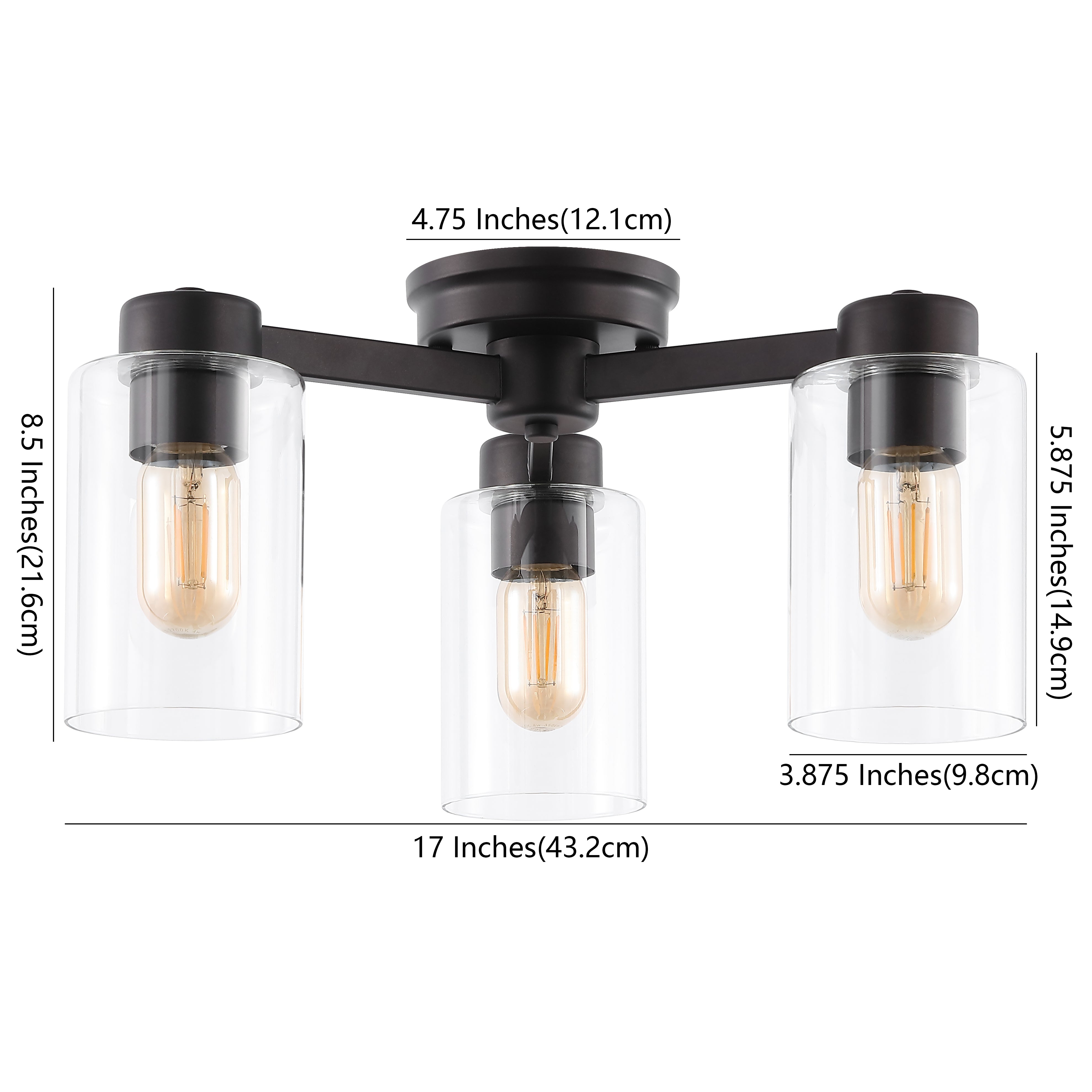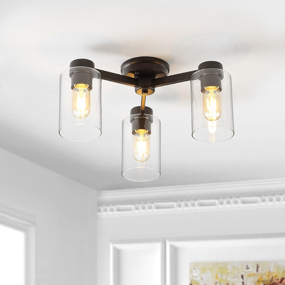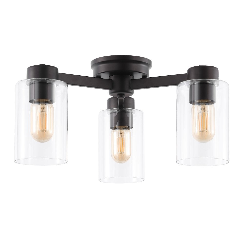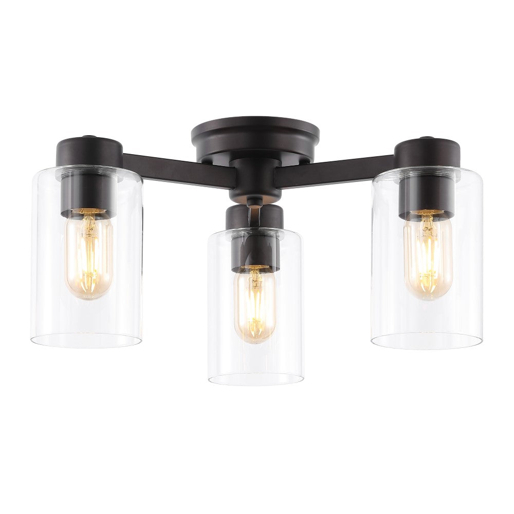 Add vintage flair with our classic industrial-style ceiling fixture. Three Edison-style LED bulbs are encased in clear glass cylinders to provide plenty of light. Clean lines and a bronze finish add a rustic-modern touch to a kitchen, living room, bedroom, or entry.