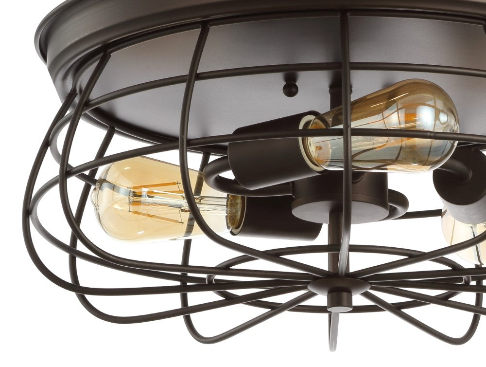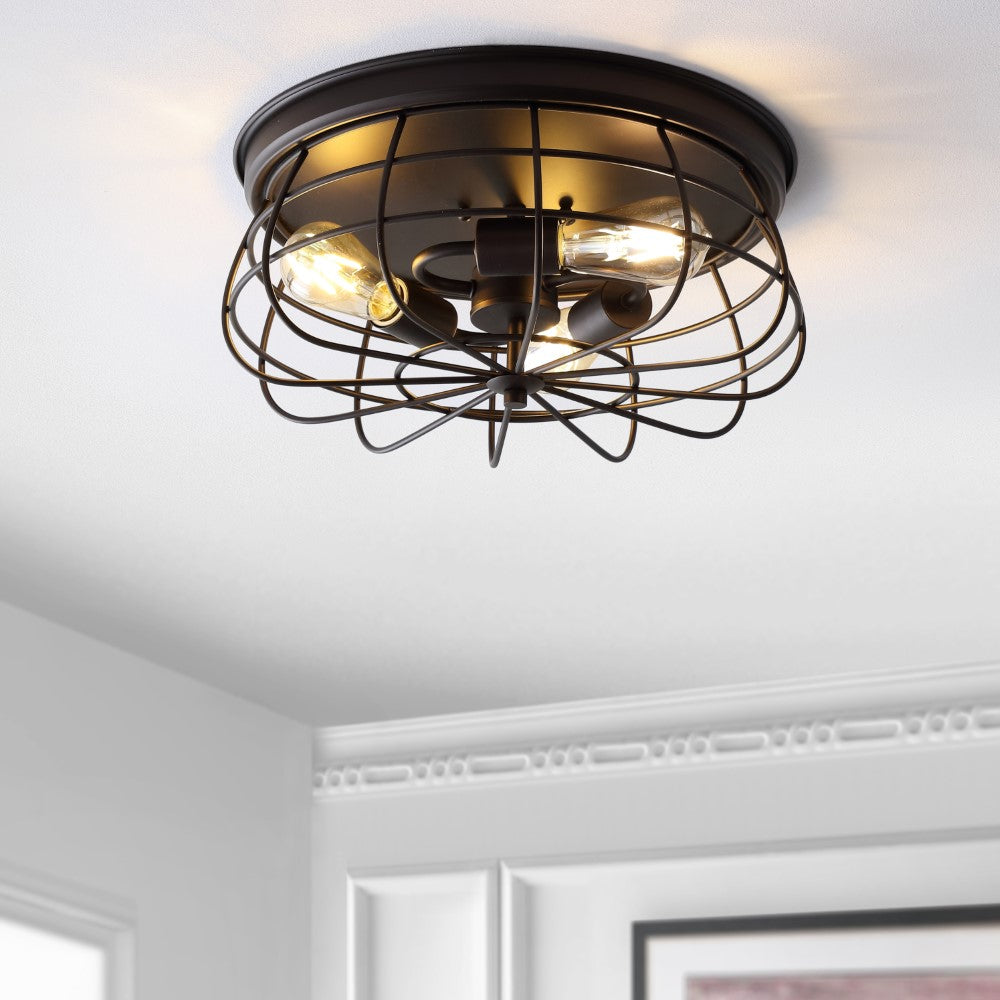 Industrial touches like the cage design of this flush-mounted ceiling light add farmhouse charm to any space. Three bulbs provide plenty of light, while the oil-rubbed bronze finish blends easily with rustic or industrial decor. Sized for a living room, entry, bedroom, hallway, or bathroom.