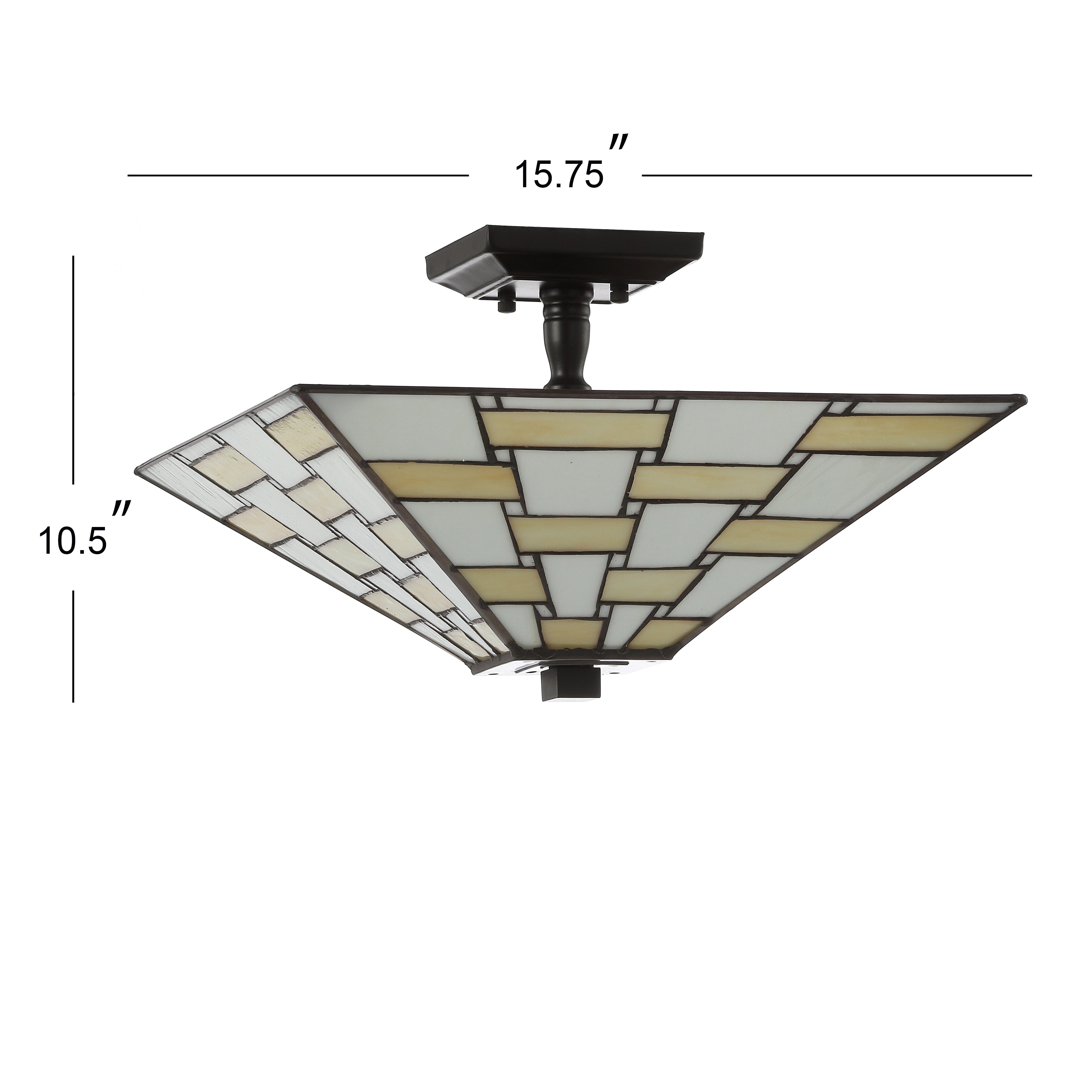 Geometric and modern, the inverted pyramid shape of this Tiffany-inspired flush mount would look like an original in any Craftsman, Midcentury, or Ranch Style home. During an era where sunken living rooms and lower ceilings were all the rage, this silhouette became popular for its indirect lighting and ability to make a statement without taking up too much space. When paired with floor lamps or table lamps for a layered look, it will immediately warm the ambiance in any room.
