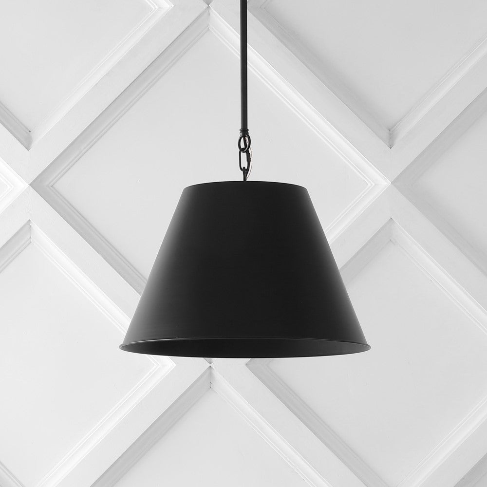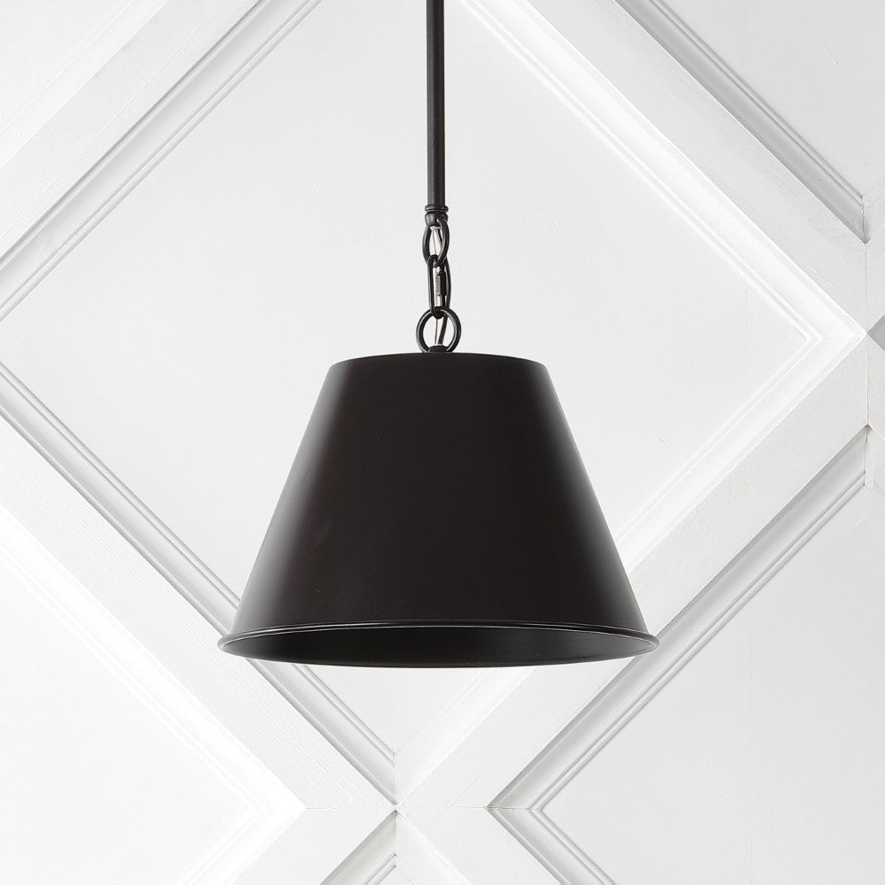 A traditional aesthetic and metal shade make this pendant light both stylish and practical. Farmhouse features include a decorative chain and a single Edison-style LED bulb for warm, bright light. At just 12" wide, this classic pendant is perfect for hanging over a kitchen island, dining table, or on each side of a centered bed.