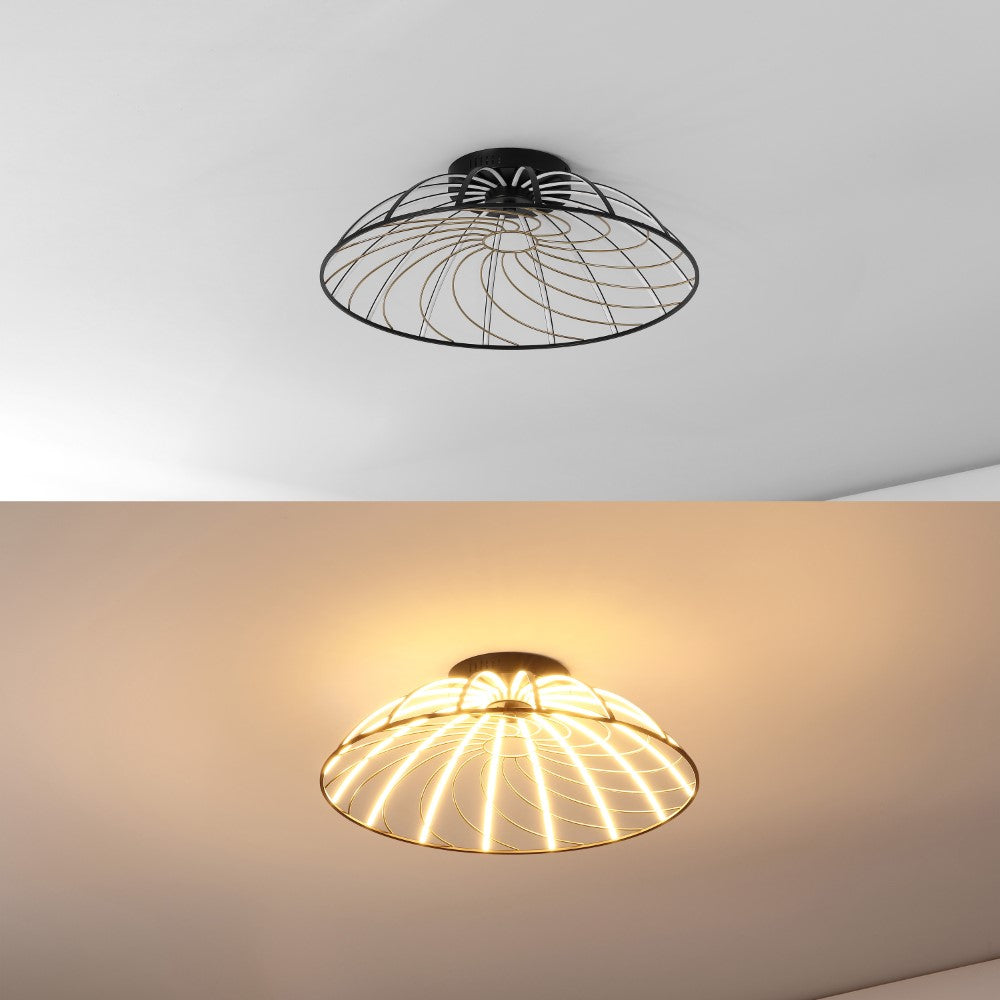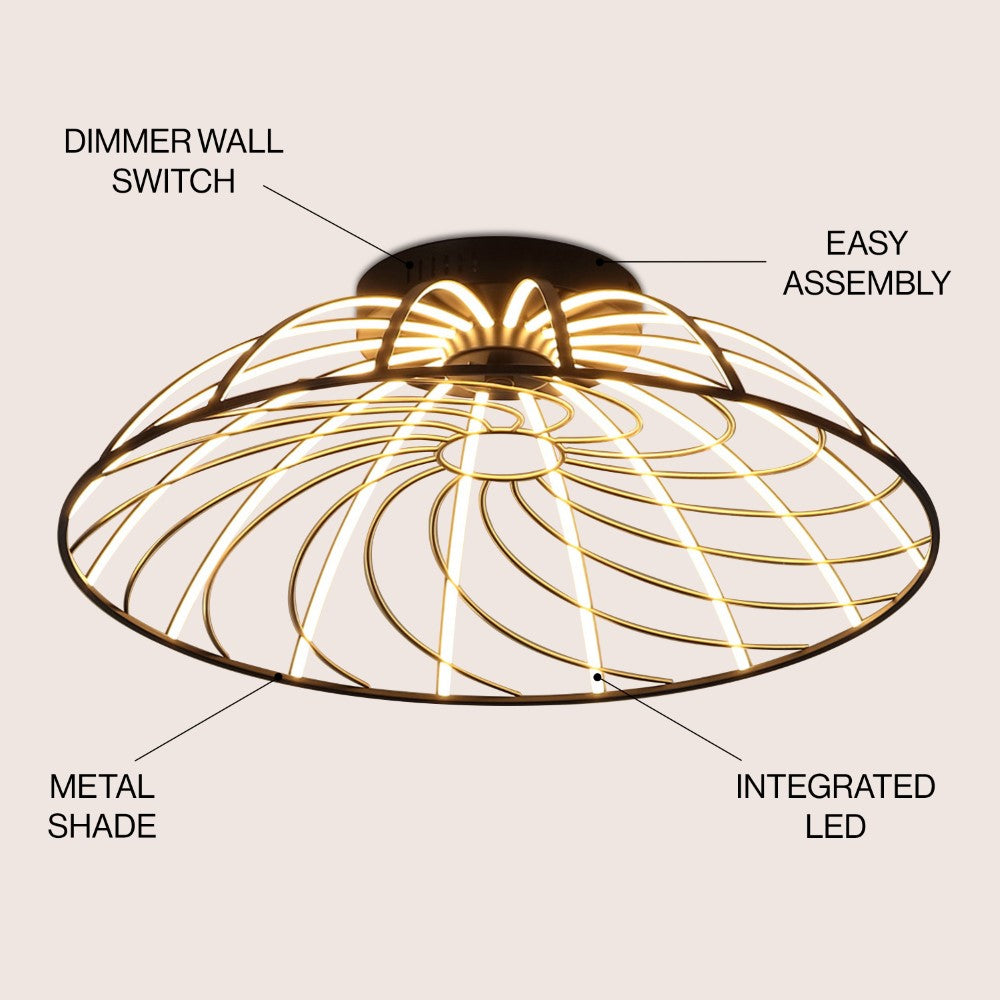 Inspired by industrial style interiors, our modern ceiling light features a domed-shaped open cage lined with integrated LED lights. Perfect for low ceilings, this fixture combines a glam two-tone finish with ambient, warm light. Connect to a wall-mounted dimmer for custom lighting in the living room, bedroom, home office or closet.