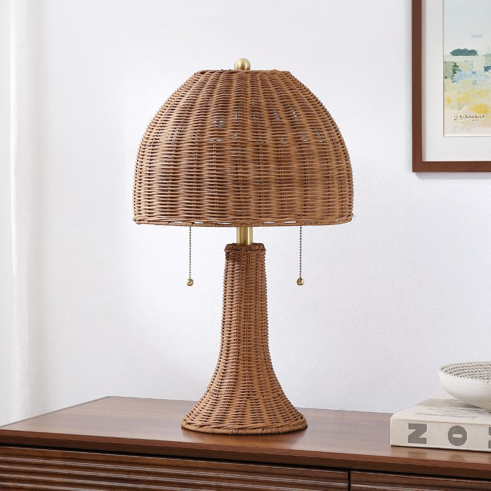 Our modern take on a classic Mid-Century lamp features a half-globe wicker shade and woven wicker base. This lamp would make the perfect pair for a bedroom, living room, or entry console. The minimalist silhouette is perfect for a mid-century home, rustic cottage or beach house. Includes two energy-saving LED bulbs.