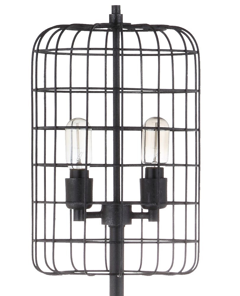 - A wire cage in oil rubbed bronze surrounds the light in this new take on the industrial console lamp
