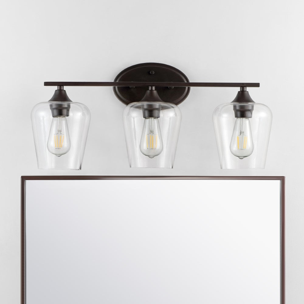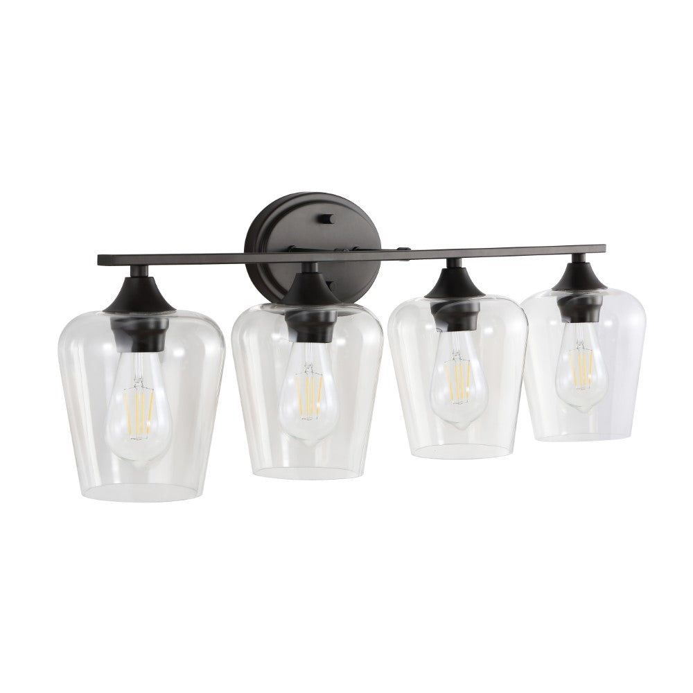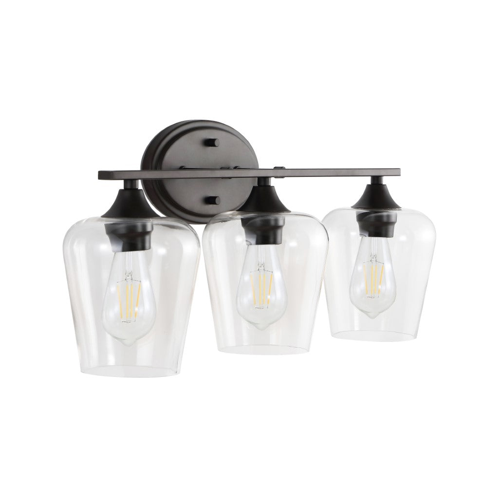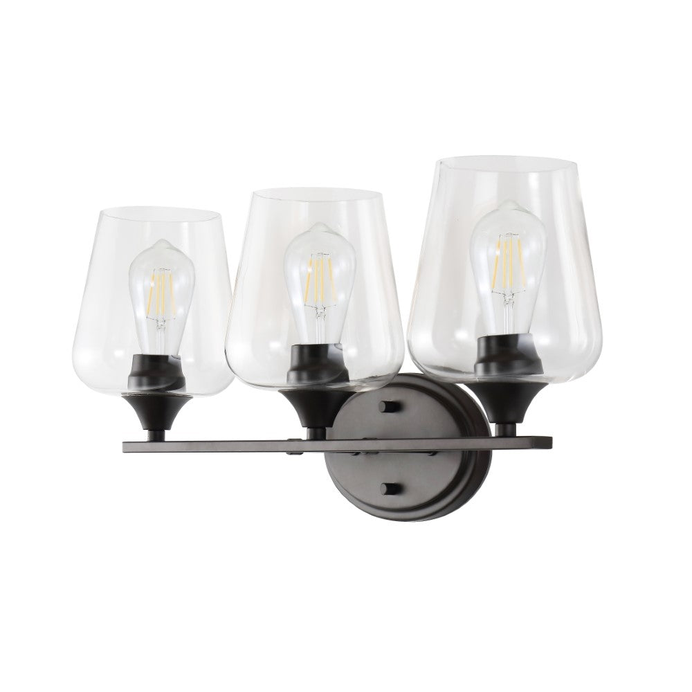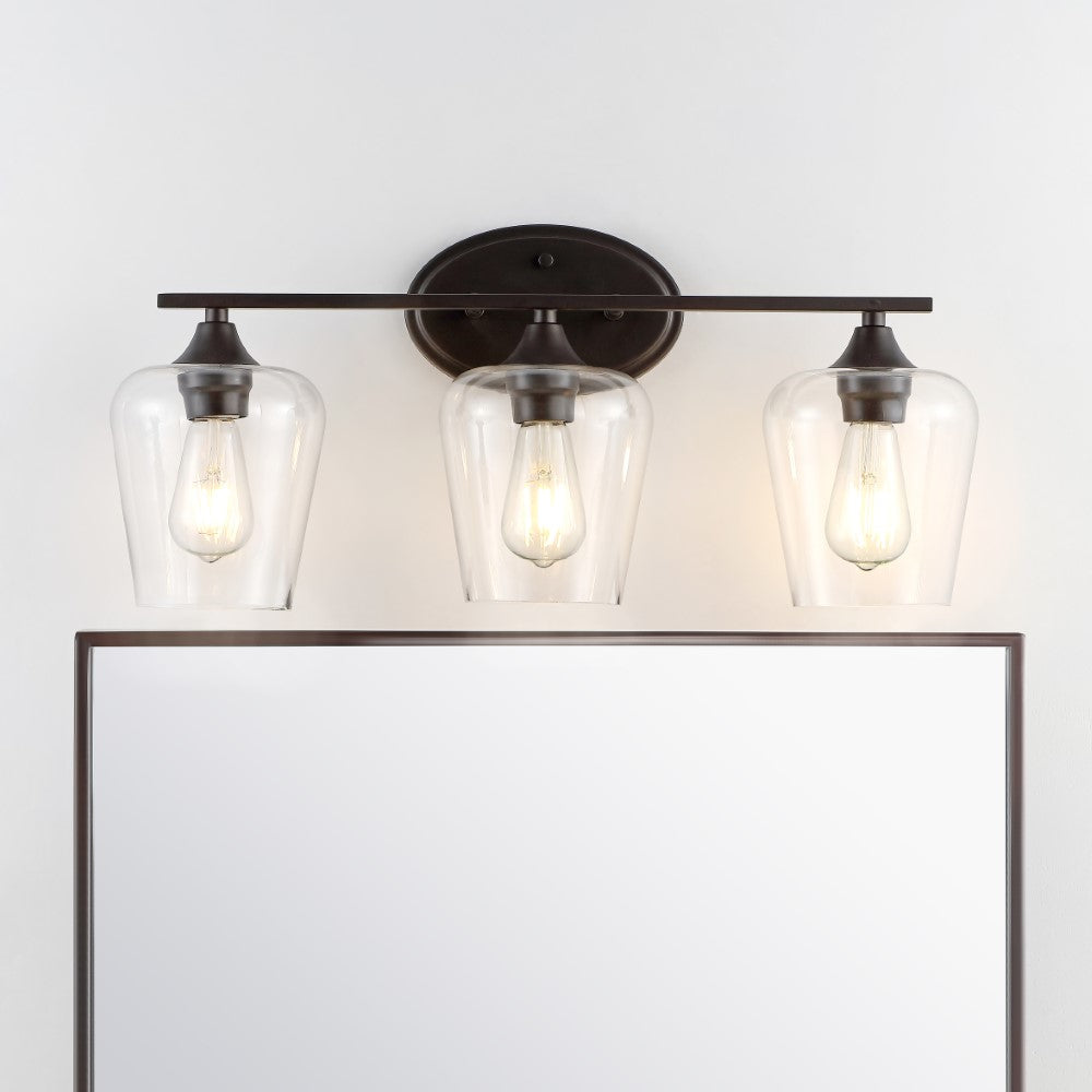Elevate your urban apartment, cottage or farmhouse with our versatile take on a classic wall light. The included LED bulb casts a warm glow, providing plenty of light. The clear glass bell shade and oil rubbed bronze finish add elegant vintage style to your bath vanity, or above a kitchen sink.