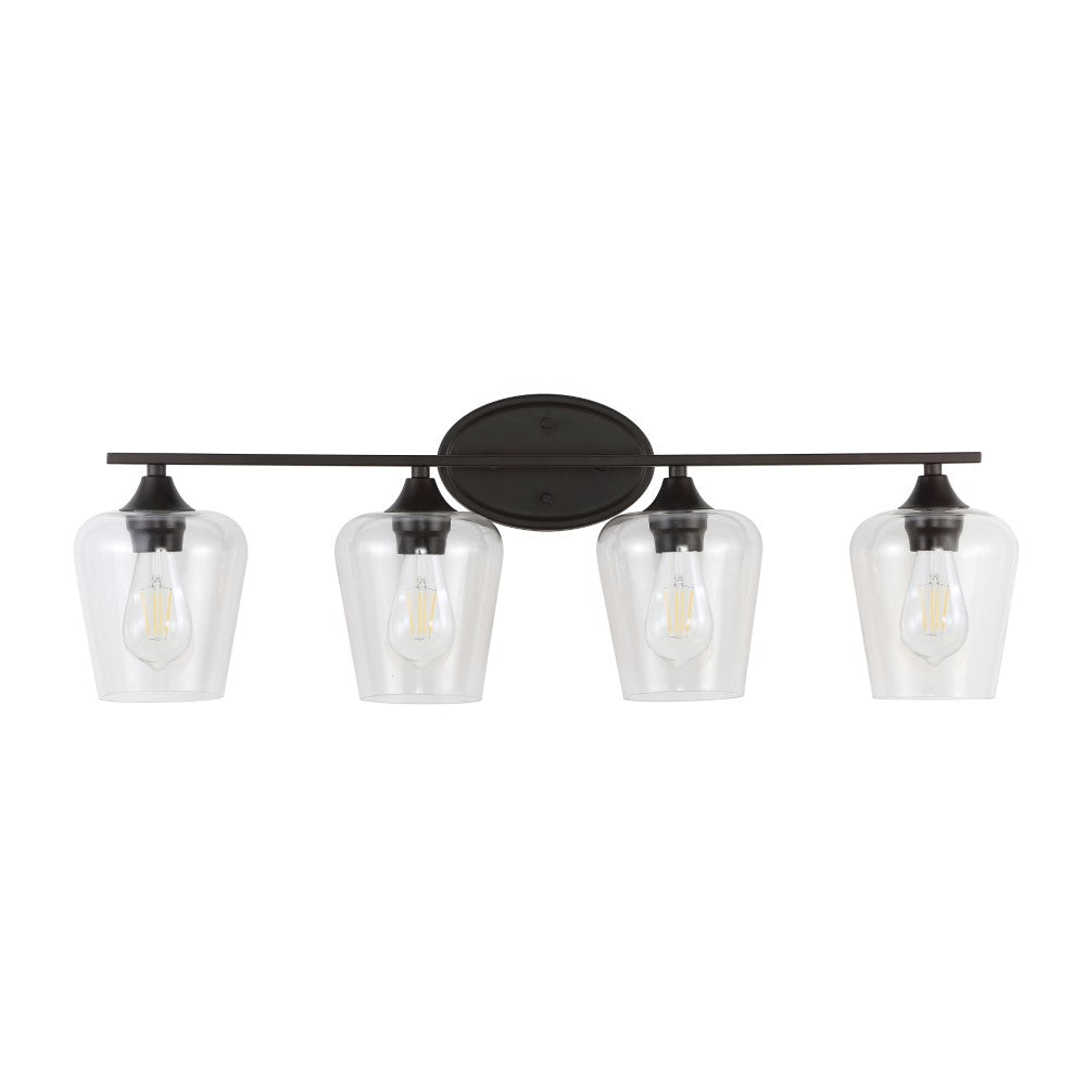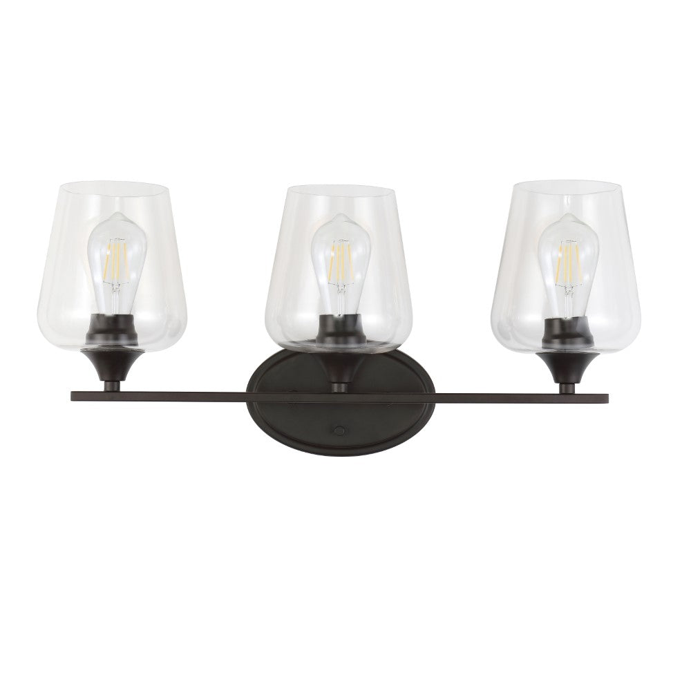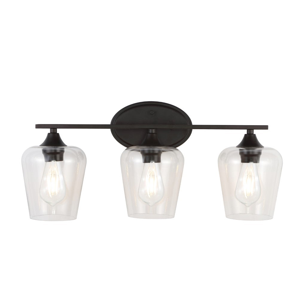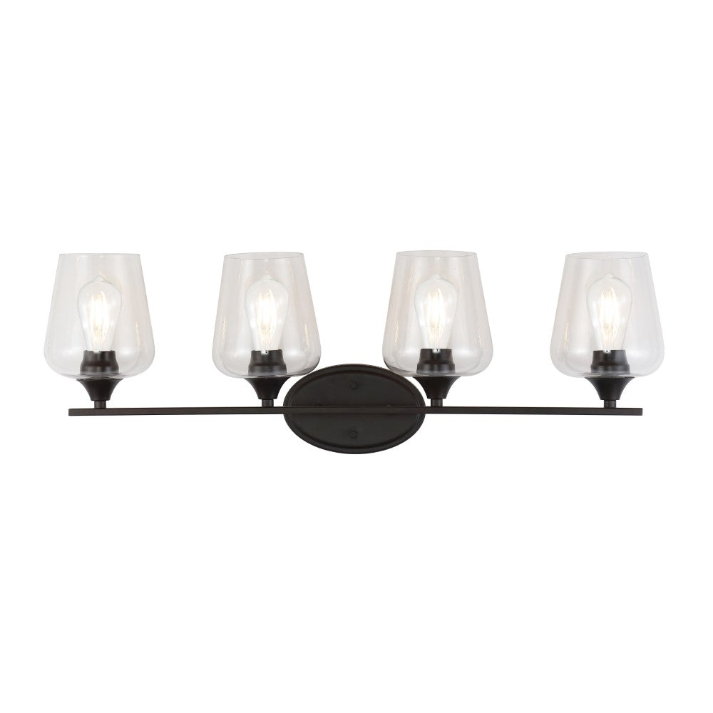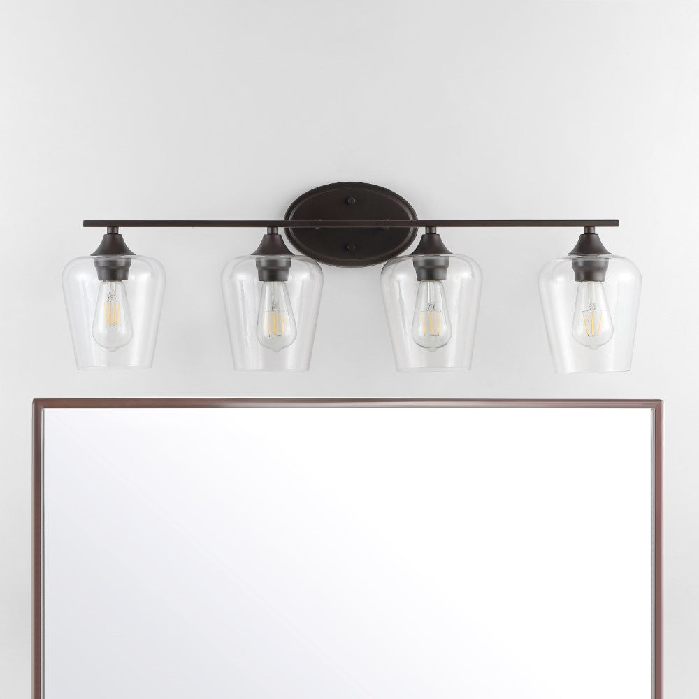 Elevate your urban apartment, cottage or farmhouse with our versatile take on a classic wall light. The included LED bulb casts a warm glow, providing plenty of light. The clear glass bell shade and oil rubbed bronze finish add elegant vintage style to your bath vanity, or above a kitchen sink.