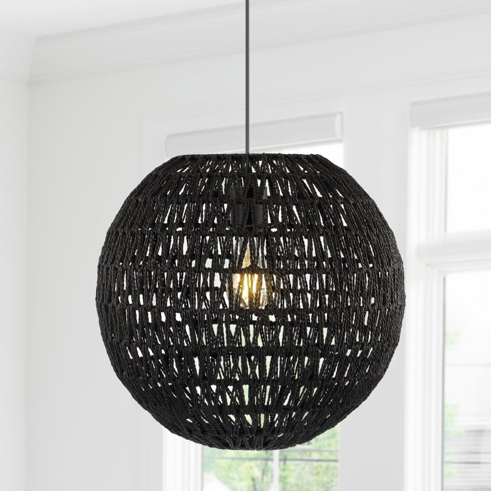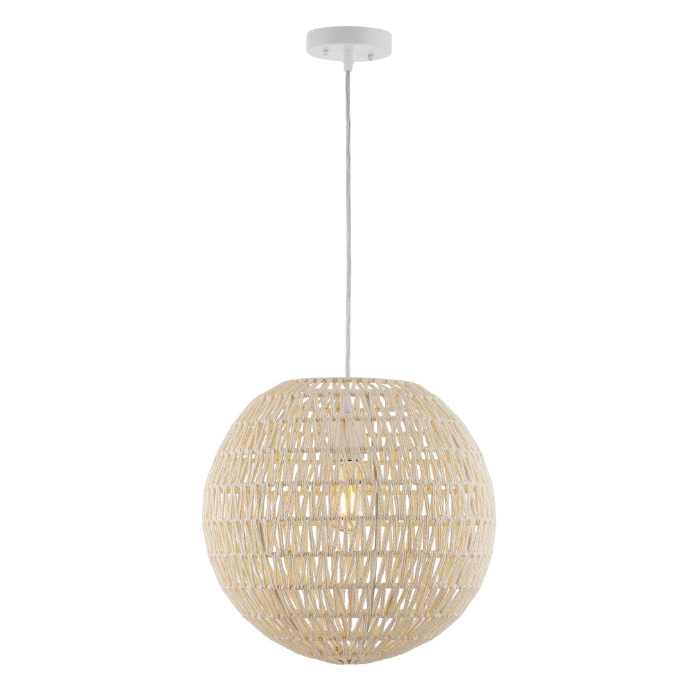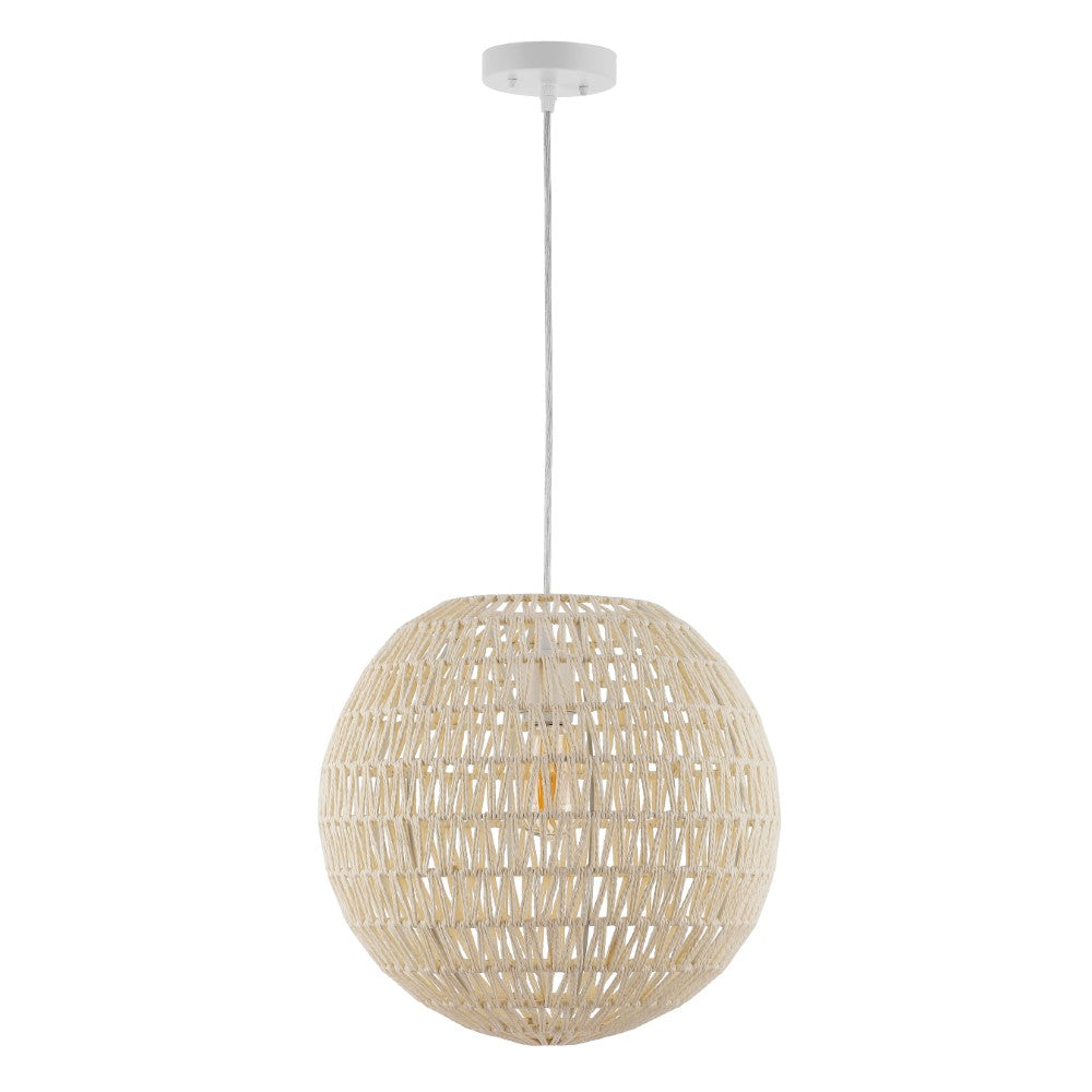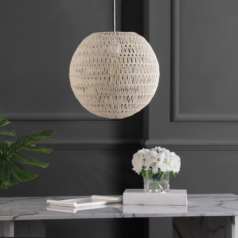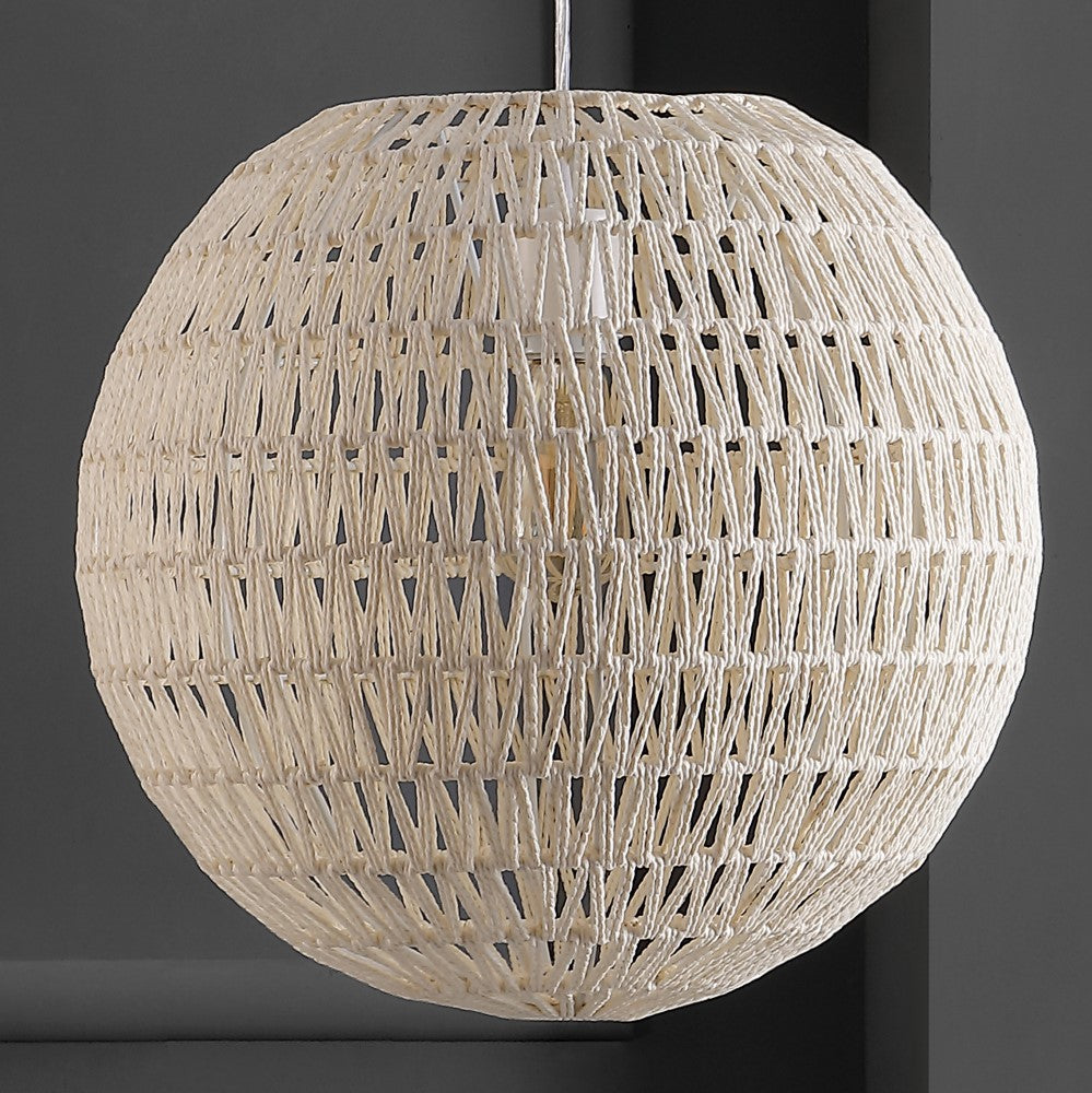 Modern design meets traditional craftsmanship in our white woven globe pendant. Made from paper wicker woven onto a sturdy metal frame, this ceiling fixture adds a Bohemian touch to your living room, bedroom, or dining room. Additionally, the drop is adjustable from 16" to 88", making it suitable for a ceiling of any height.