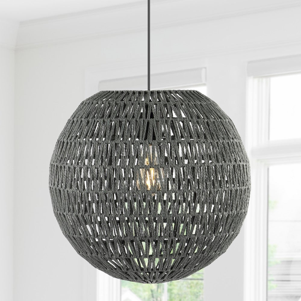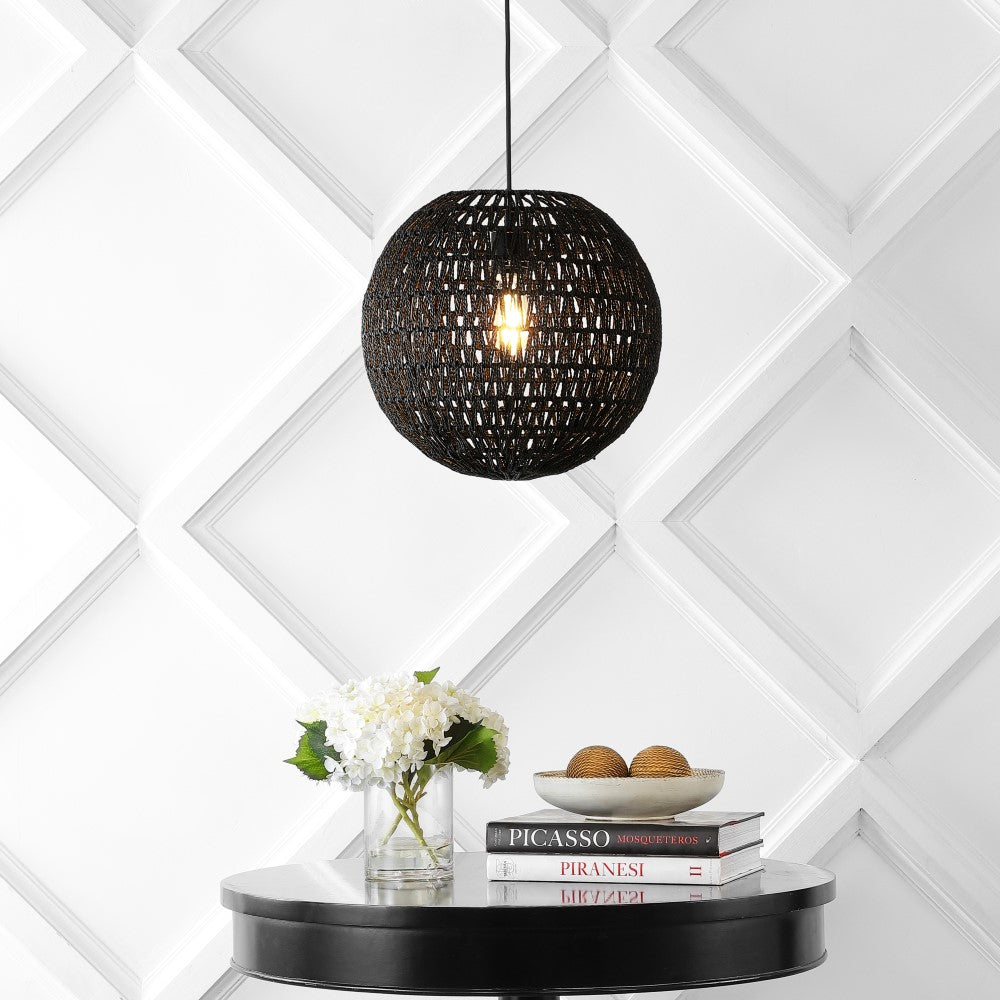 Derrick 15.7" Woven Rattan Orb LED Pendant