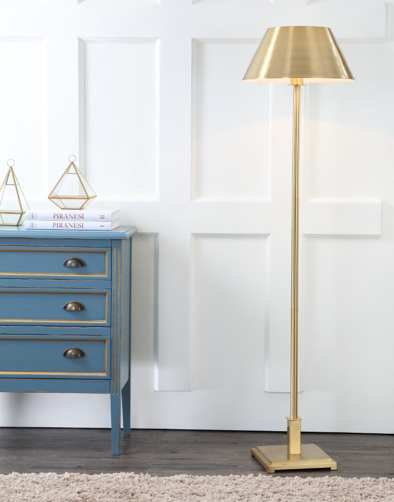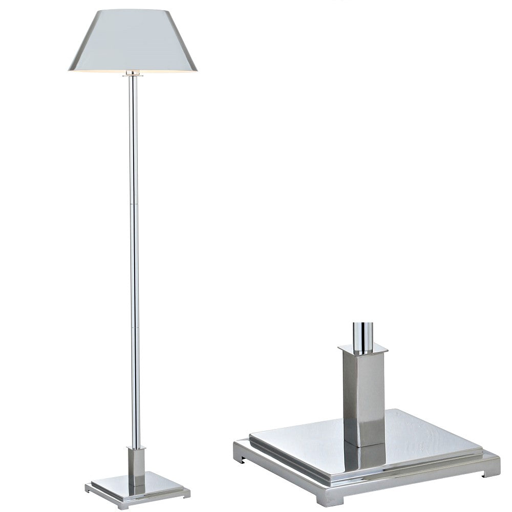 • Chromed lampshade and base in a classic floor lamp silhouette and scale