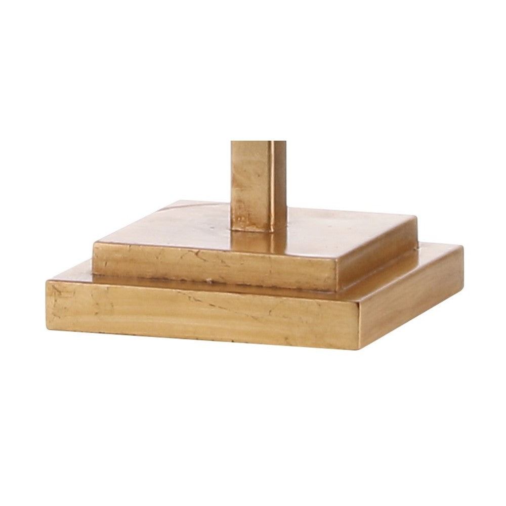 Geometric simplicity done right, this gold leaf stunner is worlds away from average. Its trend-forward column structure and stepped pedestal base evoke strong edges, in contrast to the lovely linen drum shade that softens the look. The gold leaf details extends to the matching finial, while the cord is silk-wrapped for an added luxe touch.
