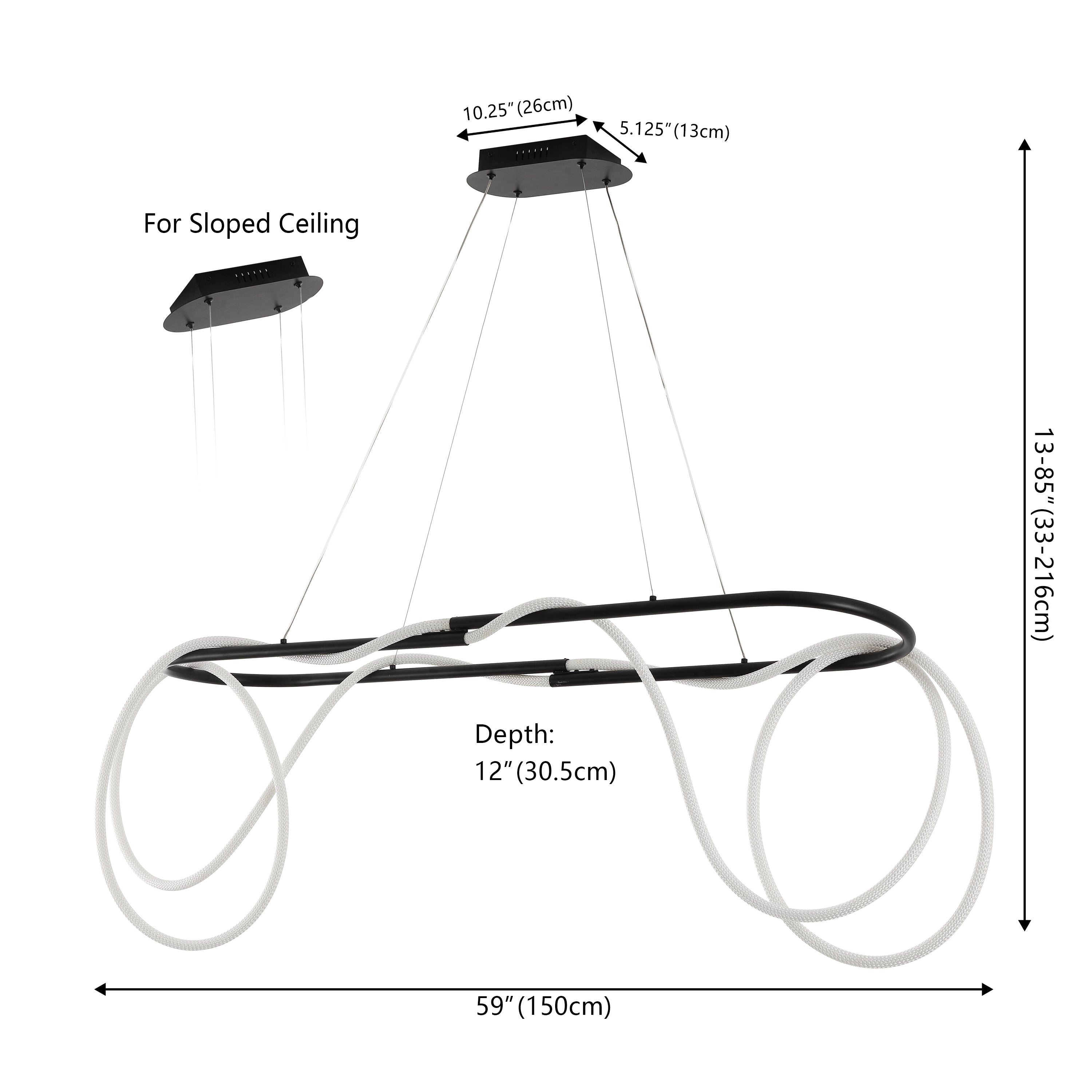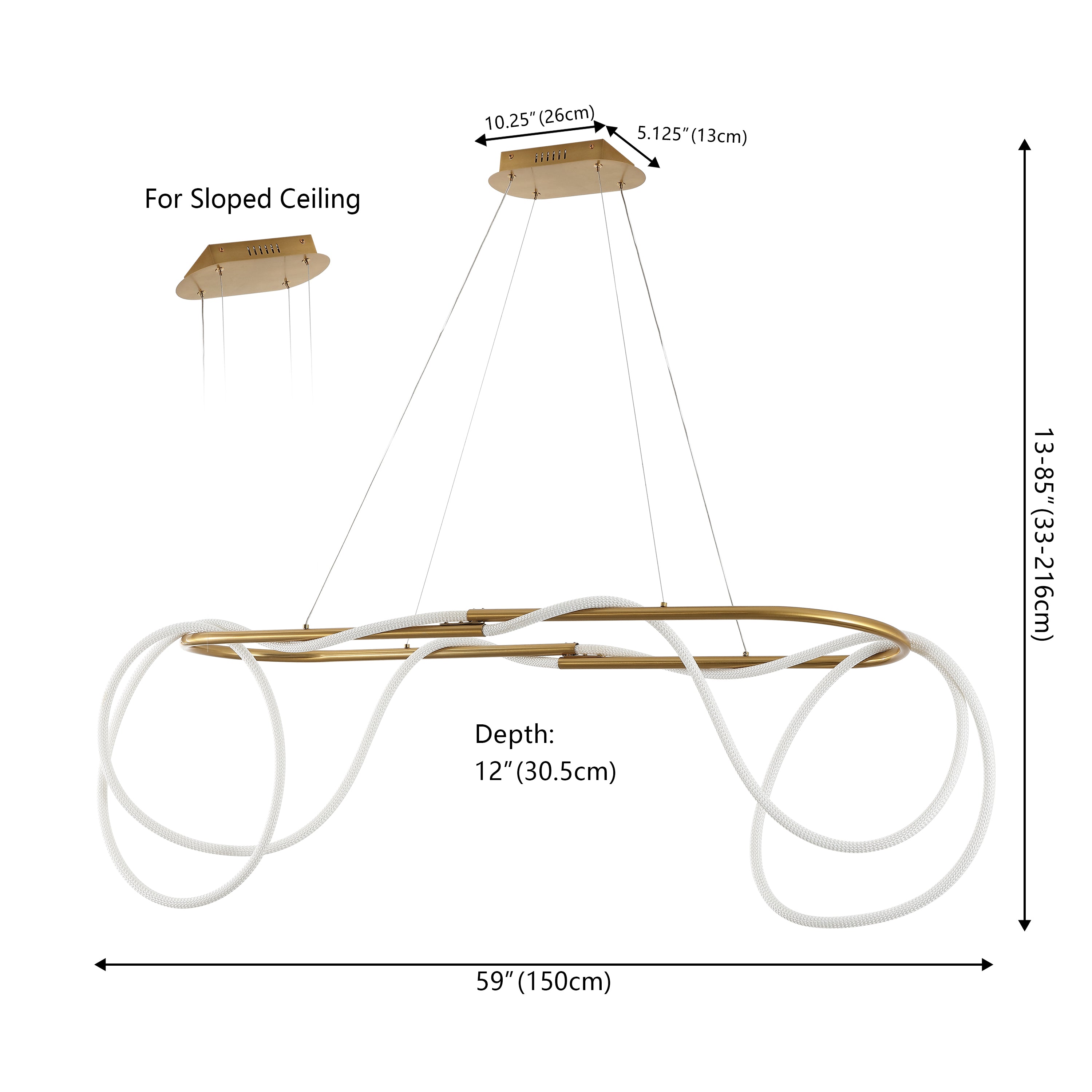Lisette 59" Contemporary Minimalist 360 Adjustable Silicone Rope/Metal Dimmable Integrated LED Chandelier