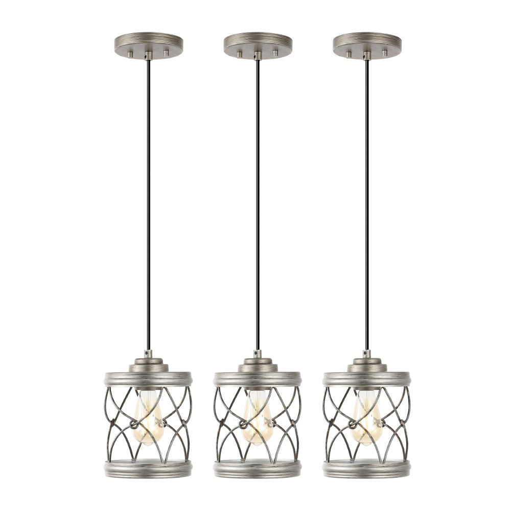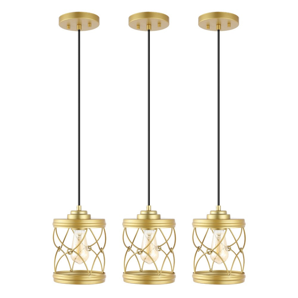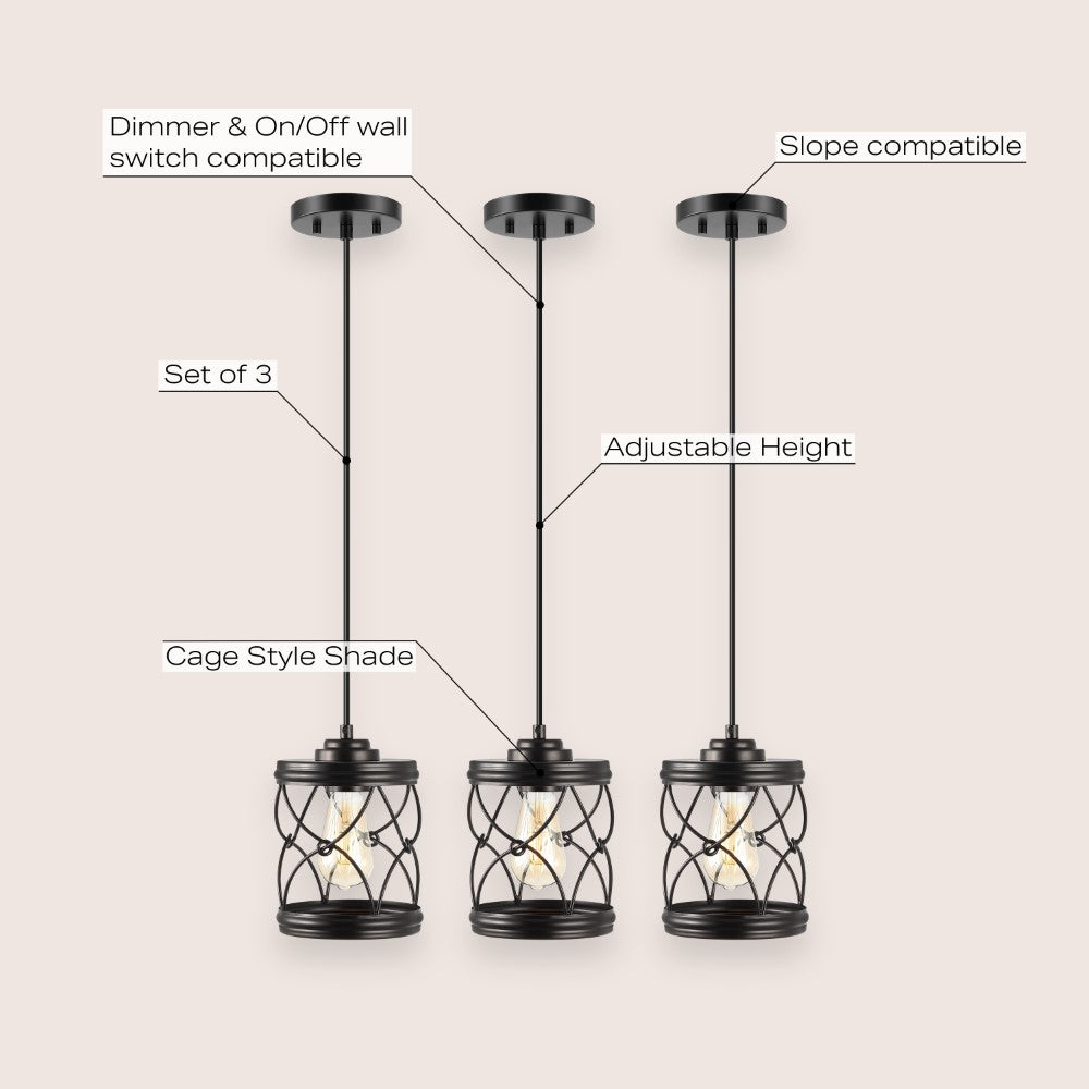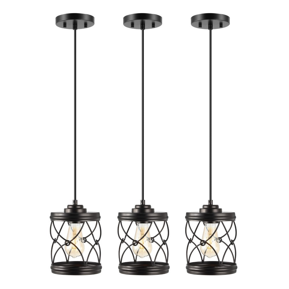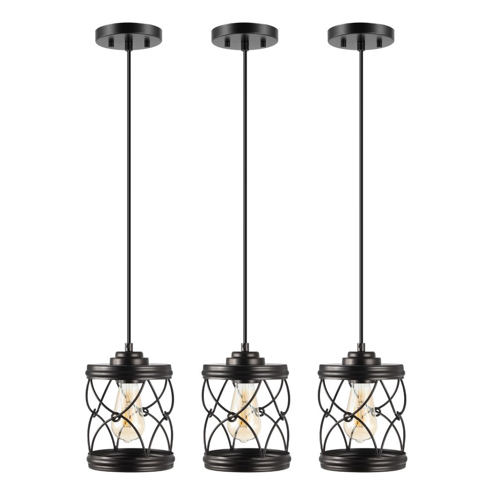 Our set of three pendant lights have filigree-inspired metal shades for an upscale Bohemian touch. Each pendant includes a single Edison-style LED bulb for bright, warm light. The small size is perfect for over a kitchen island, or line them up over a dining table or office desk.