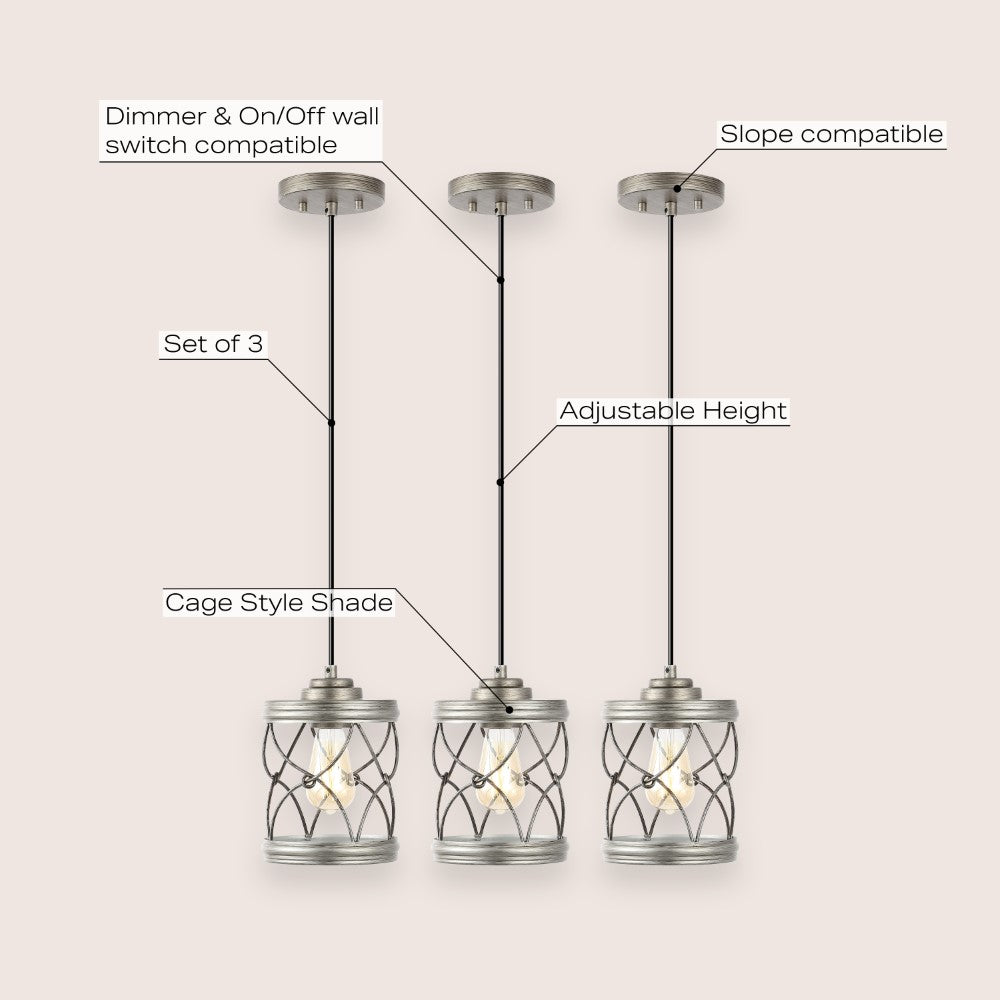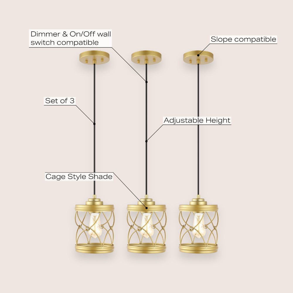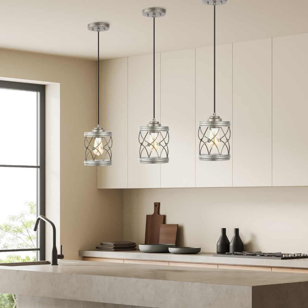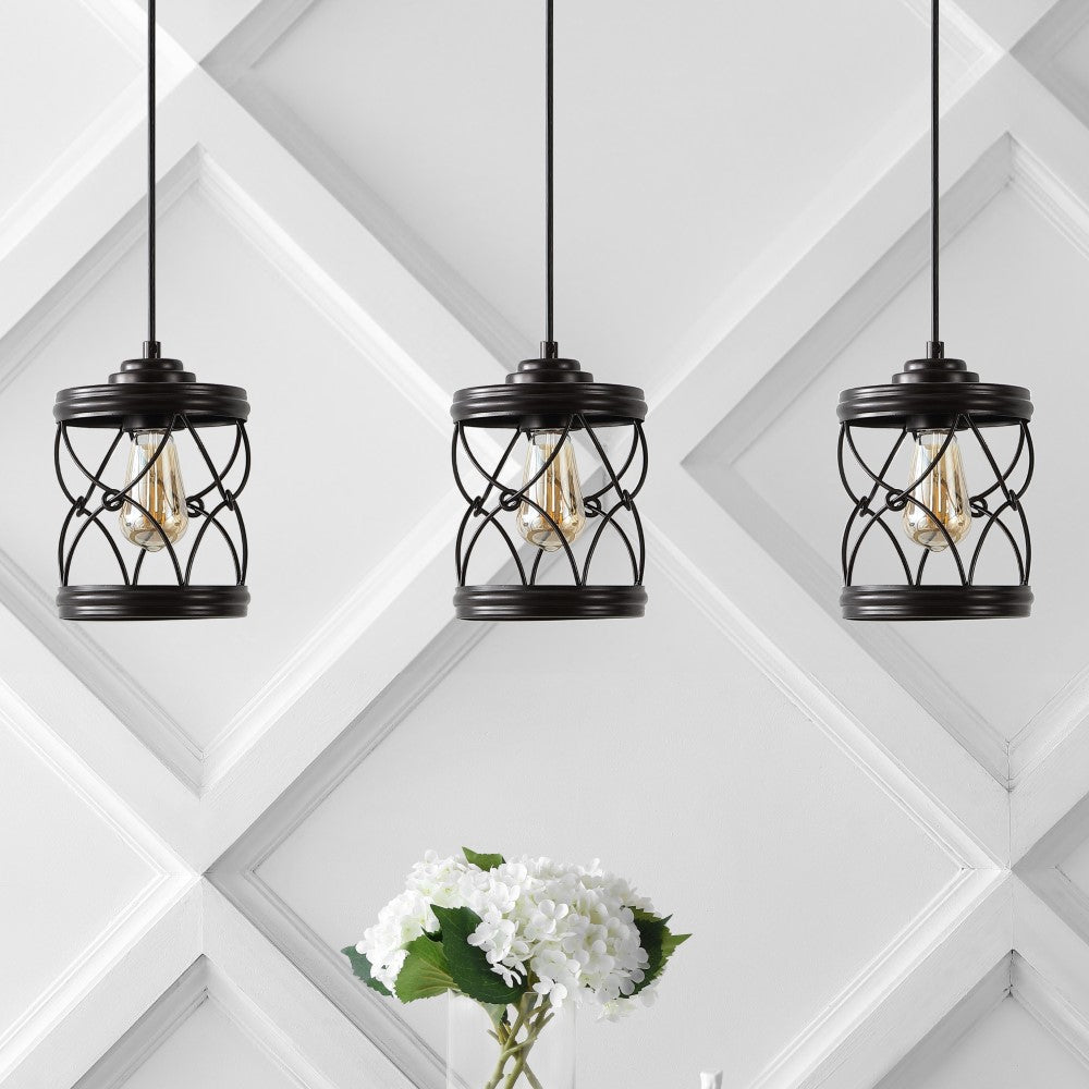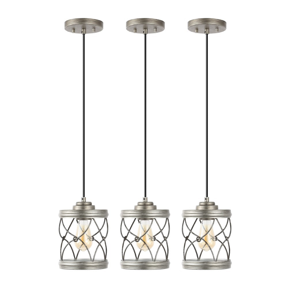 Our set of three pendant lights have filigree-inspired metal shades for an upscale Bohemian touch. Each pendant includes a single Edison-style LED bulb for bright, warm light. The small size is perfect for over a kitchen island, or line them up over a dining table or office desk.