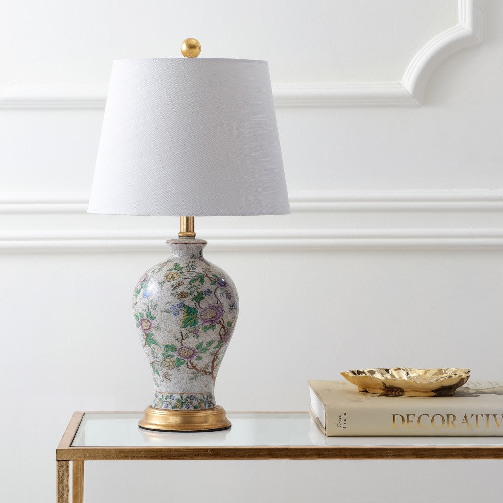 For centuries decorative ceramics have been a cornerstone in stately home decor. This urn shape, embellished with hand-painted florals in pastel shades, evokes the time-honored tradition of European porcelain but at an affordable price point. Adorned with brass accents and a silk-wrapped cord in the back, it's the perfect addition to your traditional space.