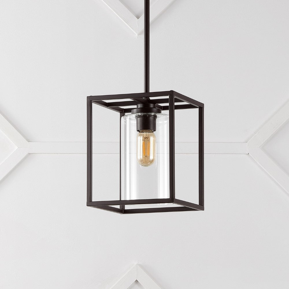 This square farmhouse pendant has a vintage bronze finish and is splendidly sized for a kitchen island or dining room