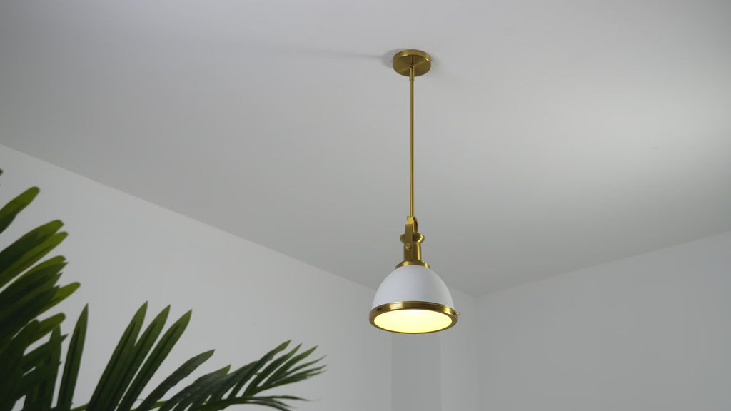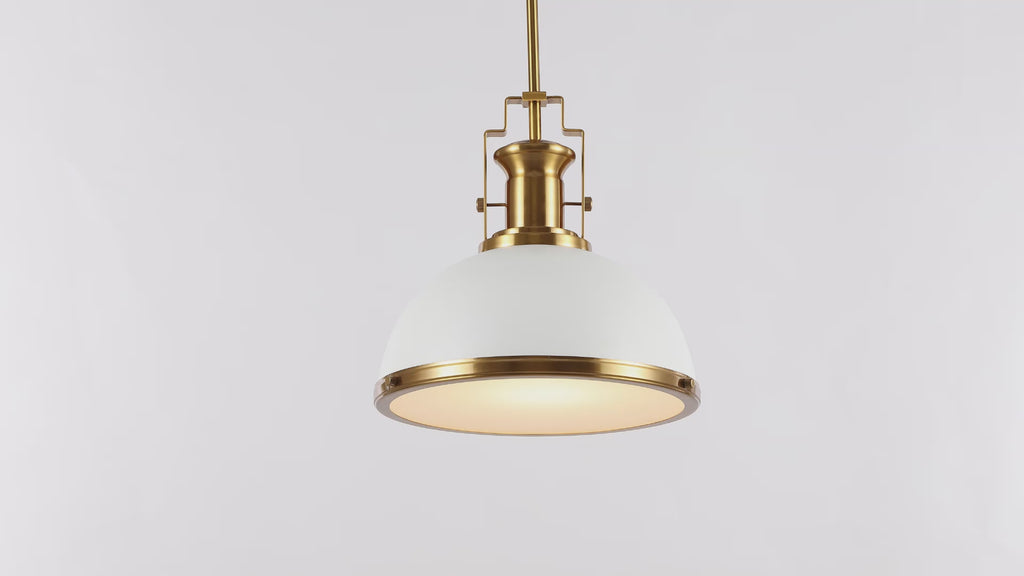 With its vintage detailing and classic good looks, this large kitchen pendant light adds an upscale touch to any traditional interior. The brass-gold finish is combined with a black metal hood for a crisp style contrast. The single LED bulb provides plenty of bright light, softened by a diffuser panel.