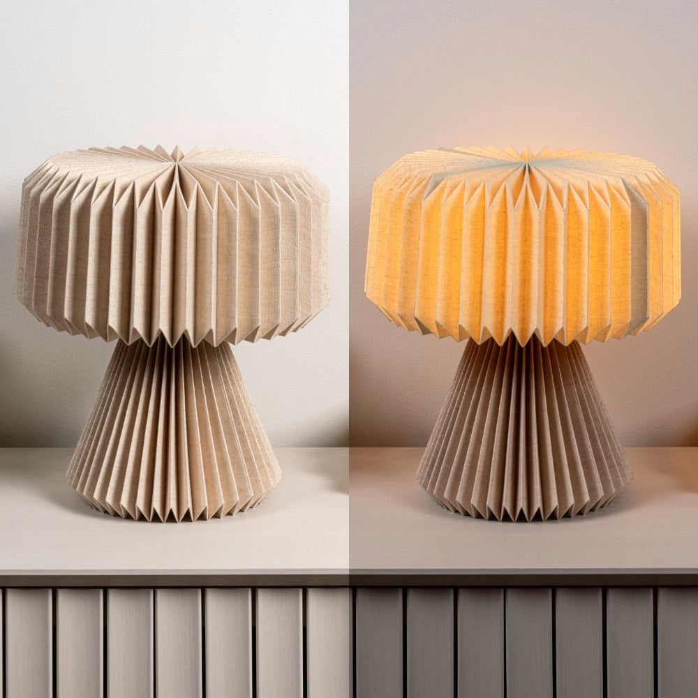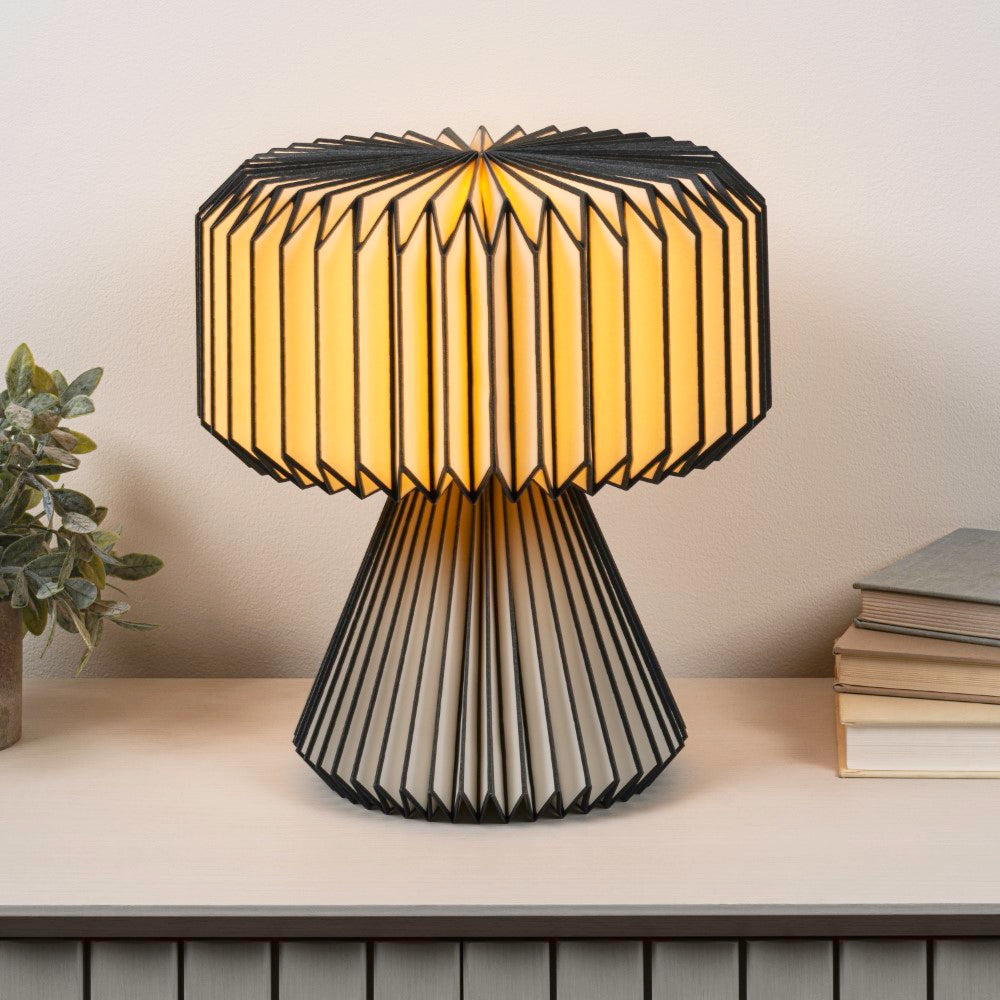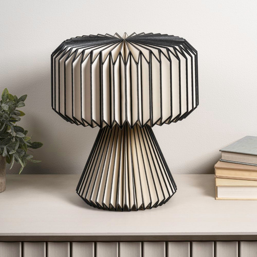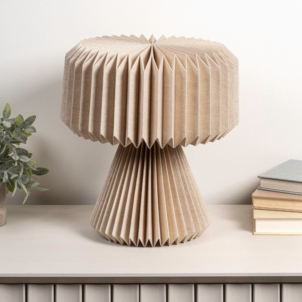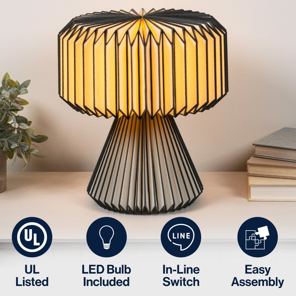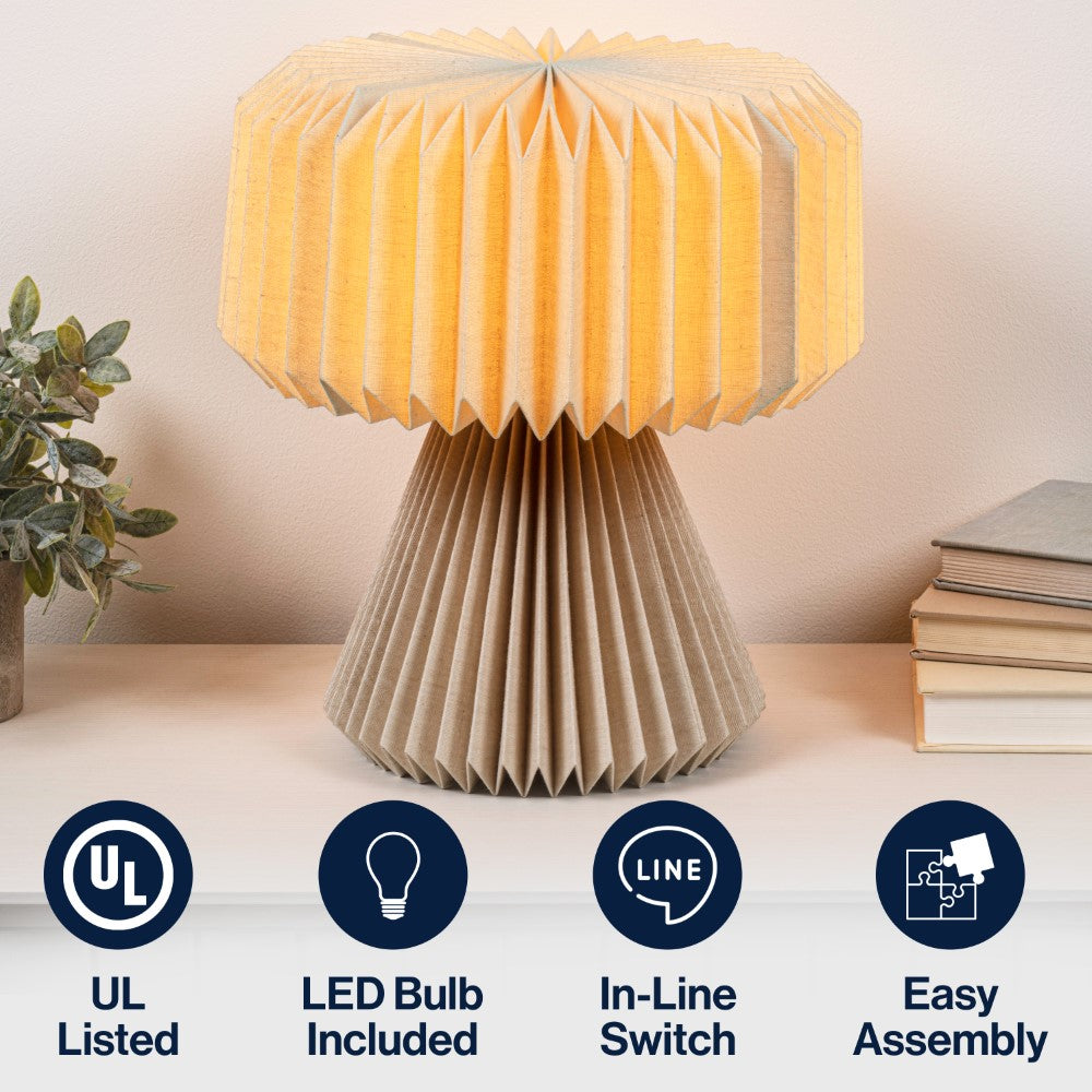 The Art Deco design of this modern accent lamp creates ambient lighting in the living room, home office or bedroom. Featuring a pleated paper shade and base, this lamp has an LED bulb for soft, warm light. The versatile design complements almost any interior.