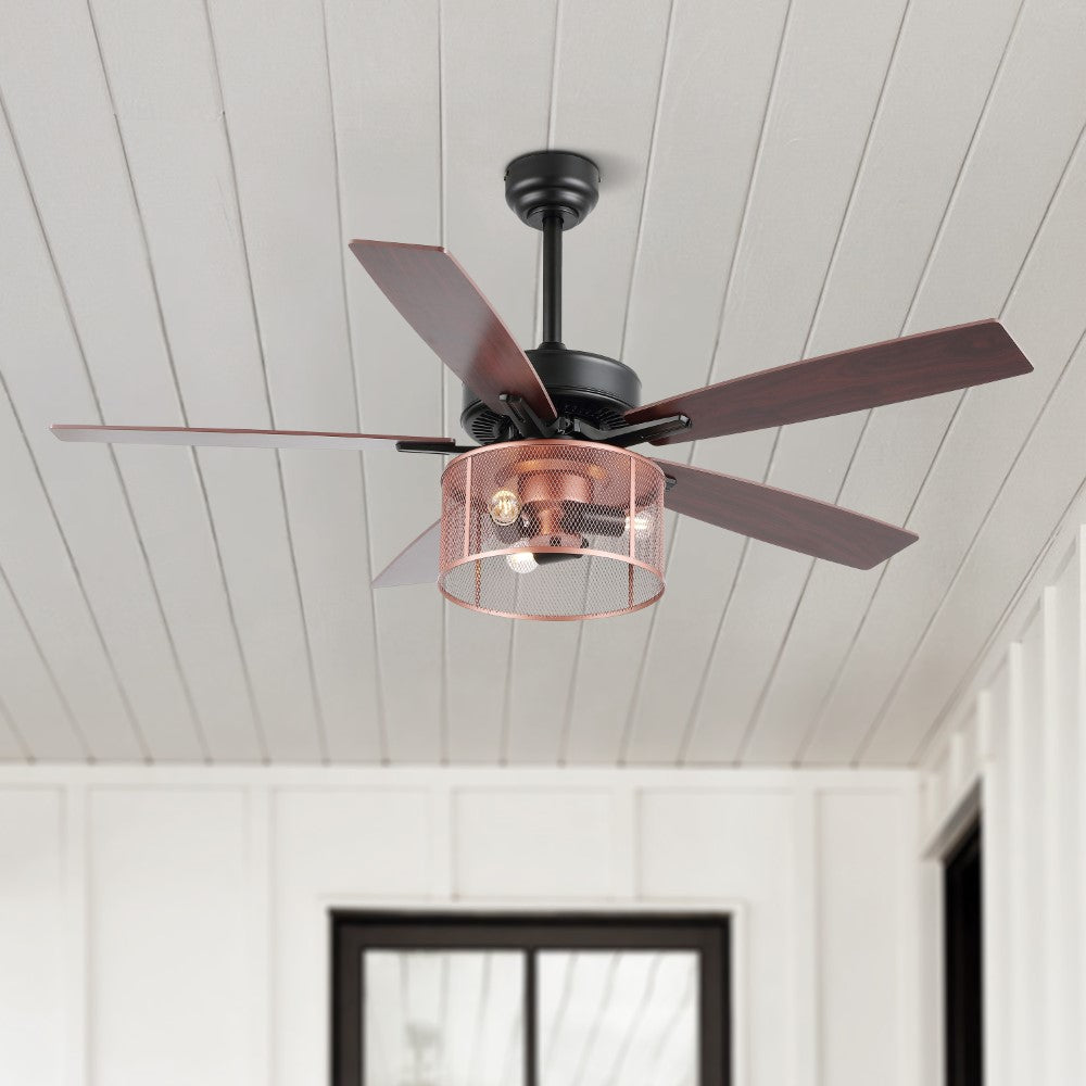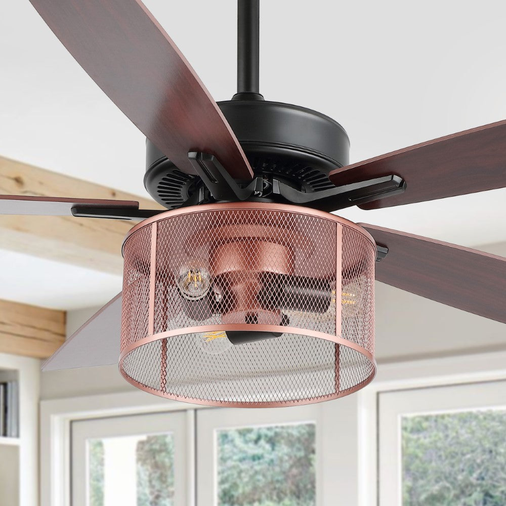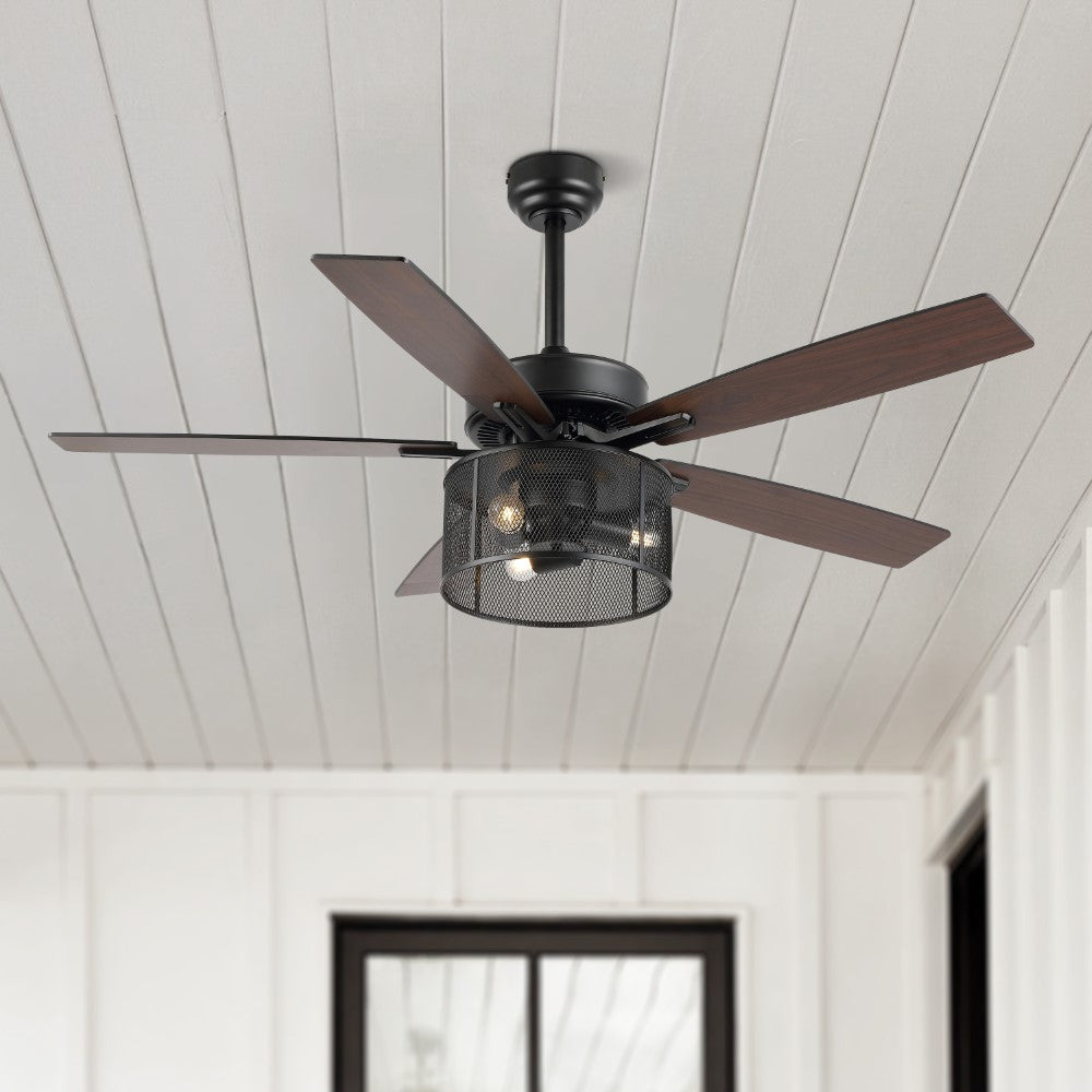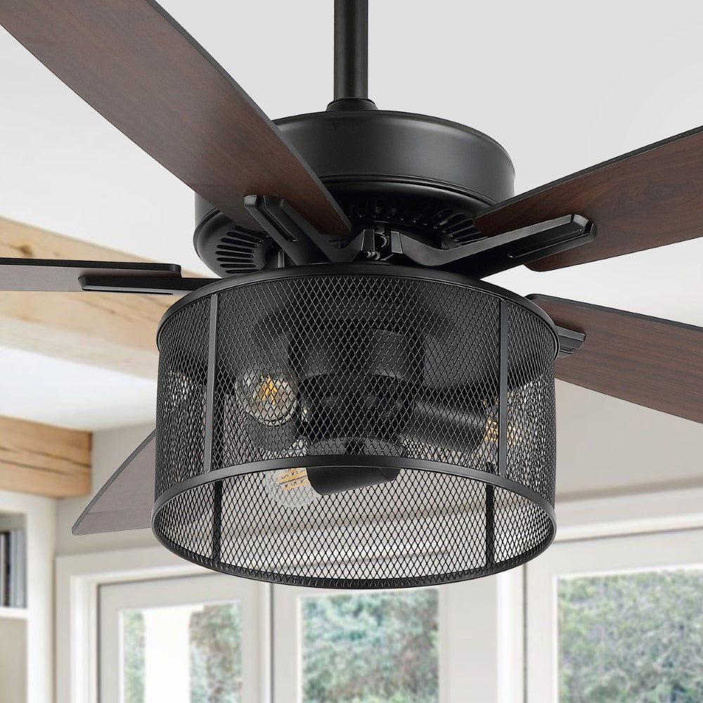 Sofia 52" Farmhouse Industrial Iron/Wood Mobile-App/Remote-Controlled LED Ceiling Fan