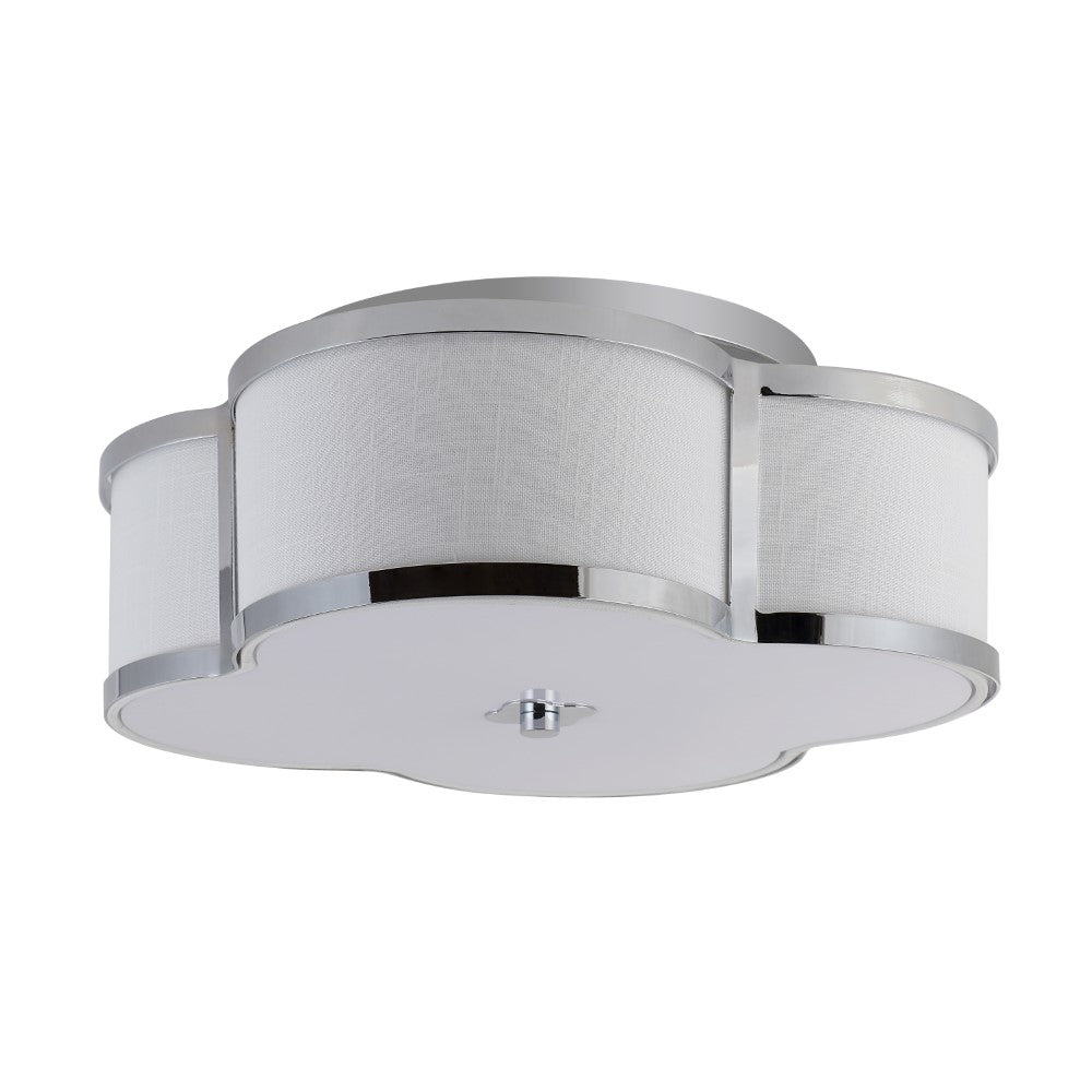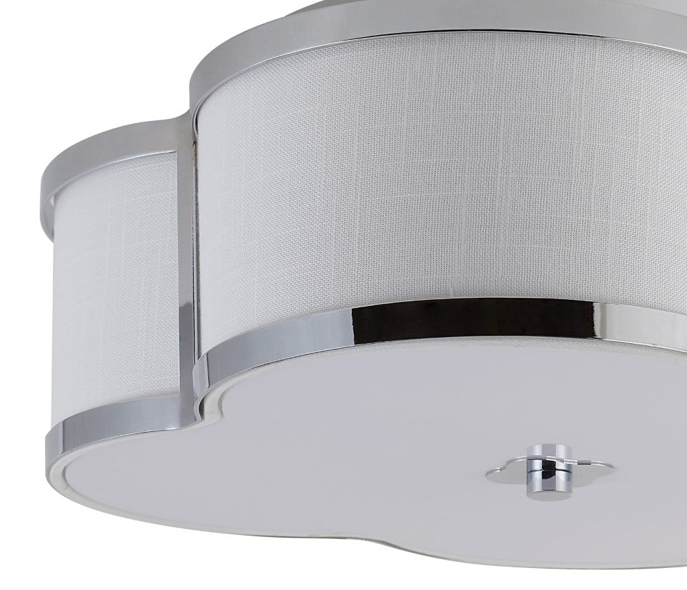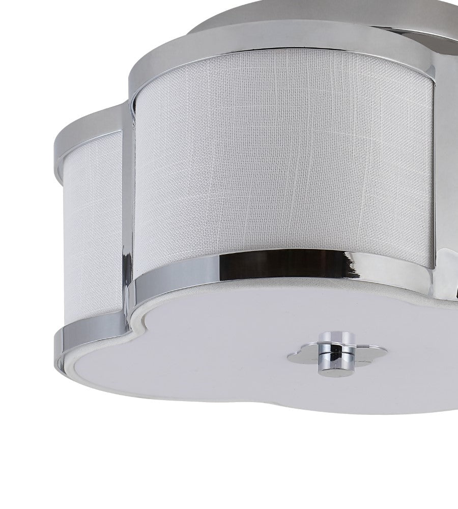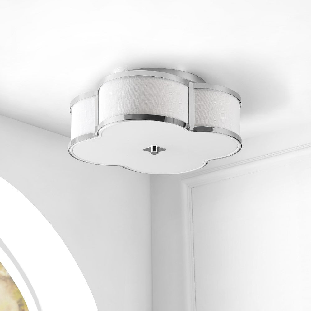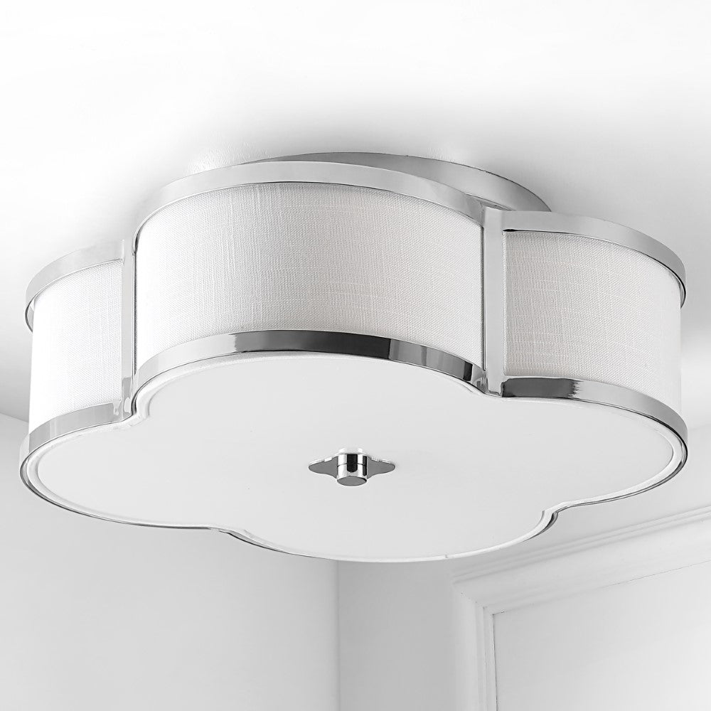 A scalloped shade gives our flush-mount chandelier a modern quatrefoil silhouette. Two dimmable LED bulbs provide plenty of bright light, softened by a white diffuser panel. The chrome trim adds sparkle in a dining room, kitchen, living room, bedroom, or foyer.