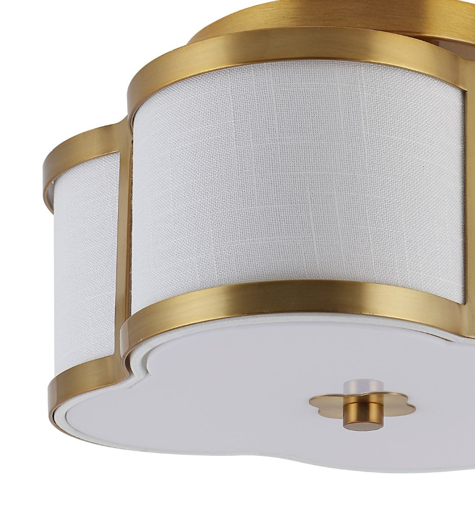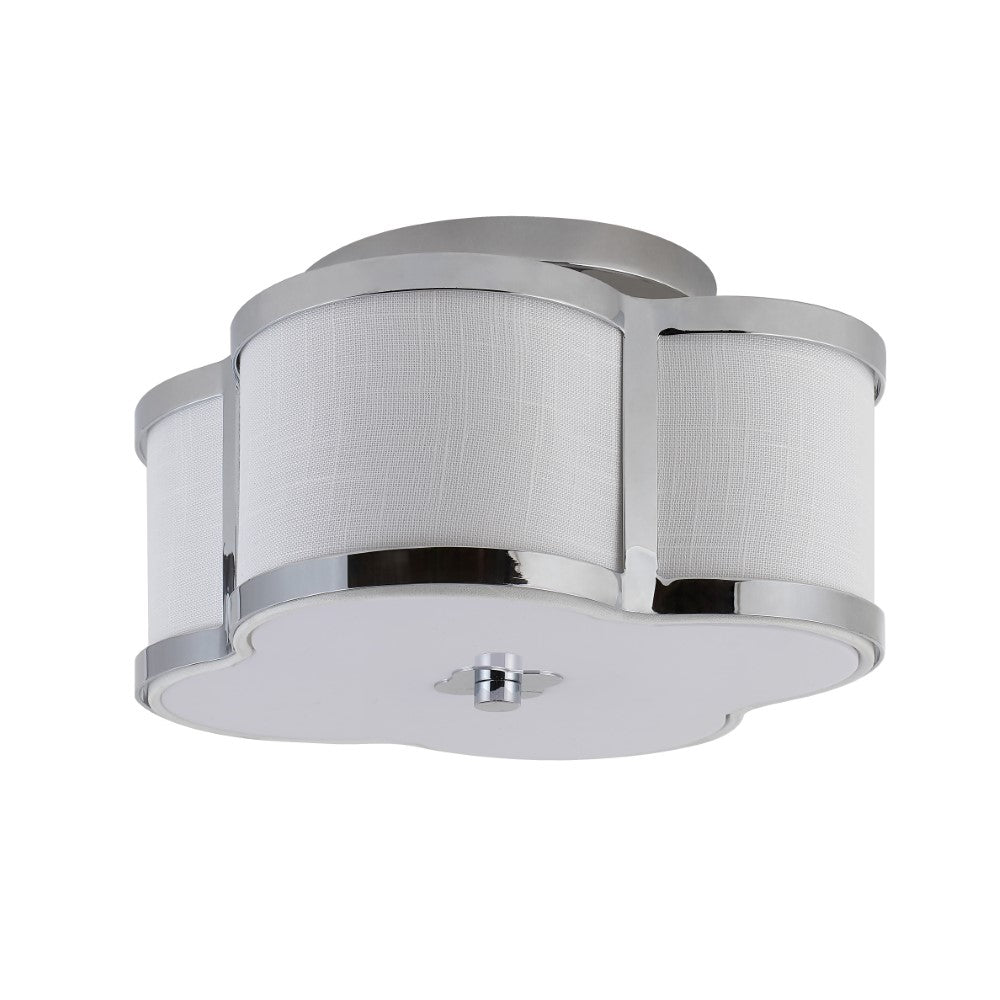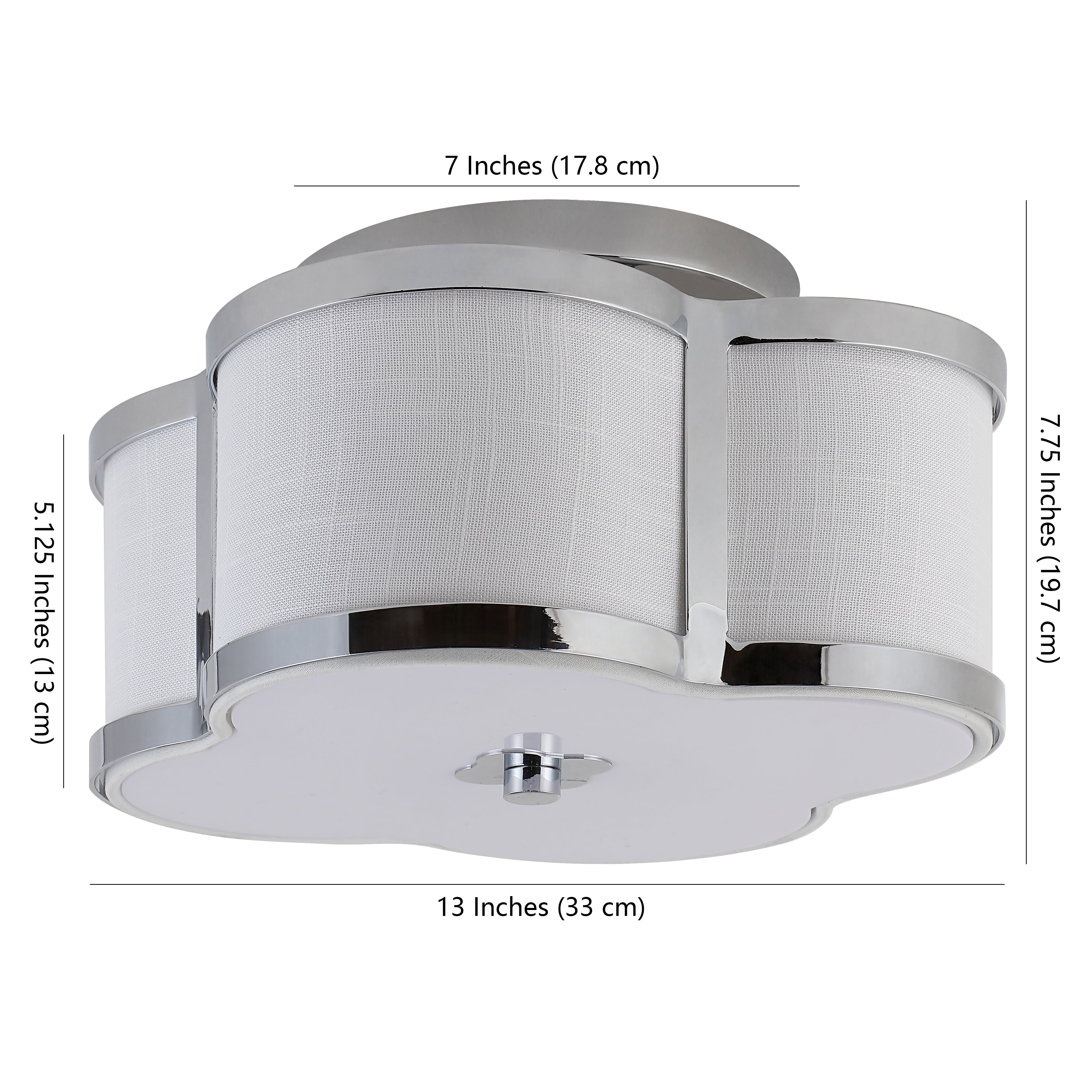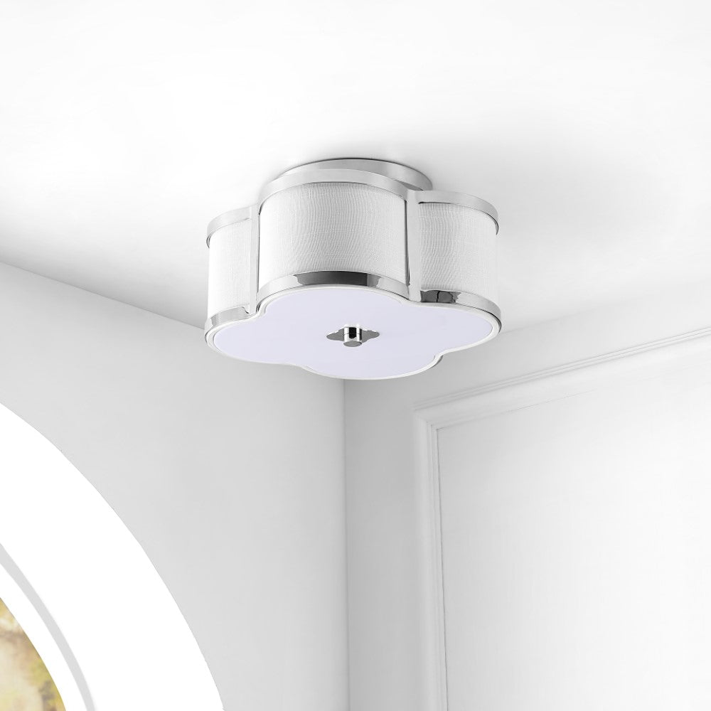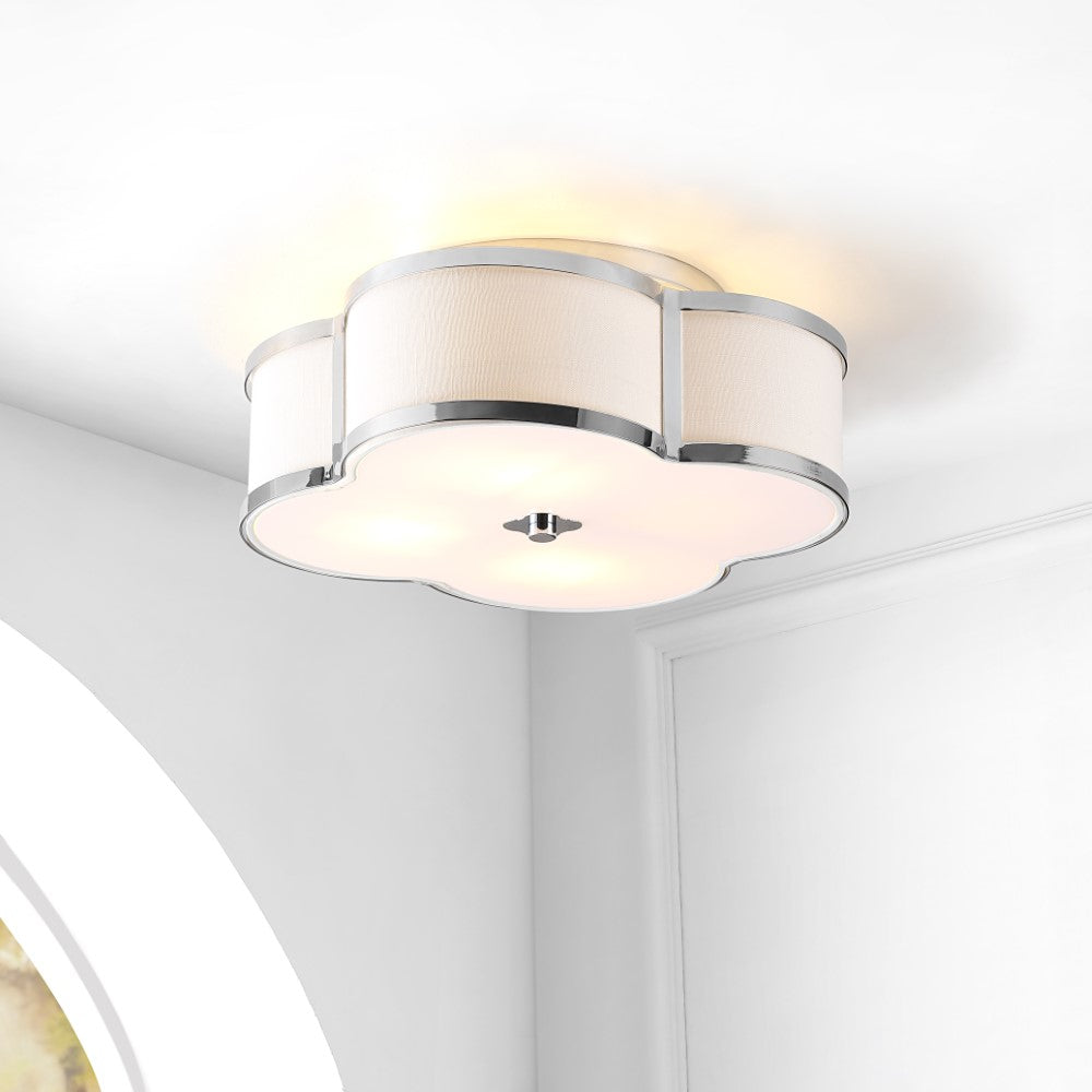 A scalloped shade gives our flush-mount chandelier a modern quatrefoil silhouette. Two dimmable LED bulbs provide plenty of bright light, softened by a white diffuser panel. The chrome trim adds sparkle in a dining room, kitchen, living room, bedroom, or foyer.