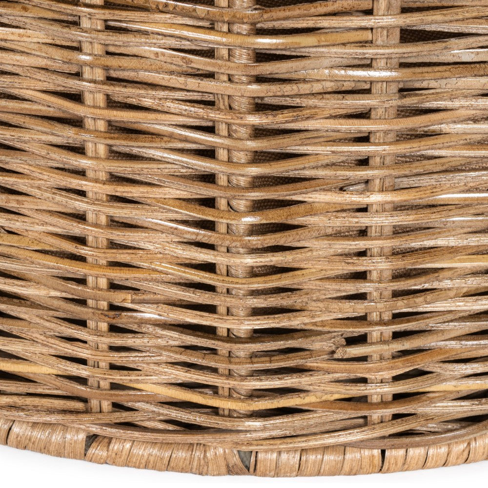 - This woven cat bed is made of natural-color woven rattan and is decked out with a beige cushion