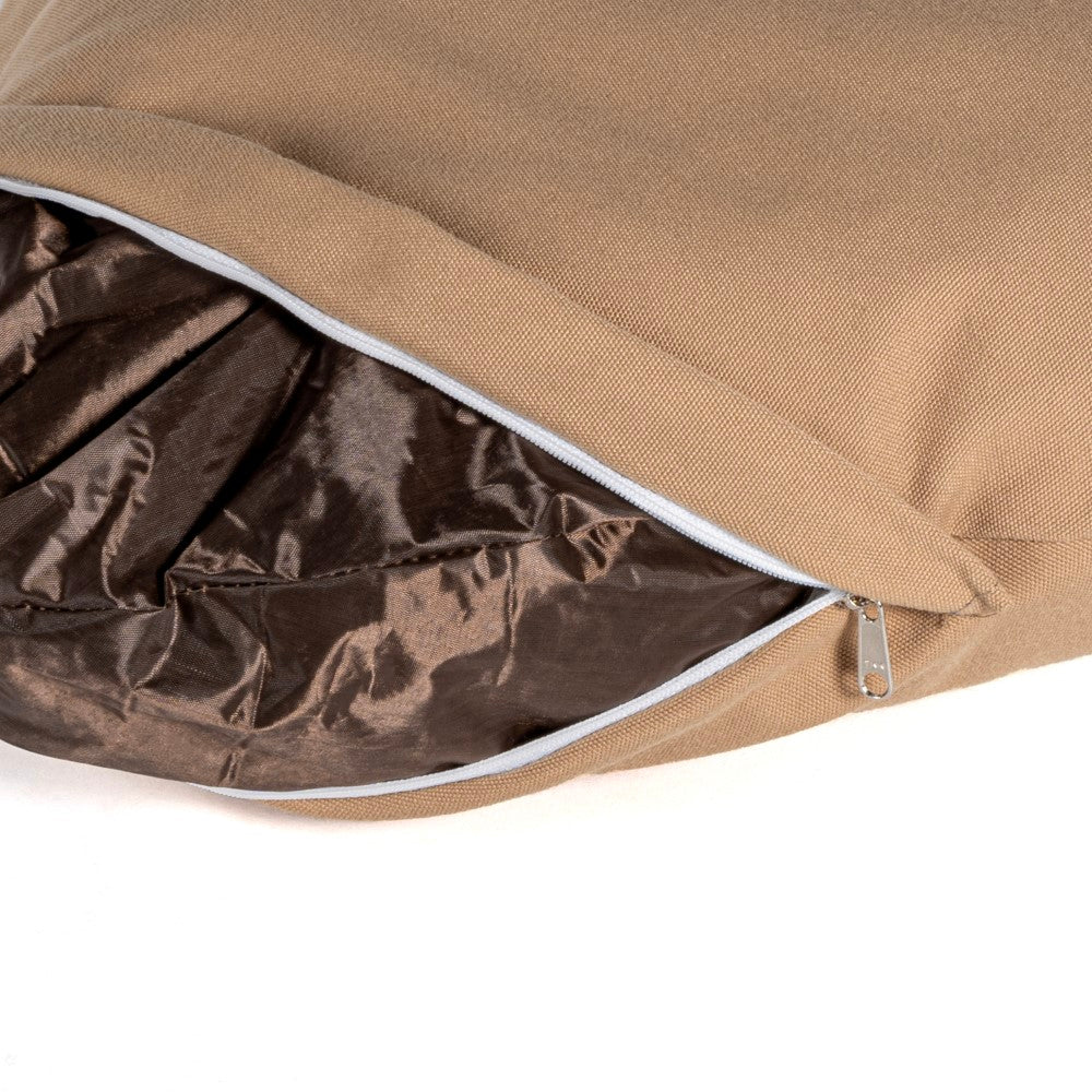 - This dog bed boasts a plush cushion made of polyester fabric and filler material