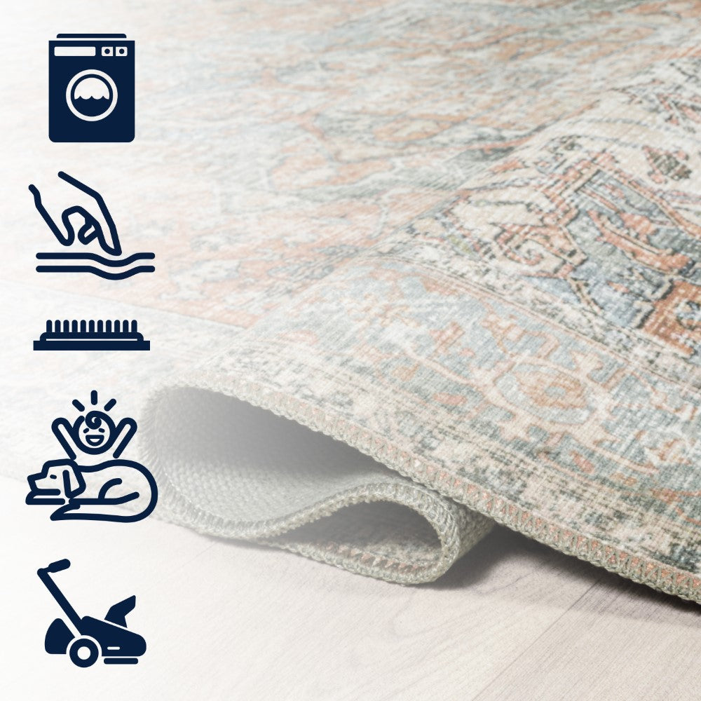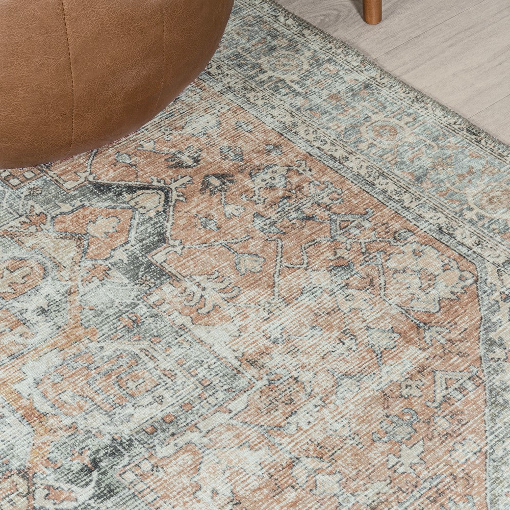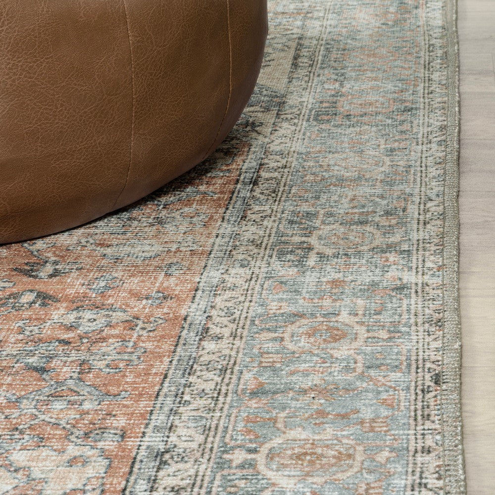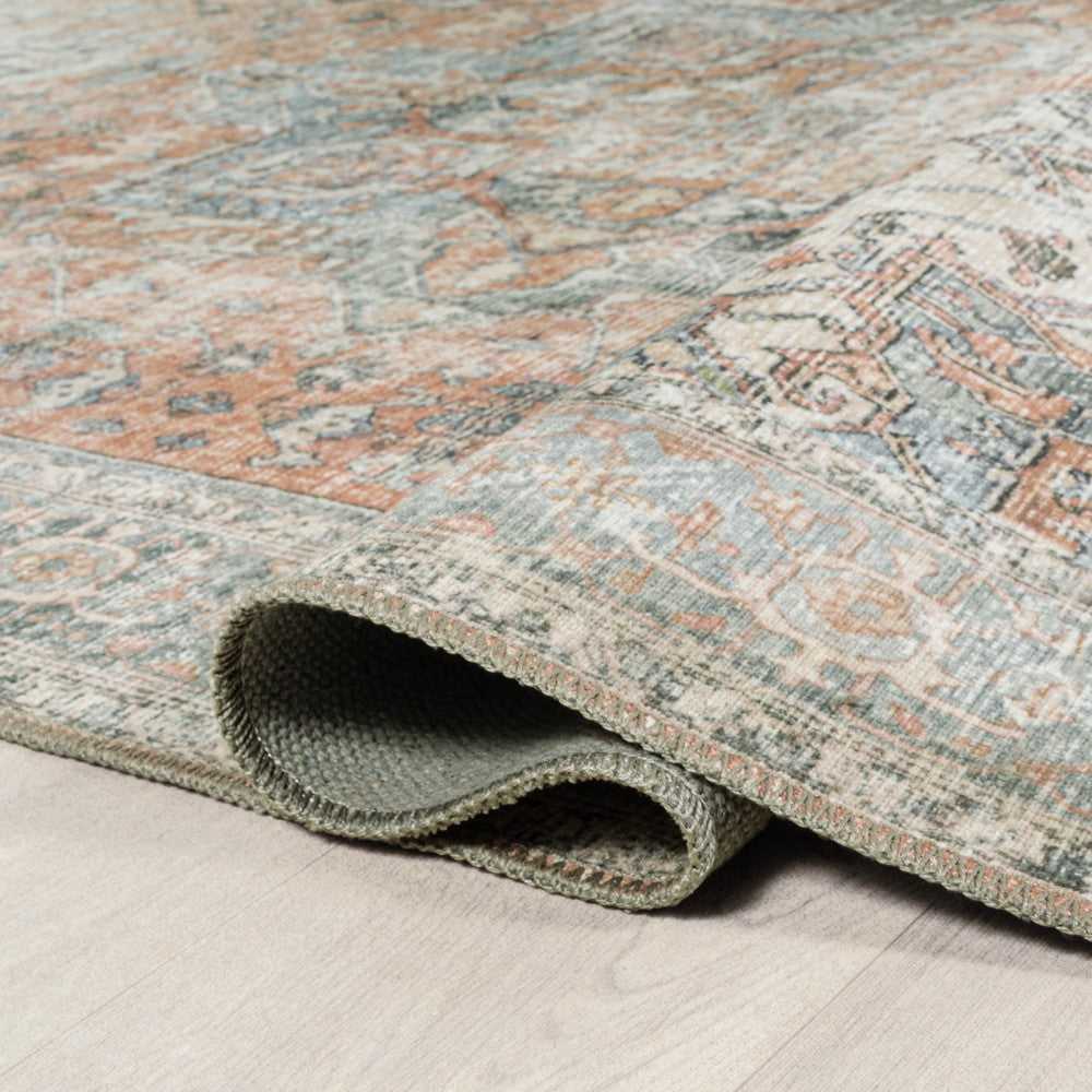 - The distressed Persian pattern incorporates a blend of terracotta and blues