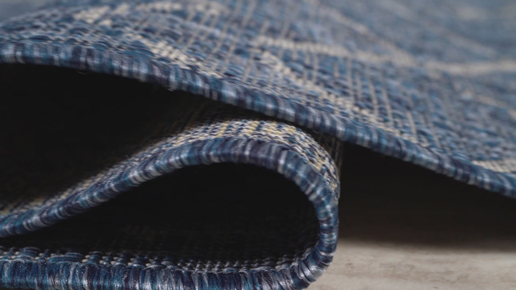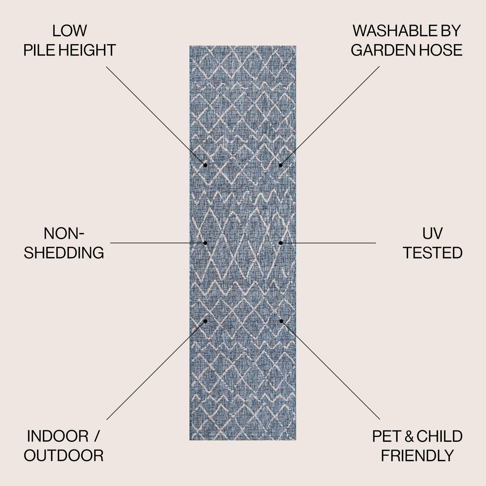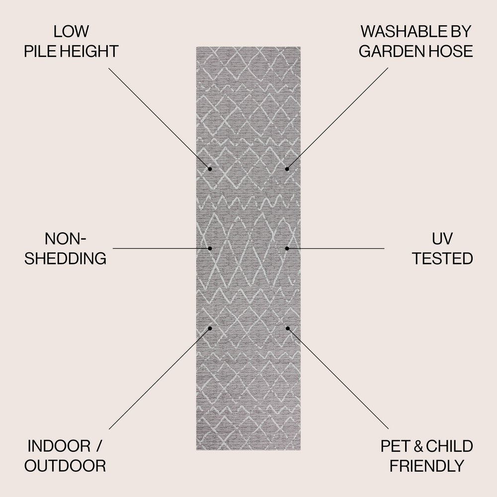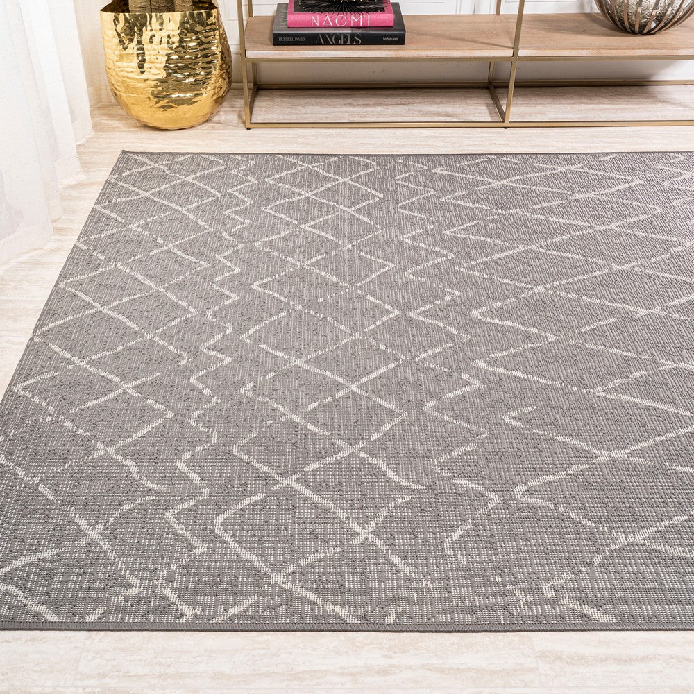 Inspired by vintage Moroccan rugs, our indoor/outdoor rug adds modern Bohemian style to your porch, patio or sunroom. The classic Moroccan pattern has a geometric design of beige diamonds on a field of dark gray. Mingled threads give this rug a handwoven, vintage vibe that's perfect for an entry, kitchen, hallway, living room or bedroom too. The pet-friendly and kid-proof flatweave design makes it easy to clean, and perfect for the beach house.