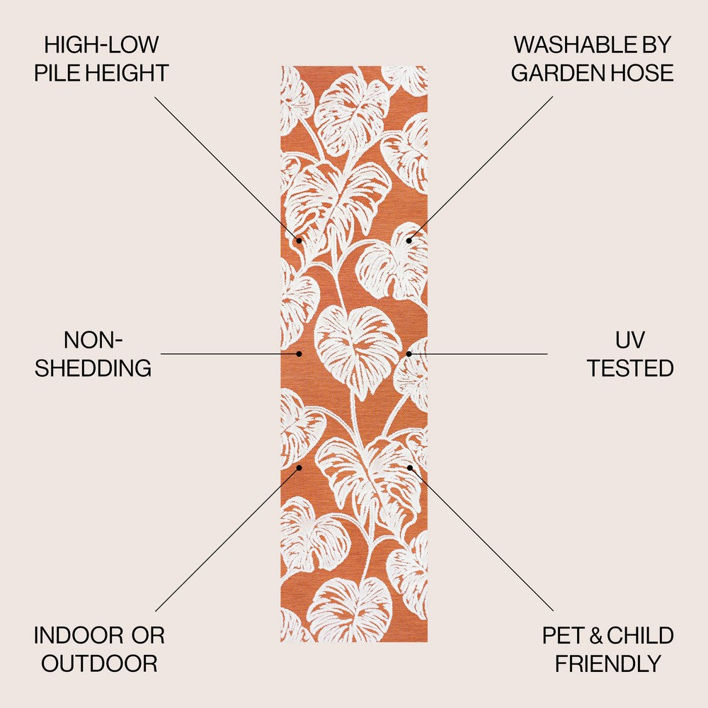 Add a tropical touch indoors or outdoors with our modern, graphic monstera leaf design. This two-tone rug adds a bold pop of pattern and color to the living room, dining room, bedroom or office. Perfect for the porch, this pet-friendly and low-pile design is easy to clean.