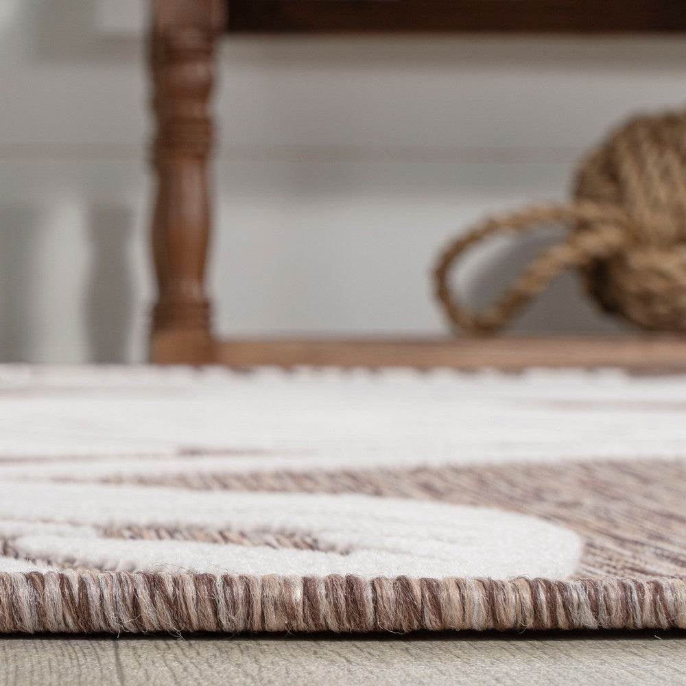 - The woven terracotta and ivory leaf design has a tropical, Bohemian look