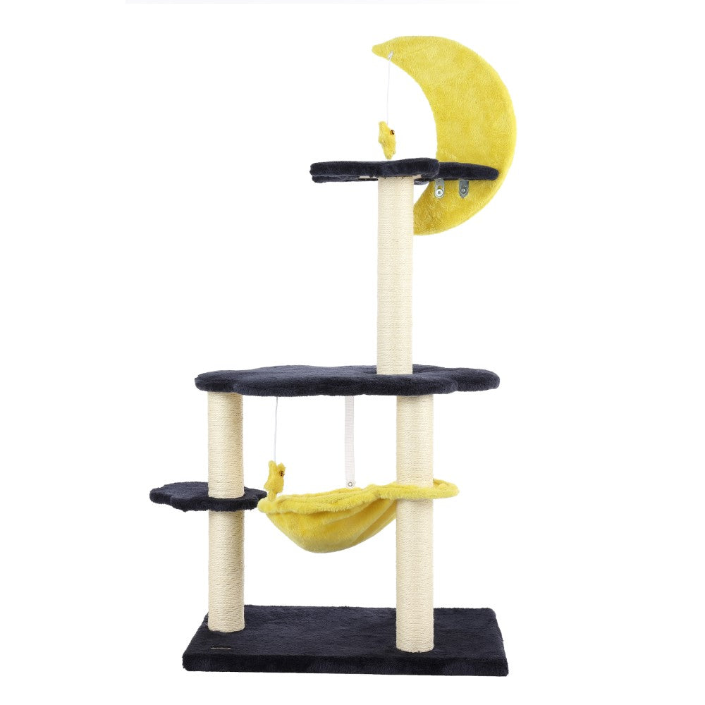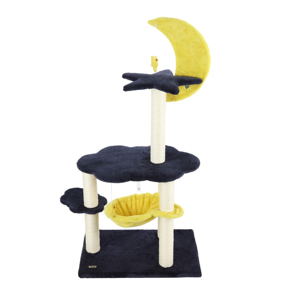 Our moon and stars cat tree not only looks adorable, it keeps your cats happy and healthy too. The climbing platforms and cozy nest are covered in plush fabric, with jute posts for scratching. This nighttime cat tree is perfect for a bedroom or small living room.