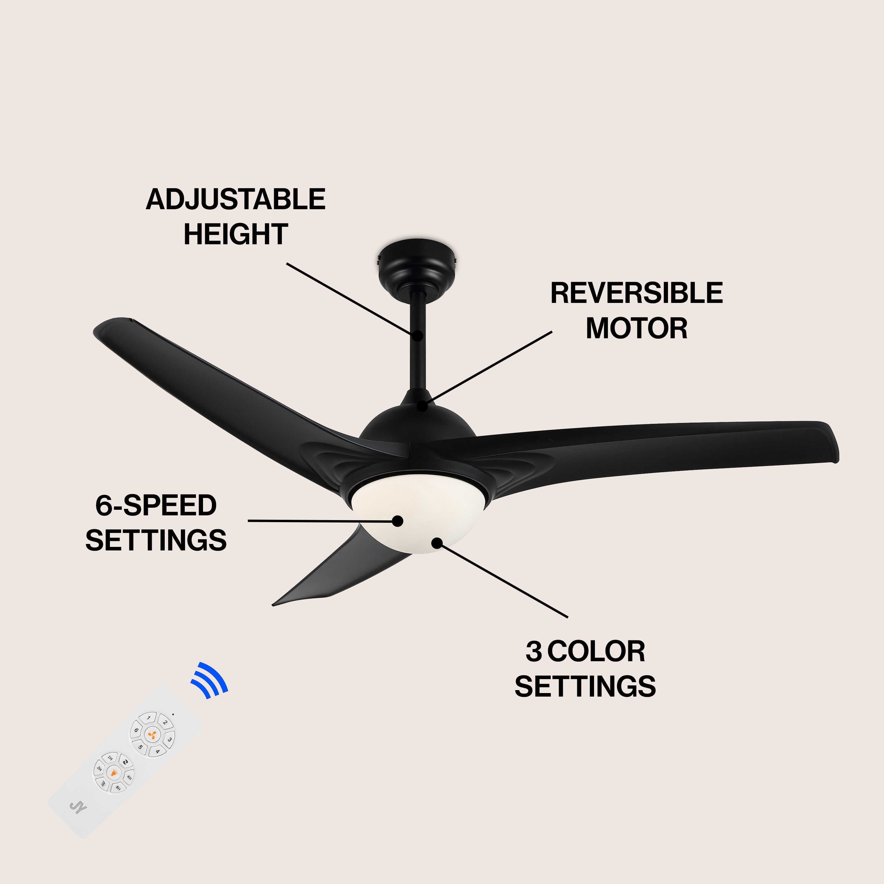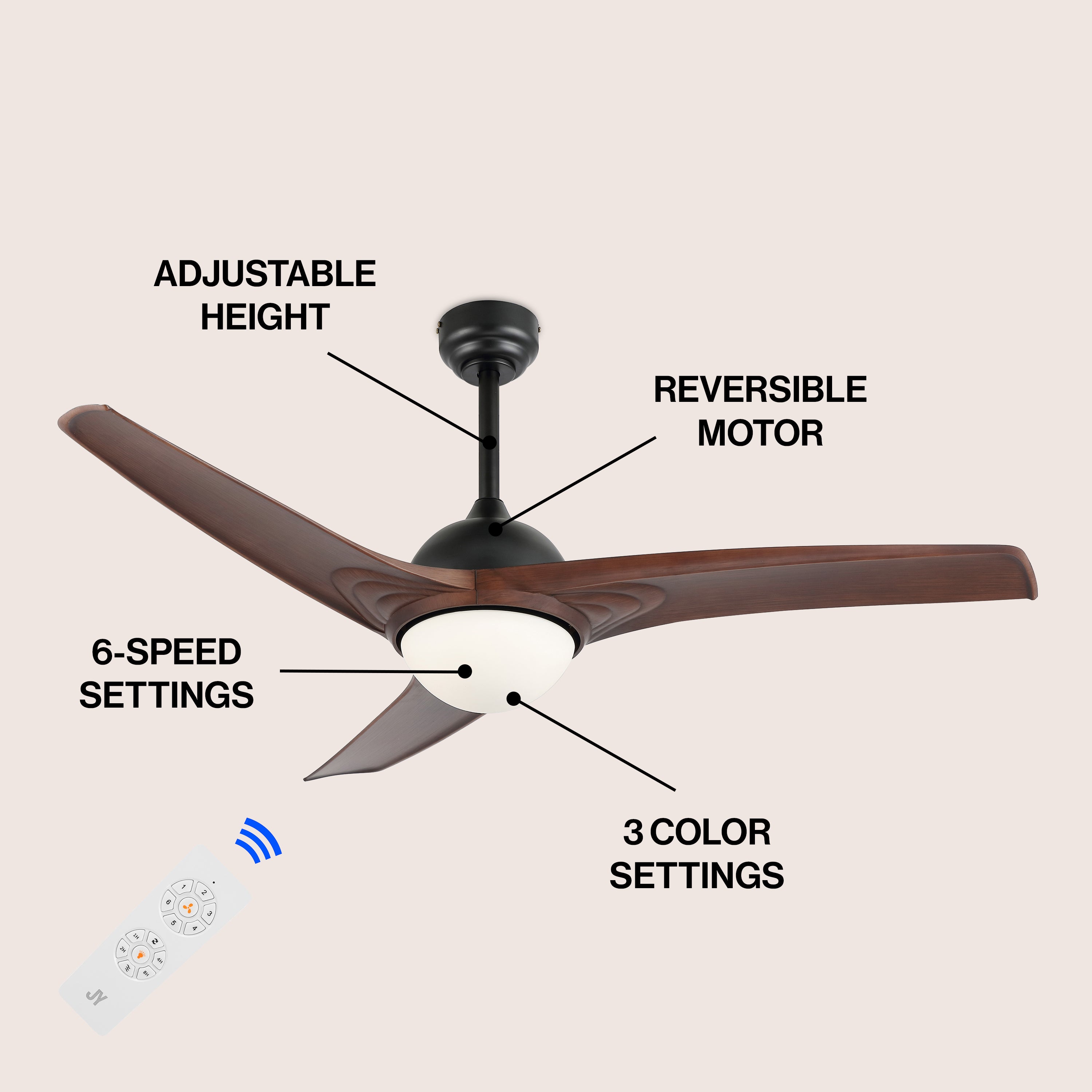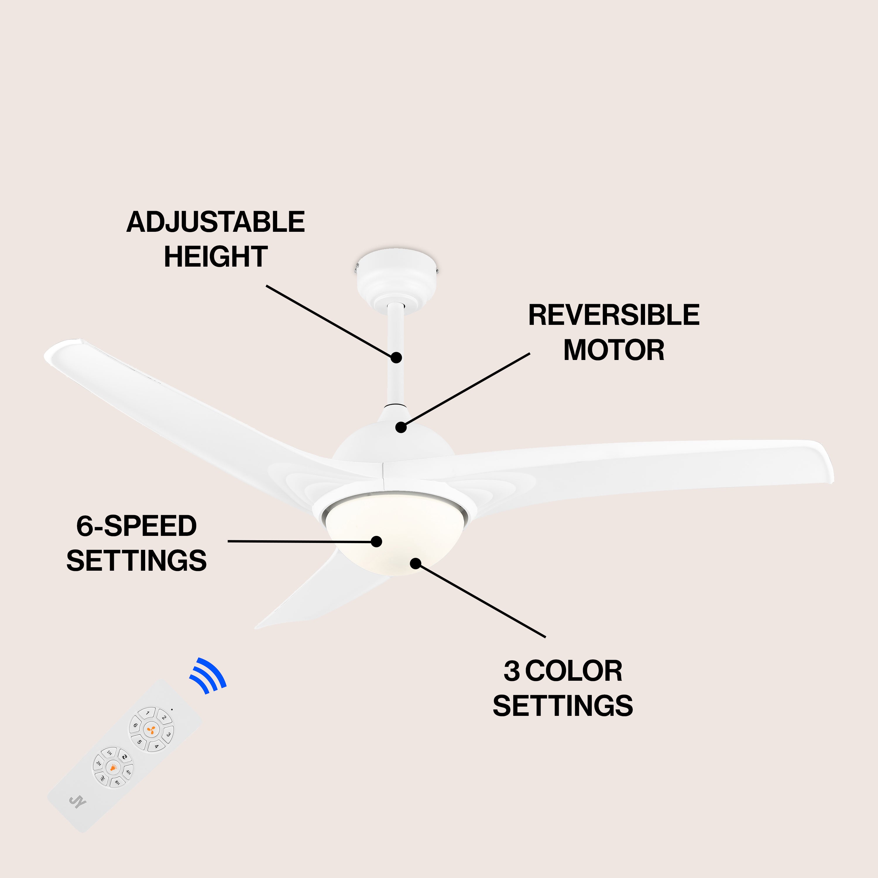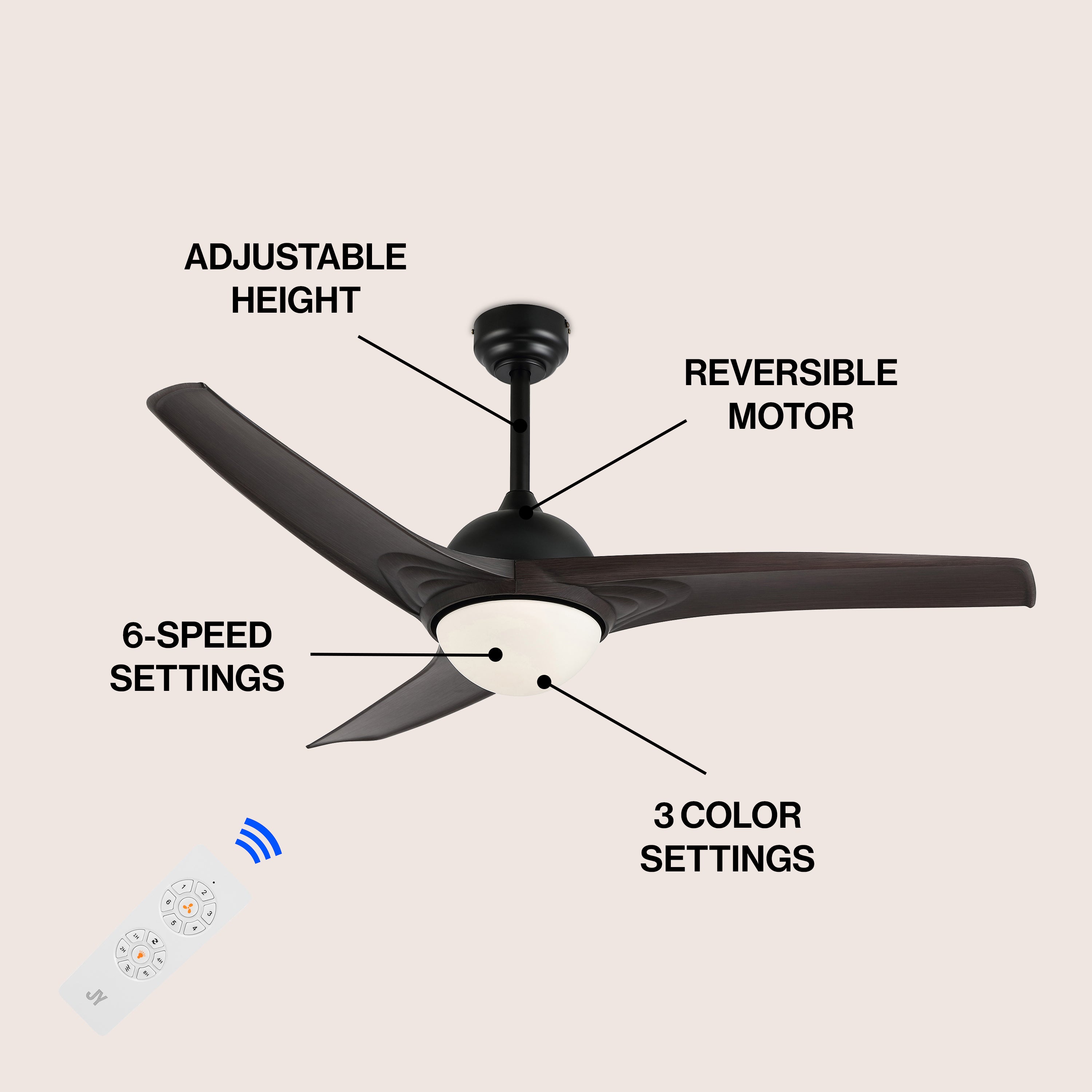 Marissa 52" Contemporary Industrial Iron/Plastic Mobile-App/Remote-Controlled 6-Speed Propeller Integrated LED Ceiling Fan