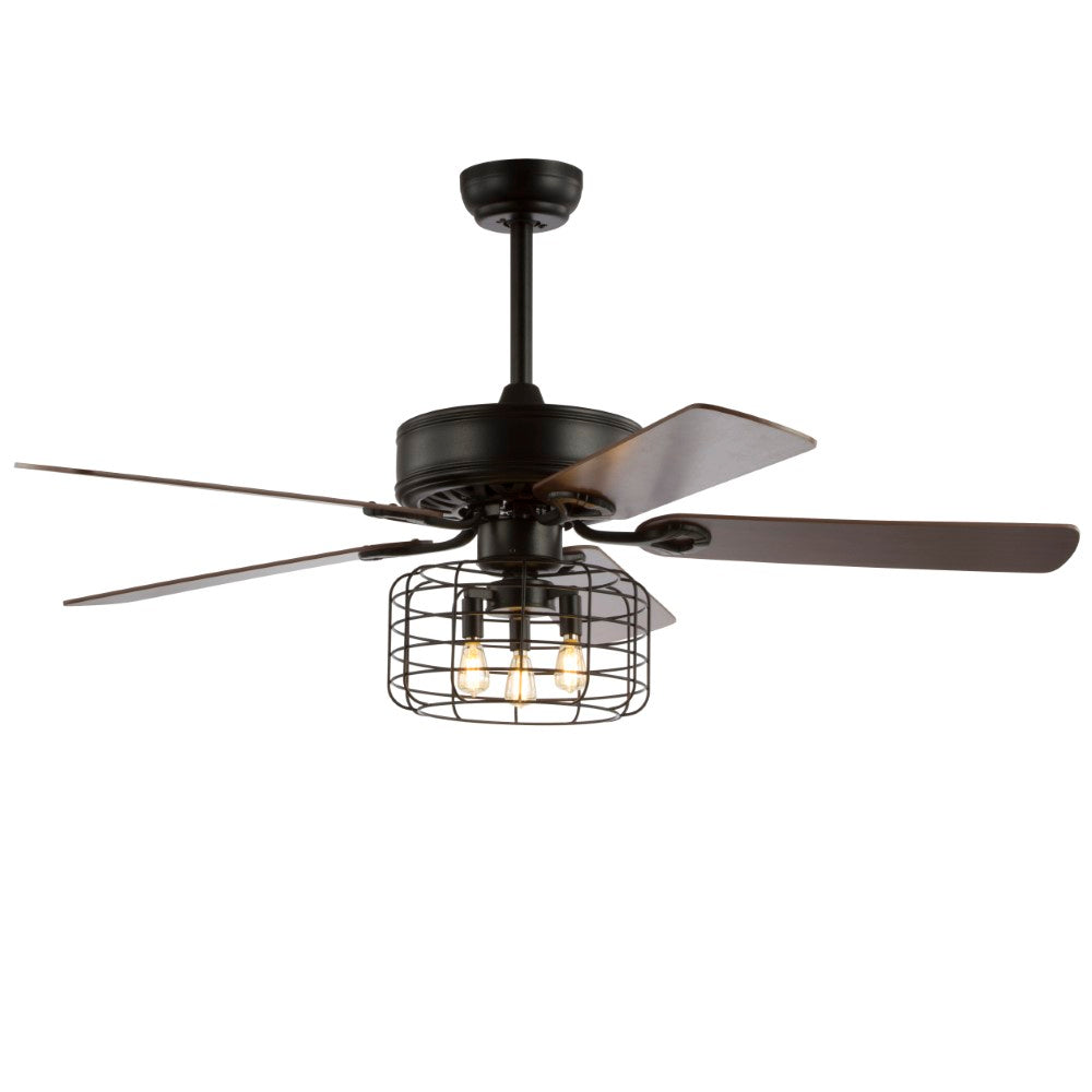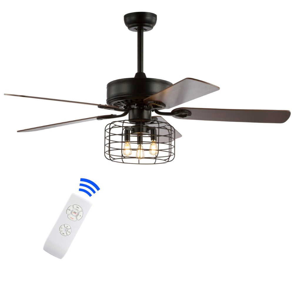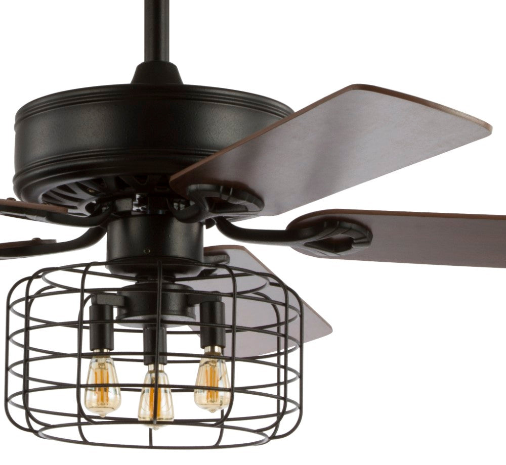 This 52" industrial-style ceiling fan will add farmhouse charm to your ceiling. The black finish is complemented by five reversible blades in a walnut or red walnut finish. Three Edison-style LED bulbs give off warm, bright light.