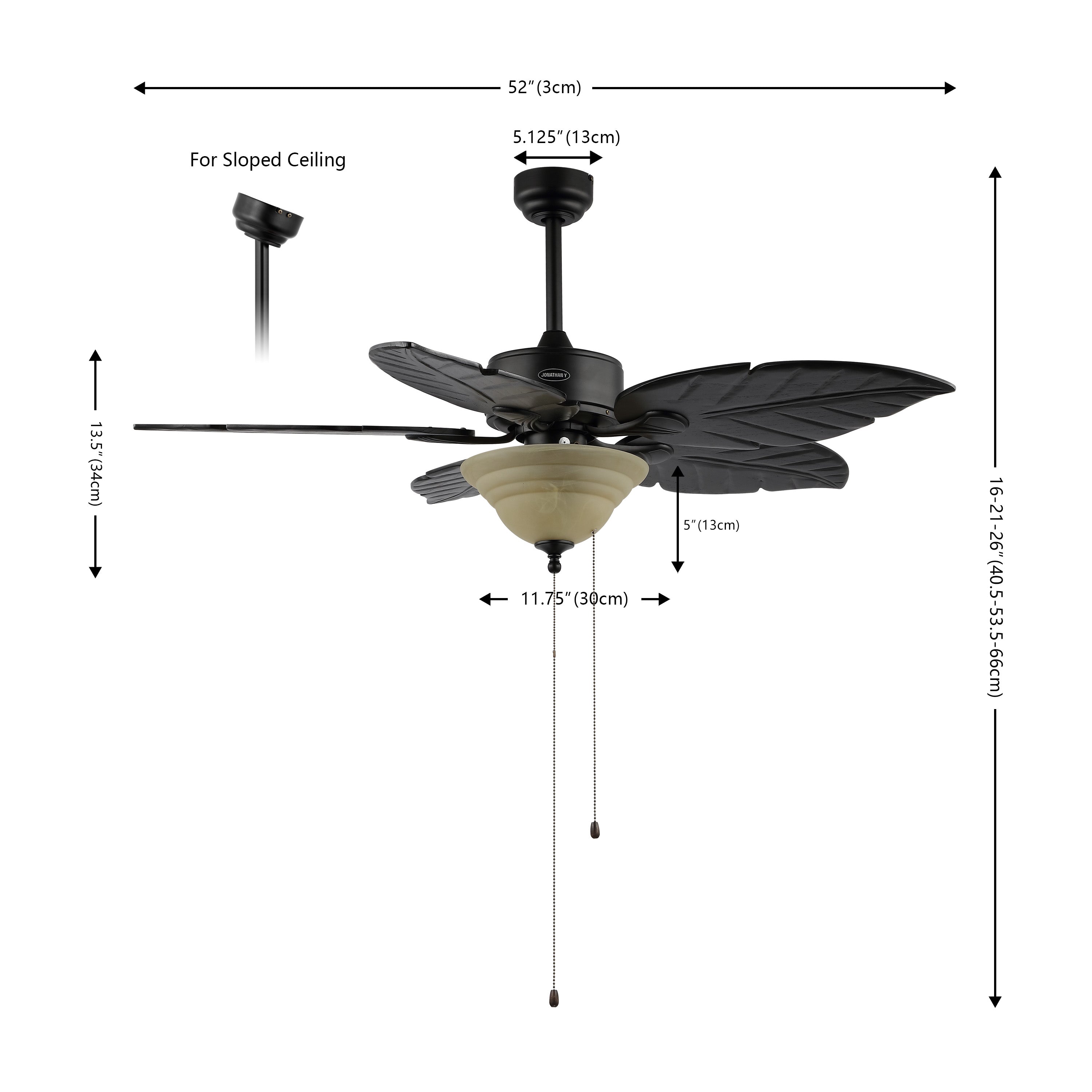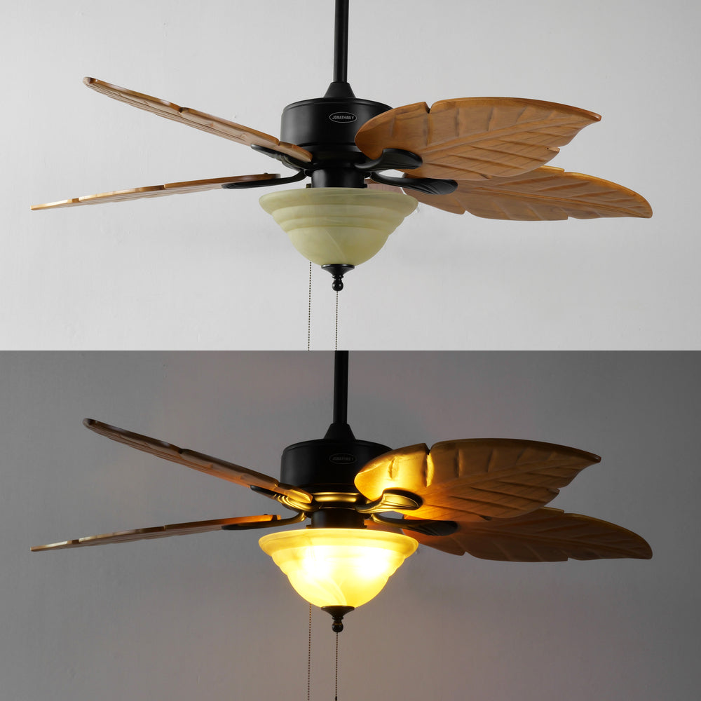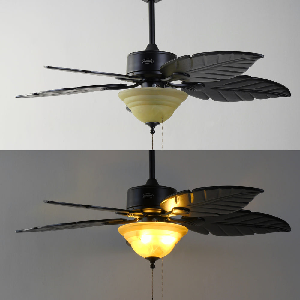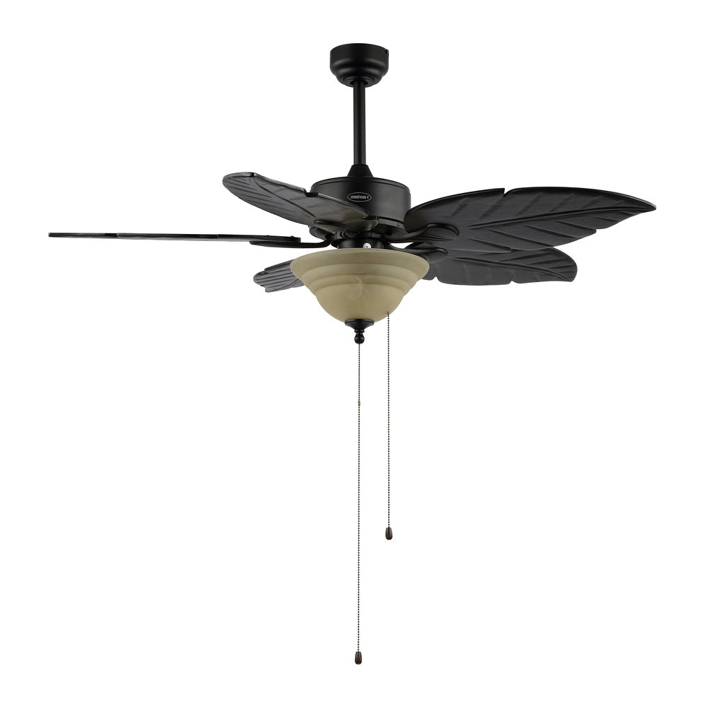Cool off and illuminate your space in style with our bohemian style ceiling fan. Compatible with a pull chain and wall switch, this fixture is an easy-to-use addition to any living room. Its wooden palm leaf shaped blades and metal accents will bring a dose of rustic design into your home.