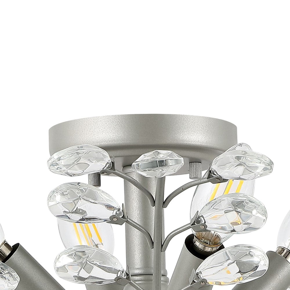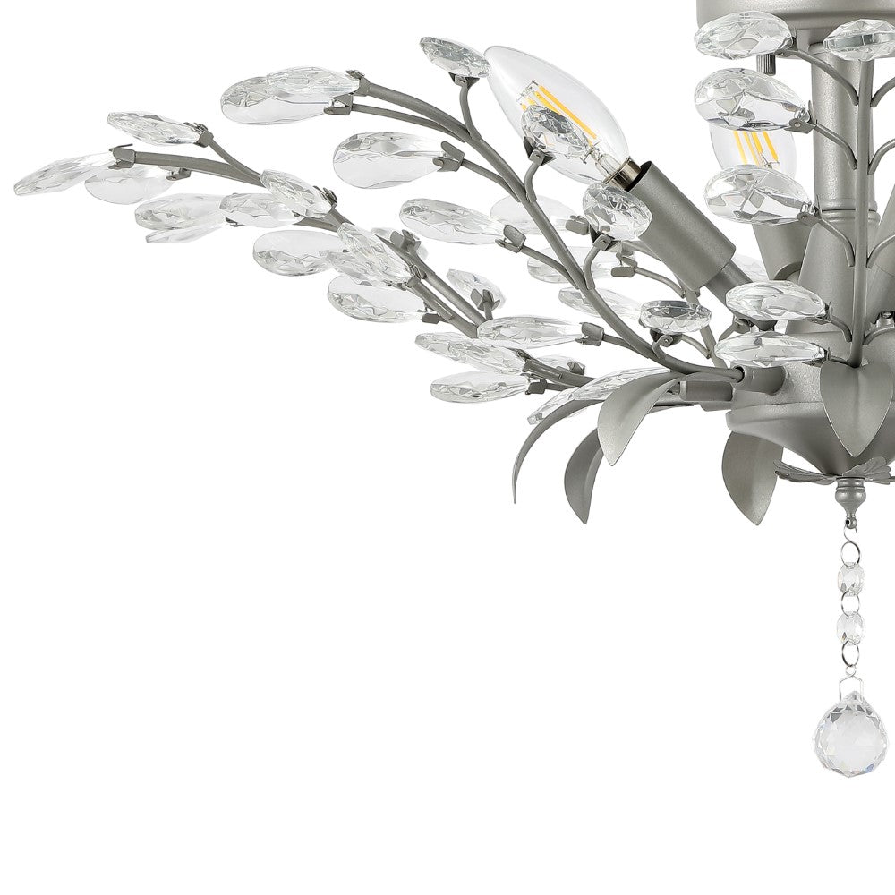 A modern silver-gray finish lets the glass crystals sparkle and shine
