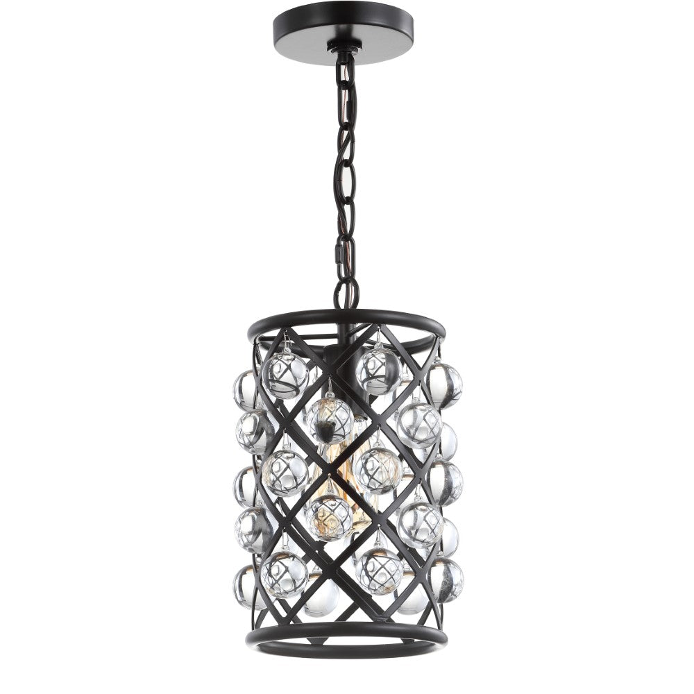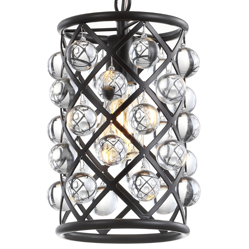Modern simplicity meets organic beauty in the breathtakingly unique crystal and iron pendant. Hand-polished, multifaceted clear crystal spheres shimmer like dewdrops in a circular forged-iron grid with an oil-rubbed bronze finish. The hanging length is adjustable for multiple ceiling heights, from 16.75" to 88.75" of drop.