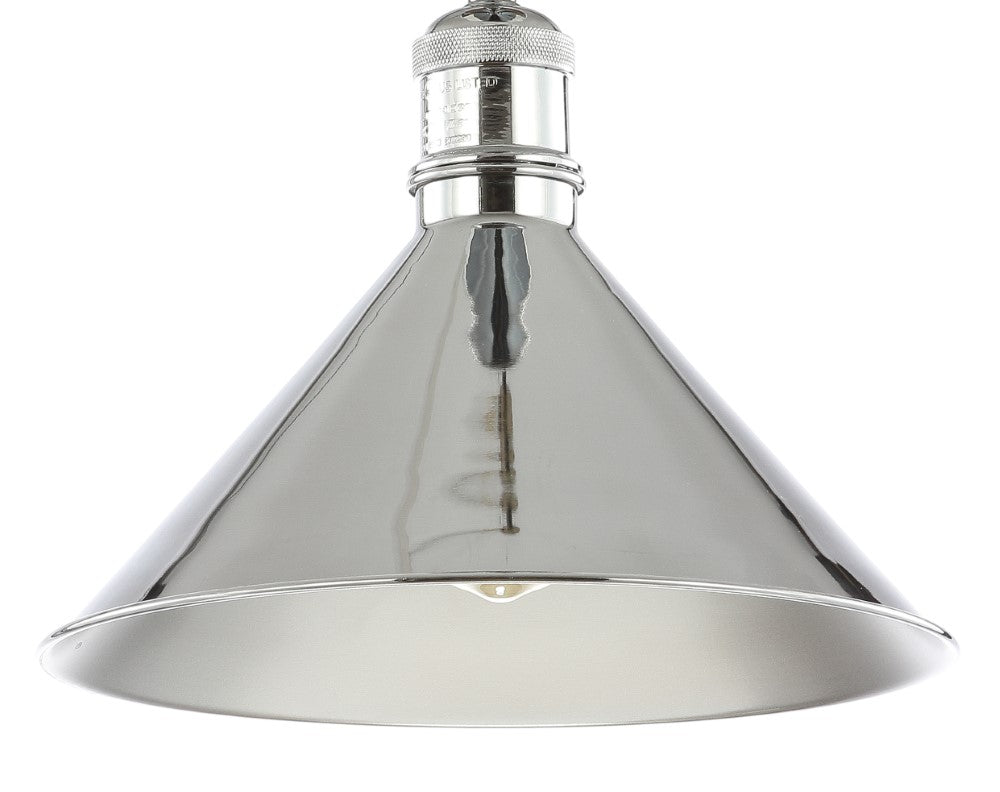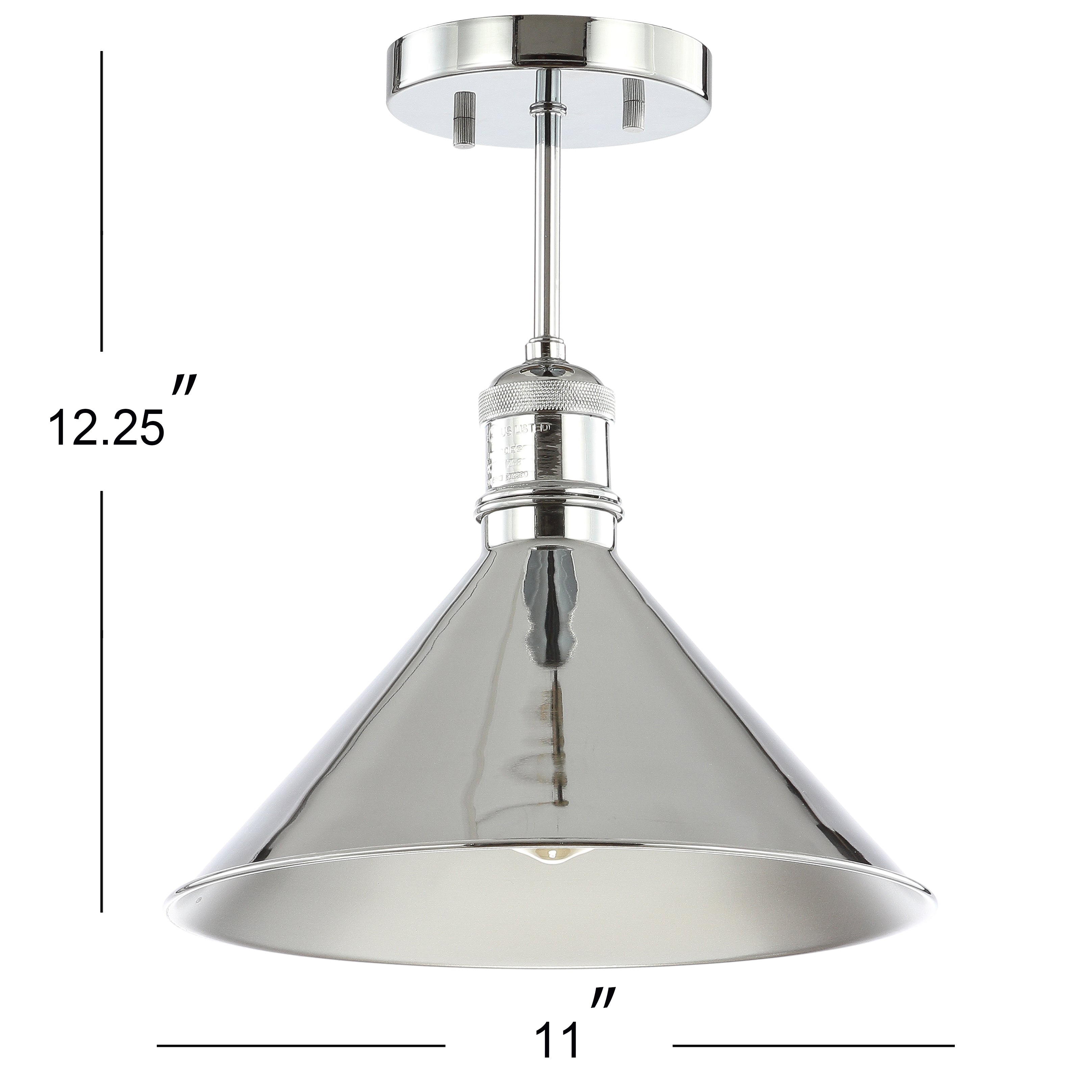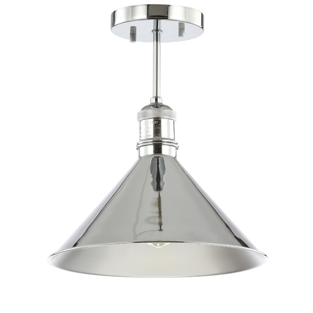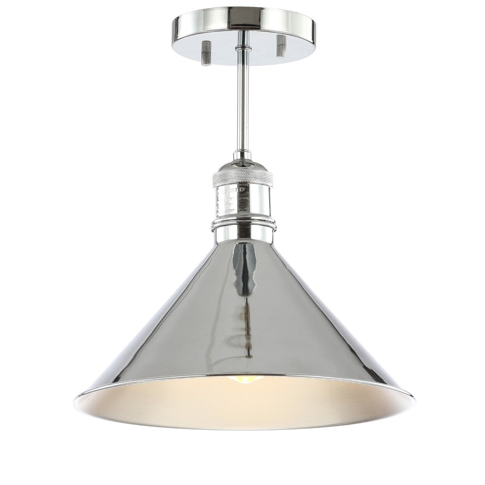 The cone shade of this semi-flush mount blends farmhouse style with a contemporary finish. The 11" opening makes changing the bulb quick and convenient. We love it hung on its own, as a pair, or in a trio-a simple but chic addition to your home.