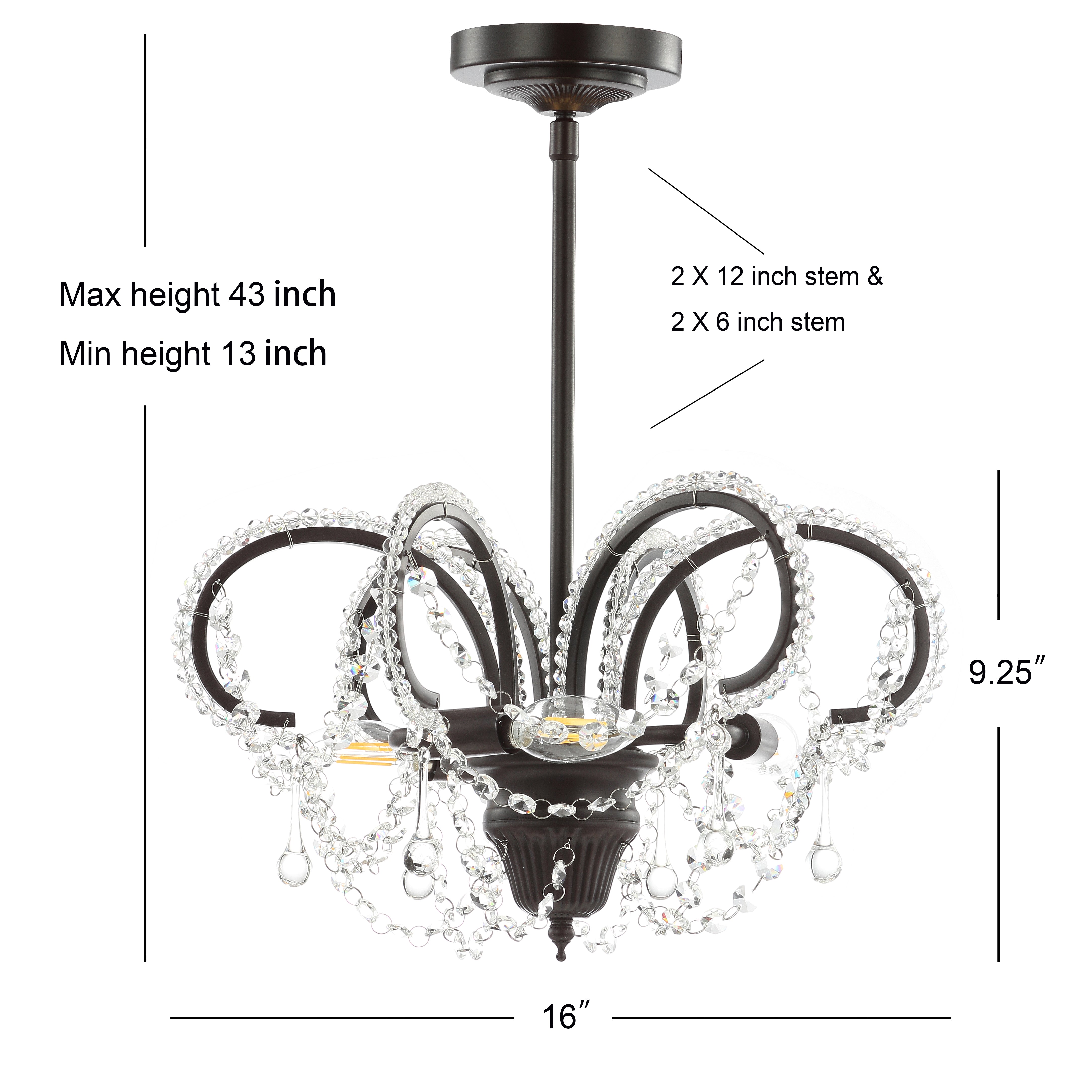 Lapwing 16" Metal/Crystal LED Adjustable Chandelier