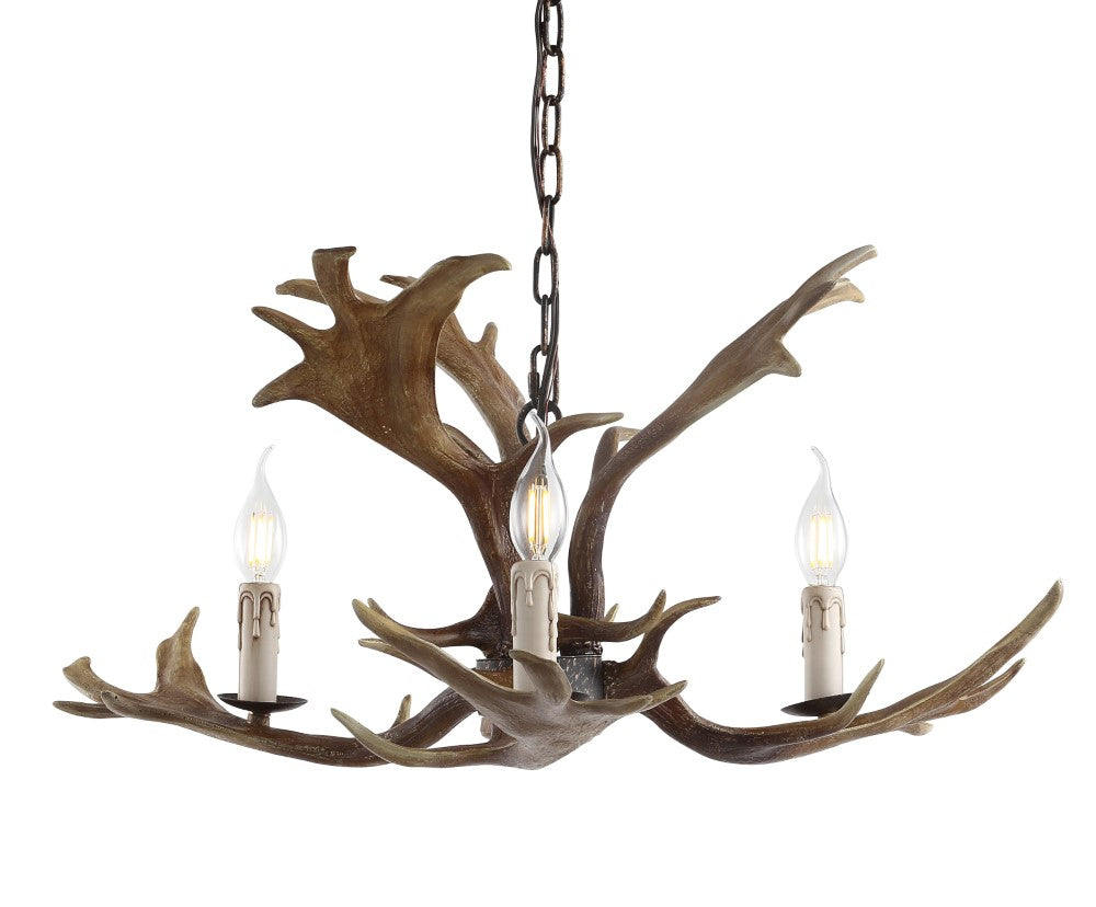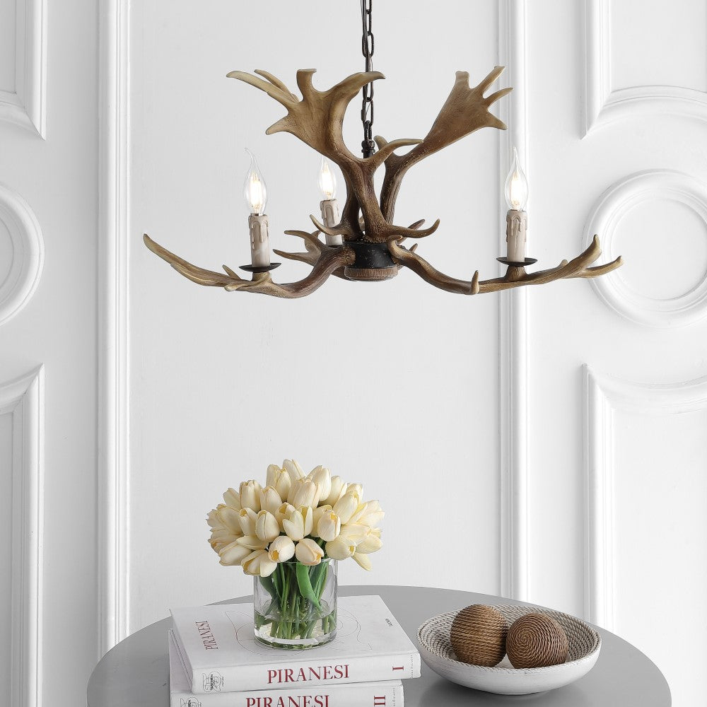 Maple 27" Adjustable Resin Antler 3-Light LED Chandelier