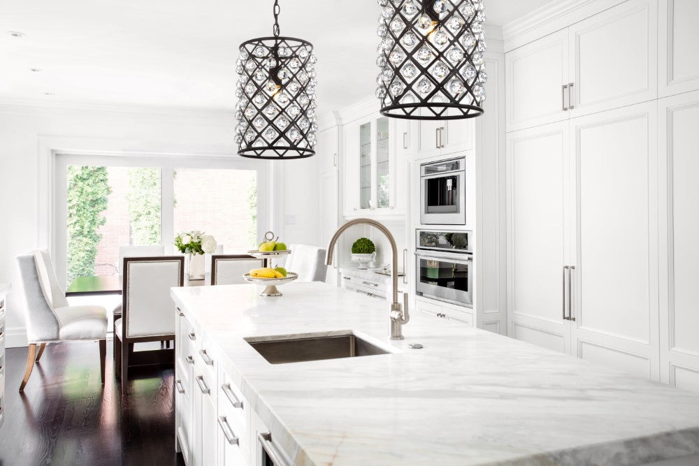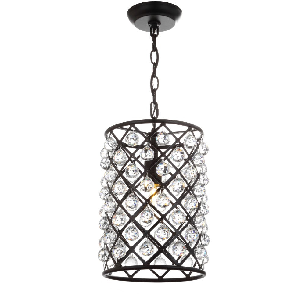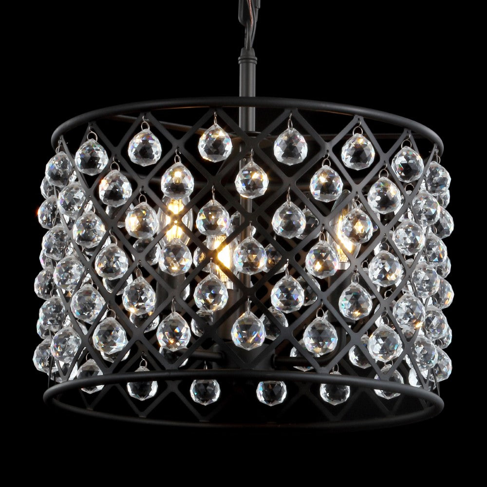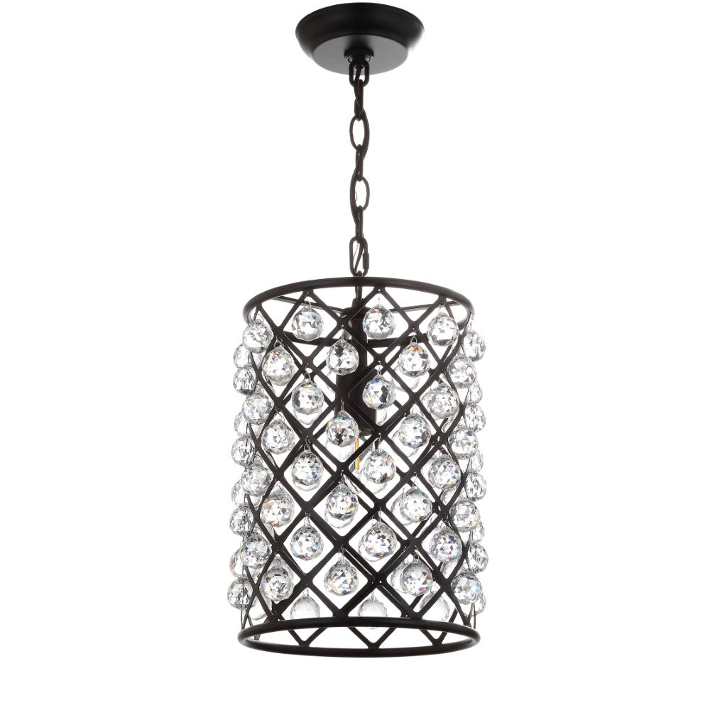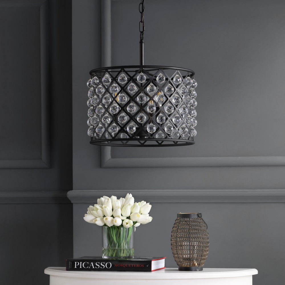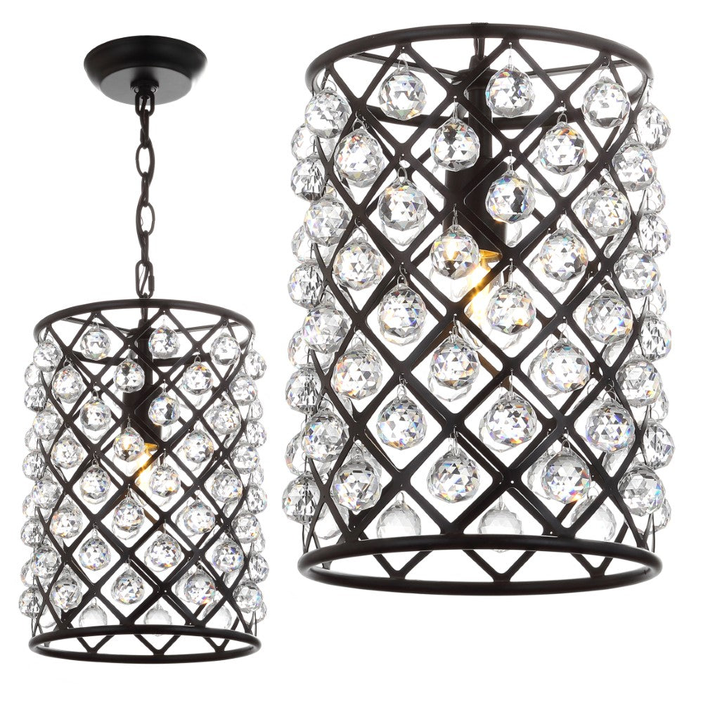 Modern simplicity meets organic beauty in the breathtakingly unique crystal and iron pendant. Hand-polished, multifaceted clear crystal spheres shimmer like dewdrops in a circular forged-iron grid with an oil-rubbed bronze finish. The hanging length is adjustable for multiple ceiling heights, from 18.5" of drop to 90.5" of length.