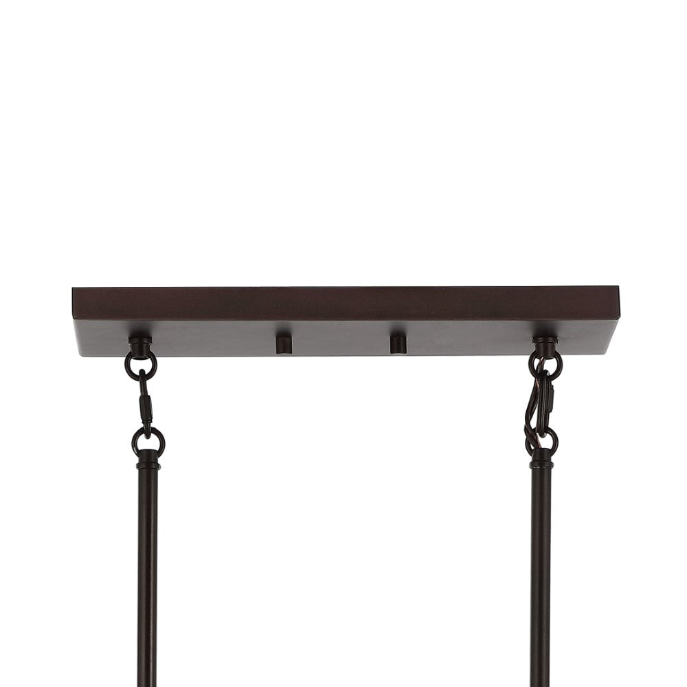 • Adjustable hanging rods make this linear pendant ideal for eight to ten foot ceilings