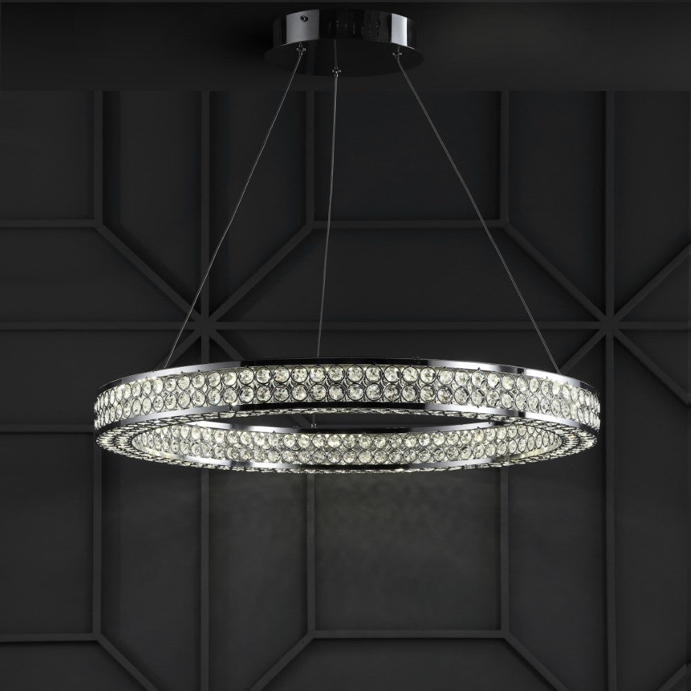 - Traditional faceted crystal has never looked as modern as in this hoop pendant/light which shines with simplicity