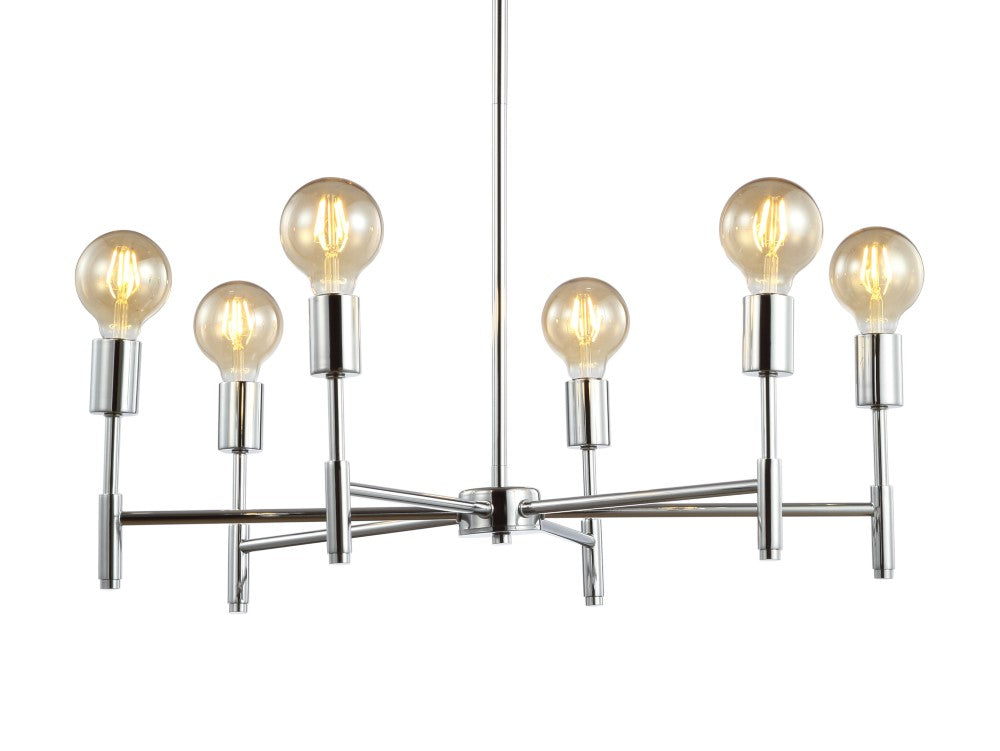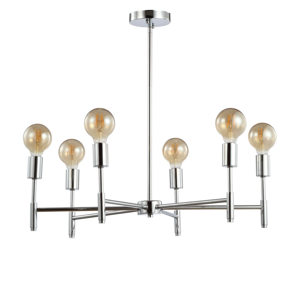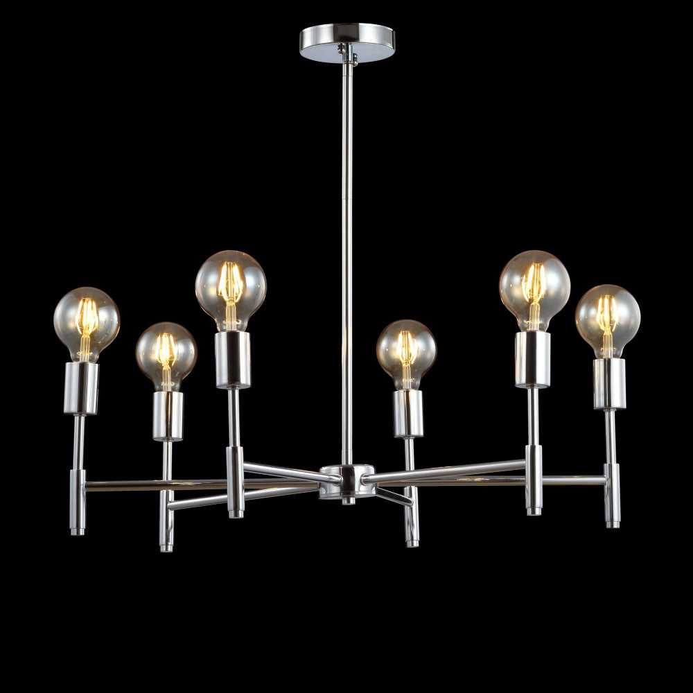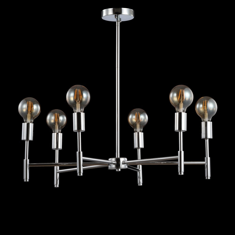 Inspired by modern masters like Gaetano Sciolari, this chrome chandelier would look elegant with chandelier bulbs and shades or modern with exposed round LEDs, as pictured. With six bulbs, it's lumescence would be a fit for a host of home applications from the dining room to the foyer. Add it over a breakfast nook table for a jolt of energy in an overlooked space.