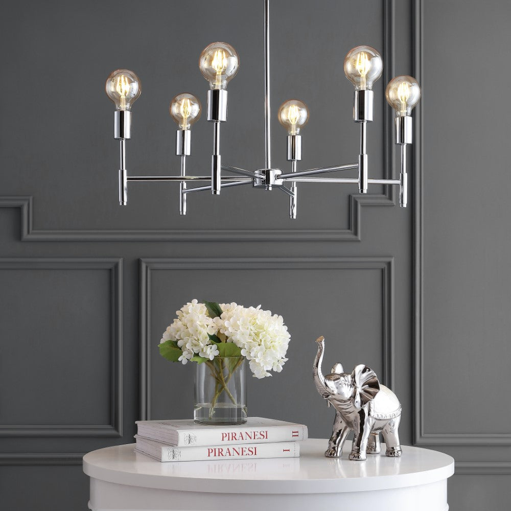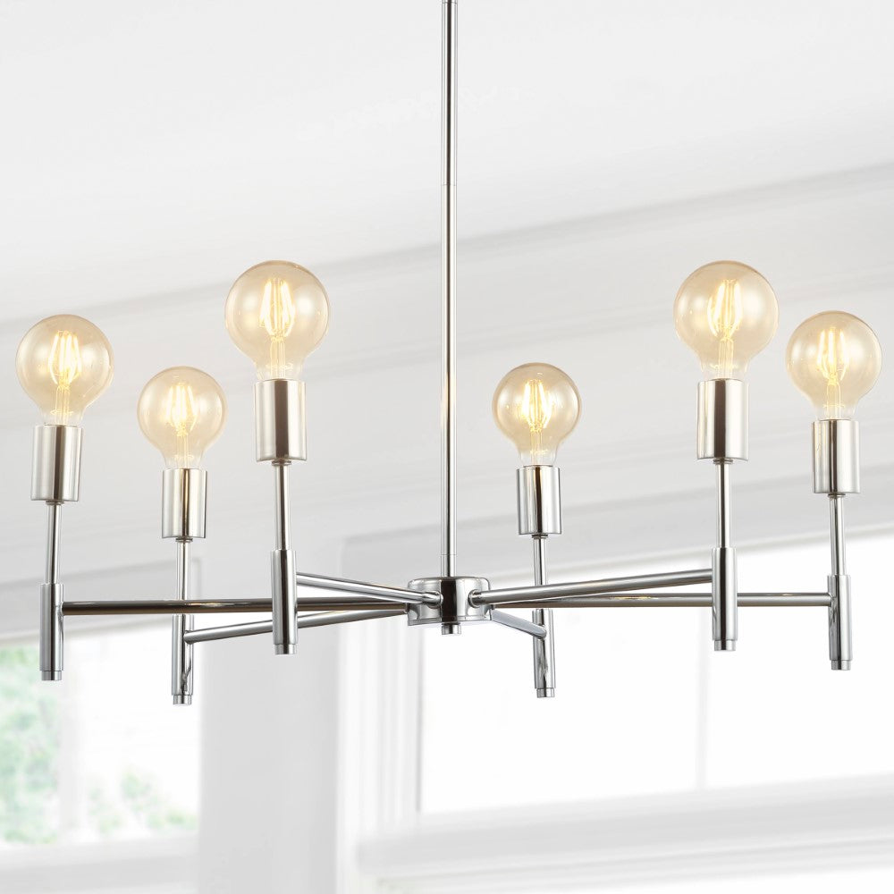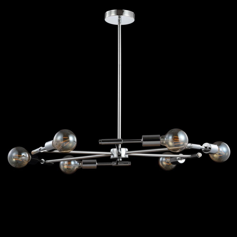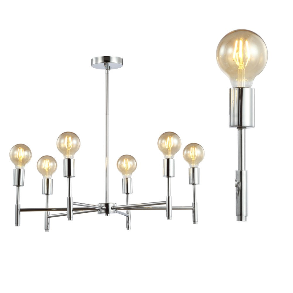 Inspired by modern masters like Gaetano Sciolari, this chrome chandelier would look elegant with chandelier bulbs and shades or modern with exposed round LEDs, as pictured. With six bulbs, it's lumescence would be a fit for a host of home applications from the dining room to the foyer. Add it over a breakfast nook table for a jolt of energy in an overlooked space.