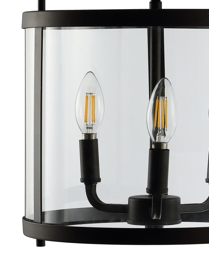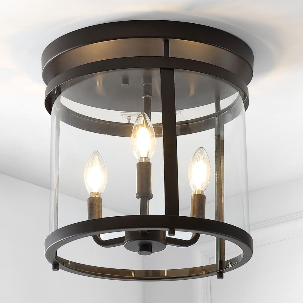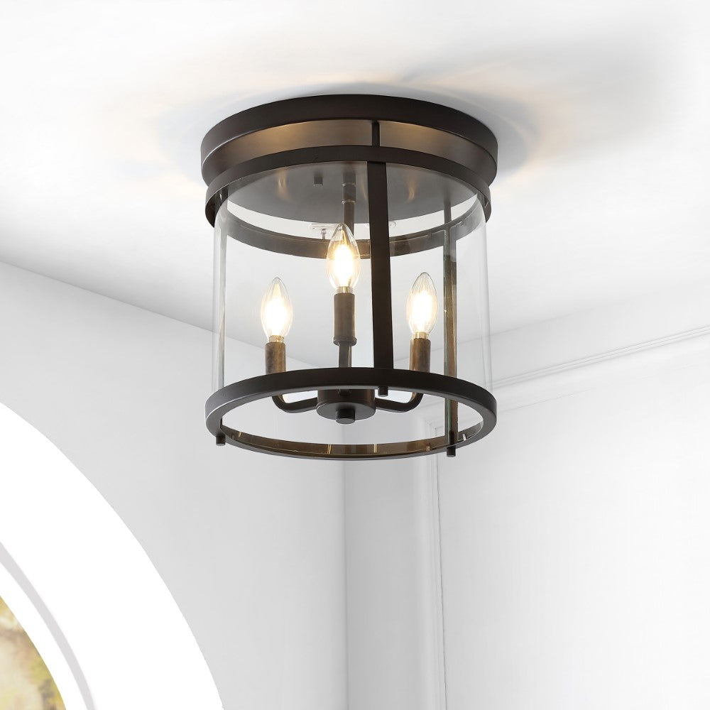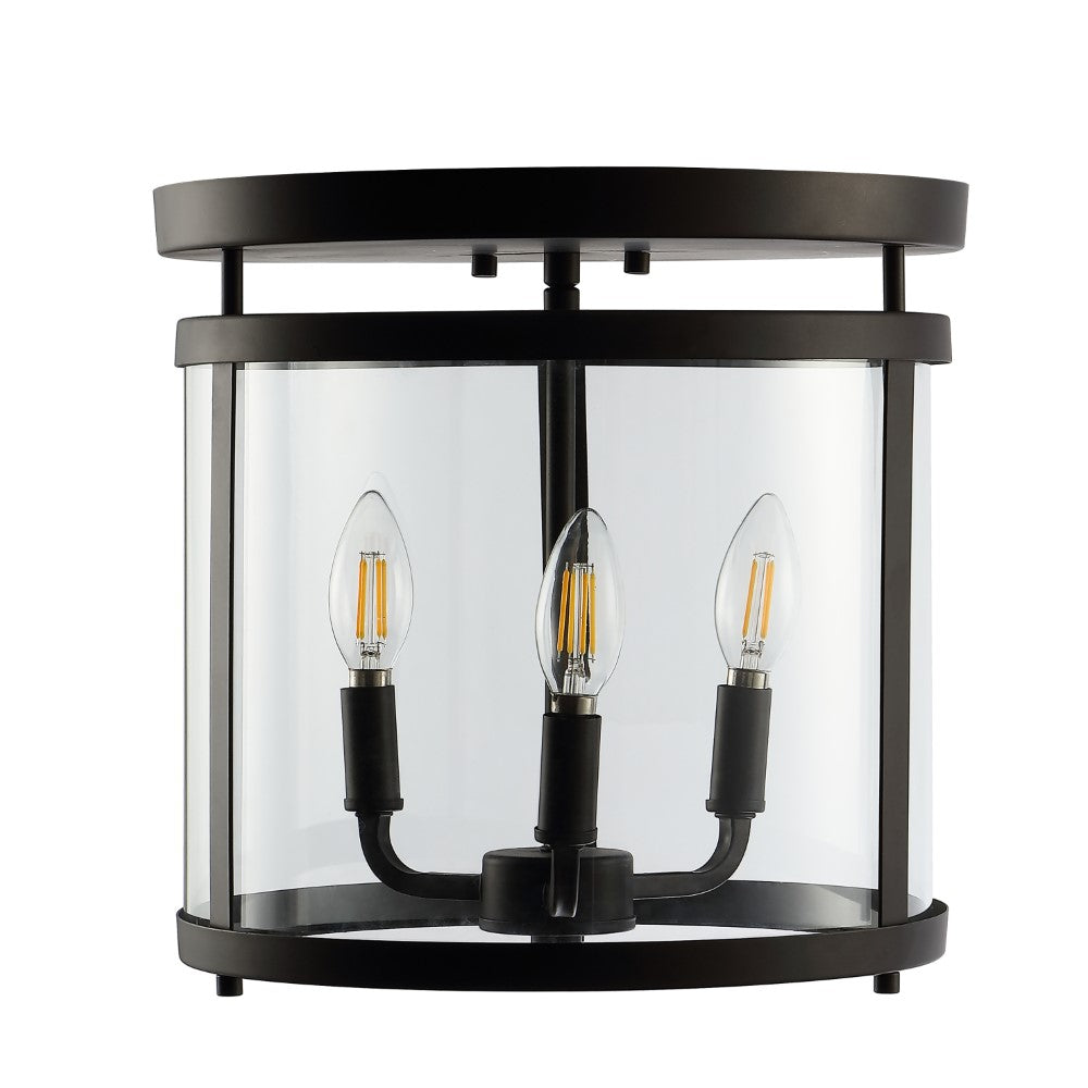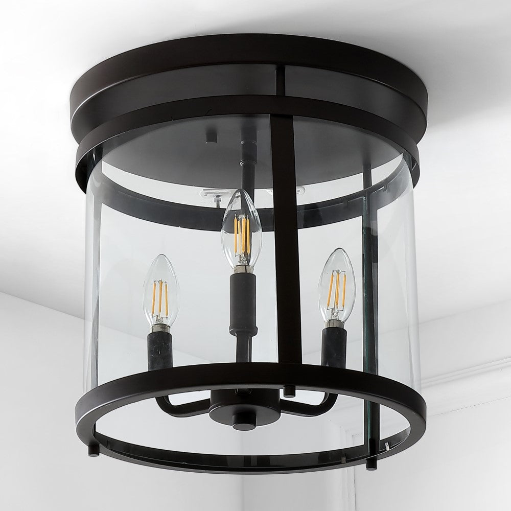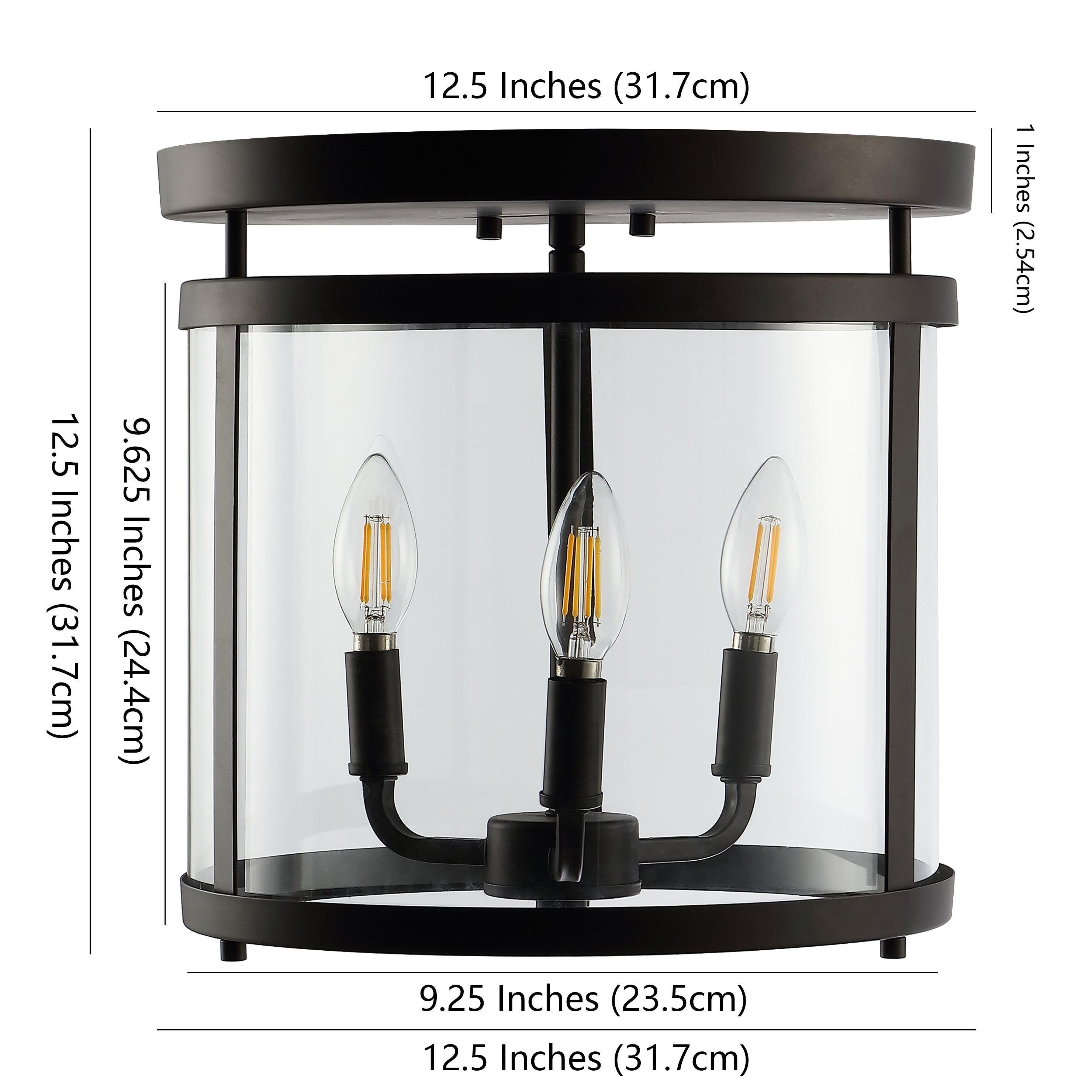 This lantern-style ceiling light is ideal for your modern farmhouse, rustic kitchen or cottage interior design. Features three LED bulbs inside a clear glass cylinder, accented with a black metal finish. This ceiling fixture is perfect for the family room, kitchen, bedroom, or entry.