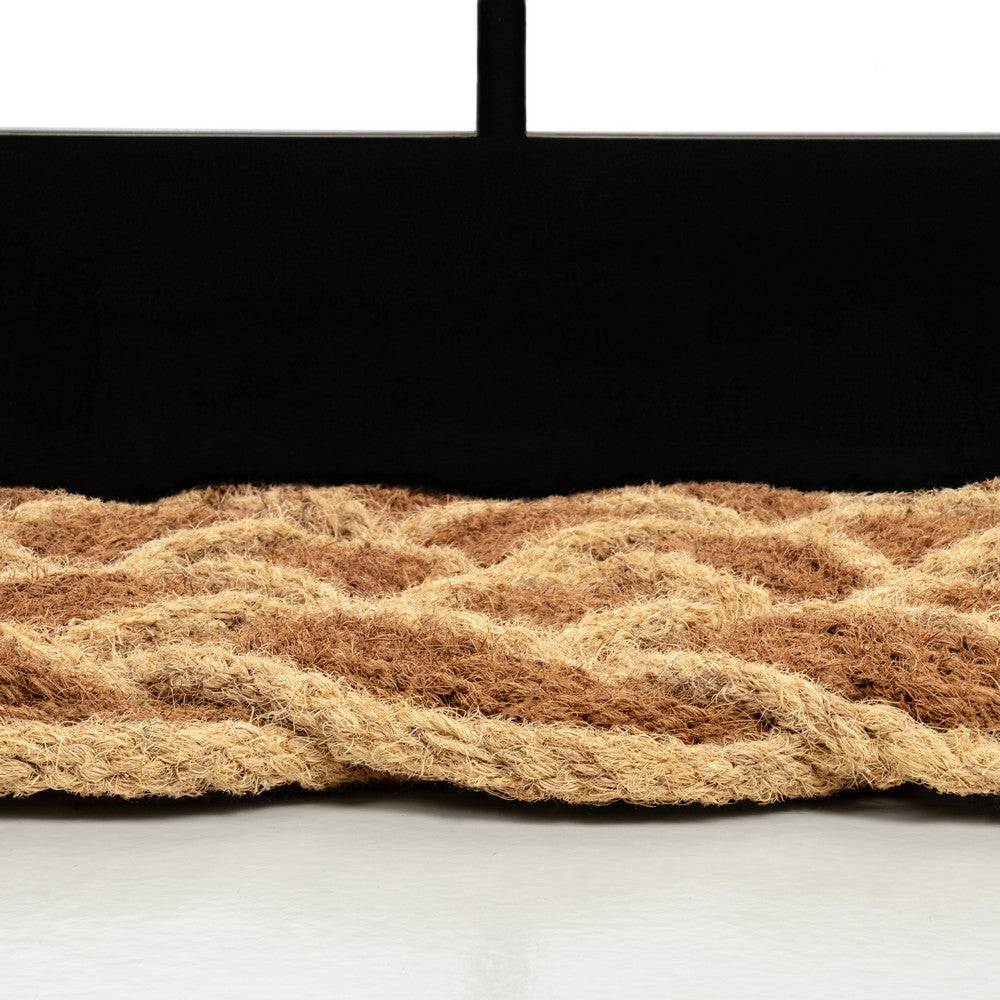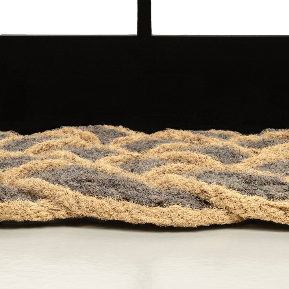 - Geometric design is made from natural brown fibers