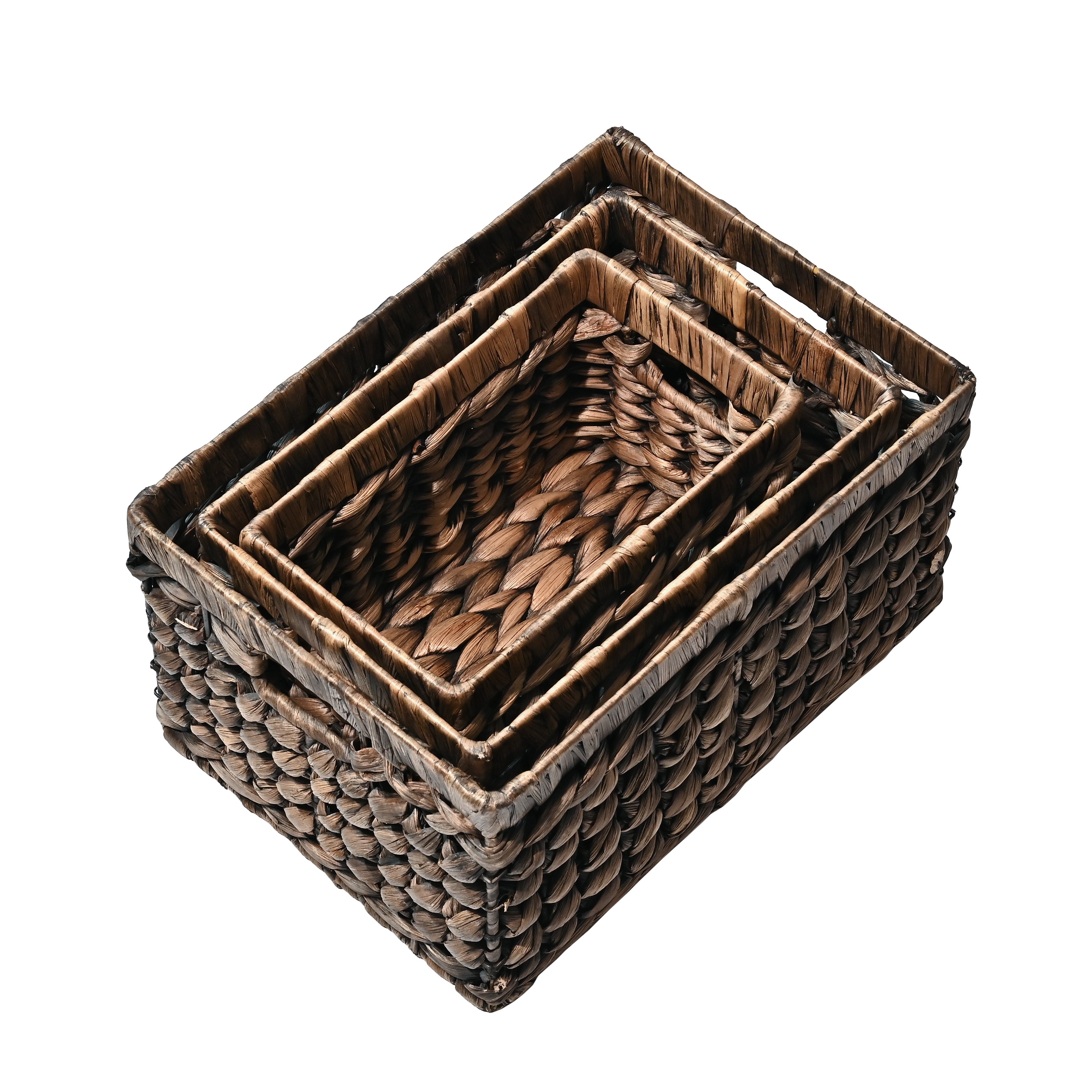 Sterling Bohemian Cottage Handwoven Hyacinth Rectangular Nesting Baskets with Handles