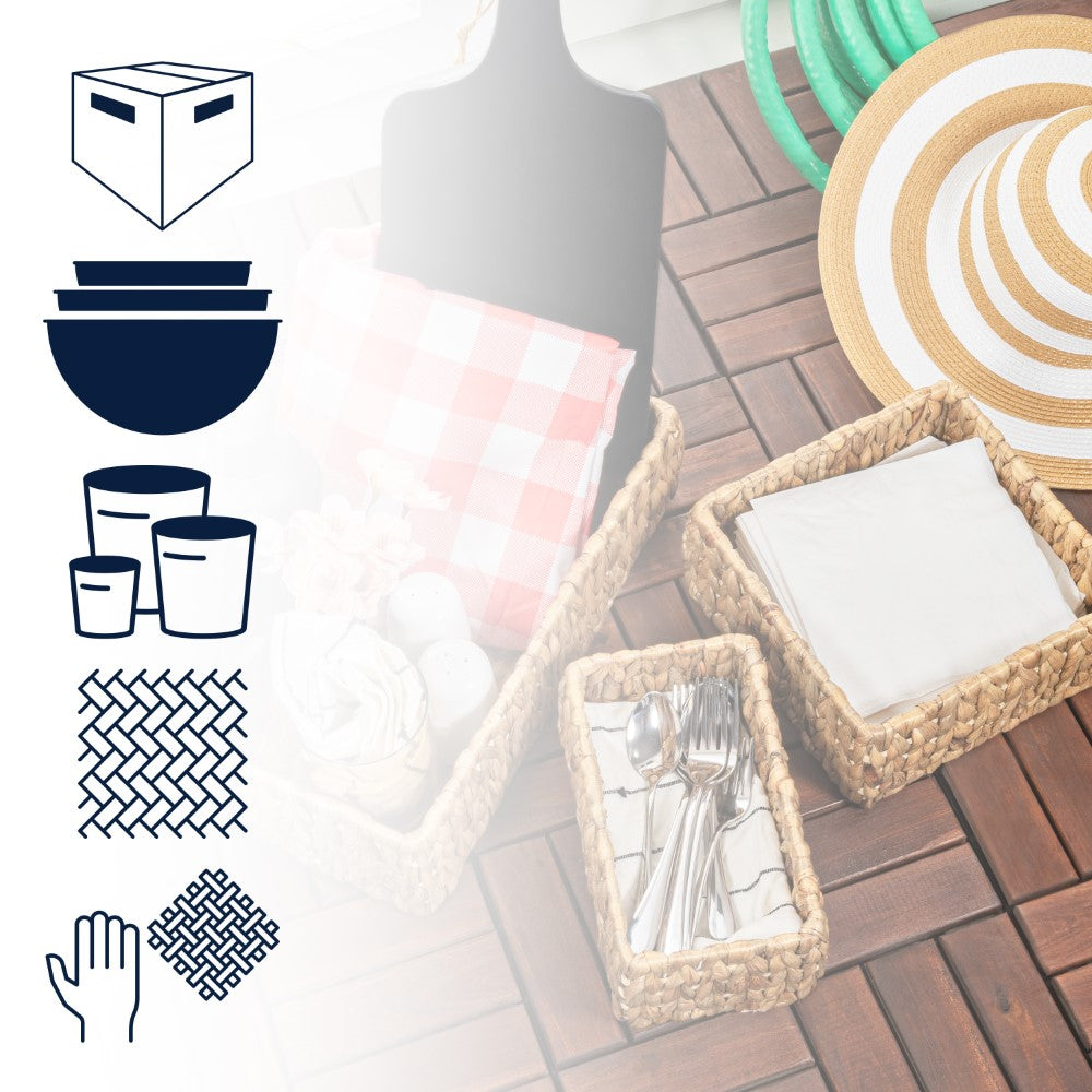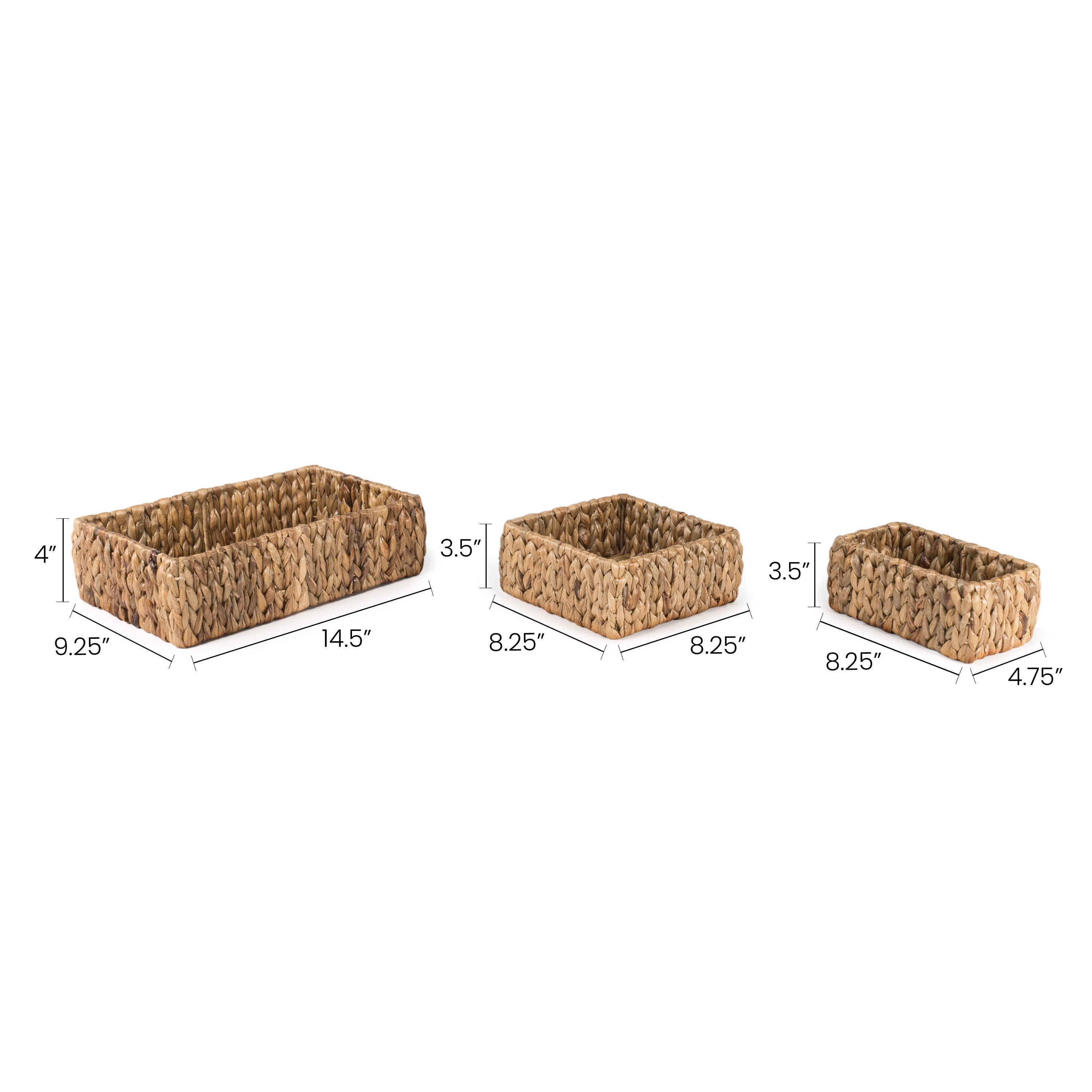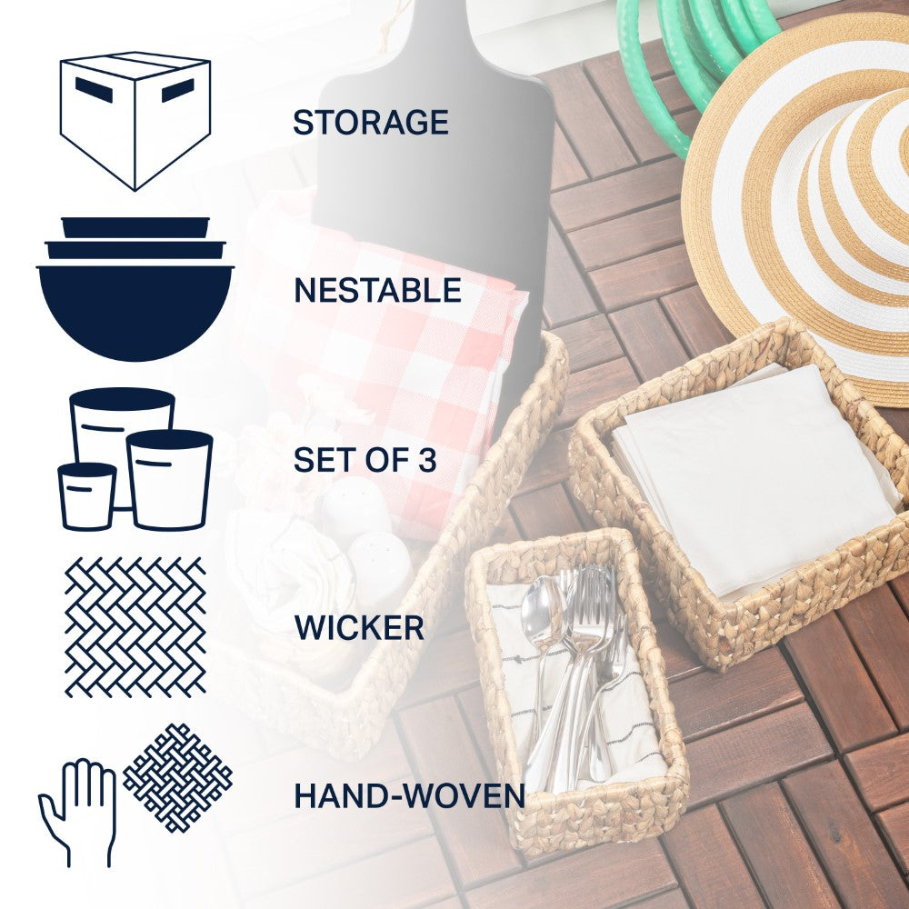 - The hyacinth weave on our basket trio brings a dose of traditional and coastal decor to any home