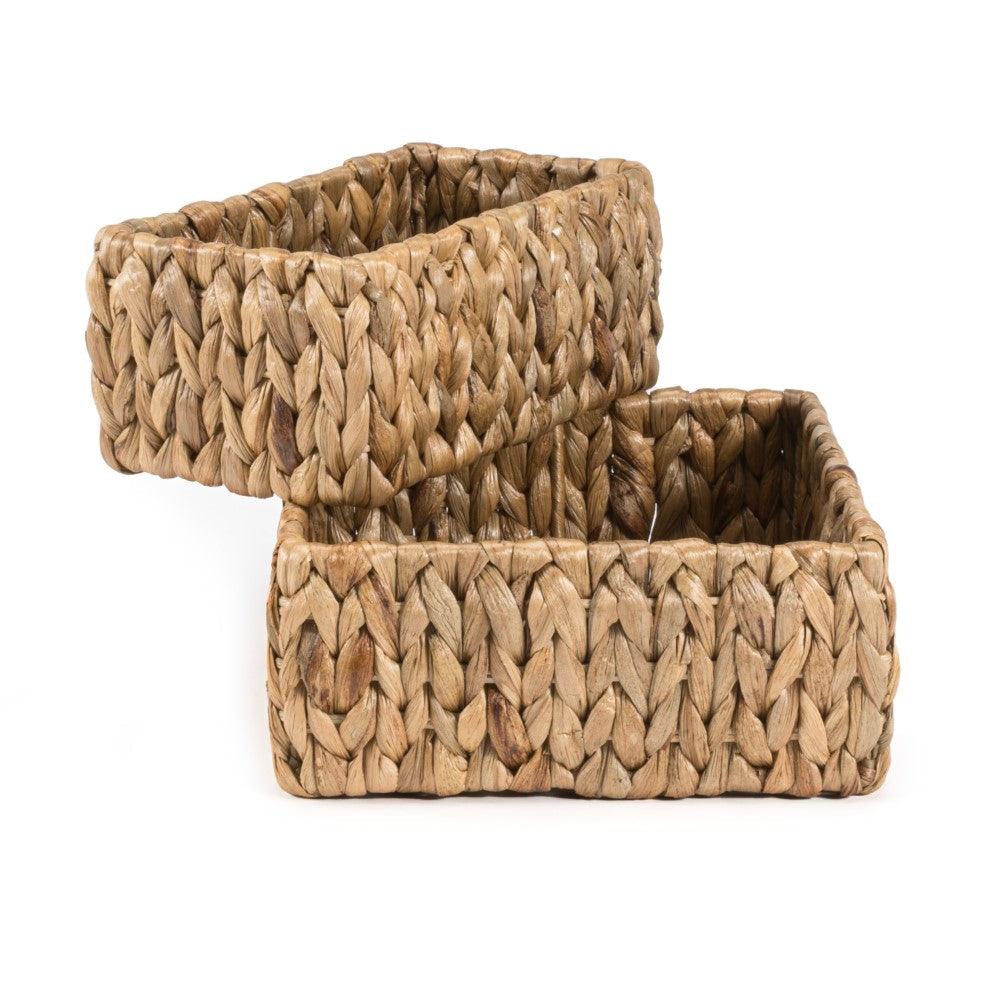 - These baskets have a beautiful natural tone from their hyacinth weaves, bringing coastal decor into any space; crafted by artisans, the color can be slightly different than shown